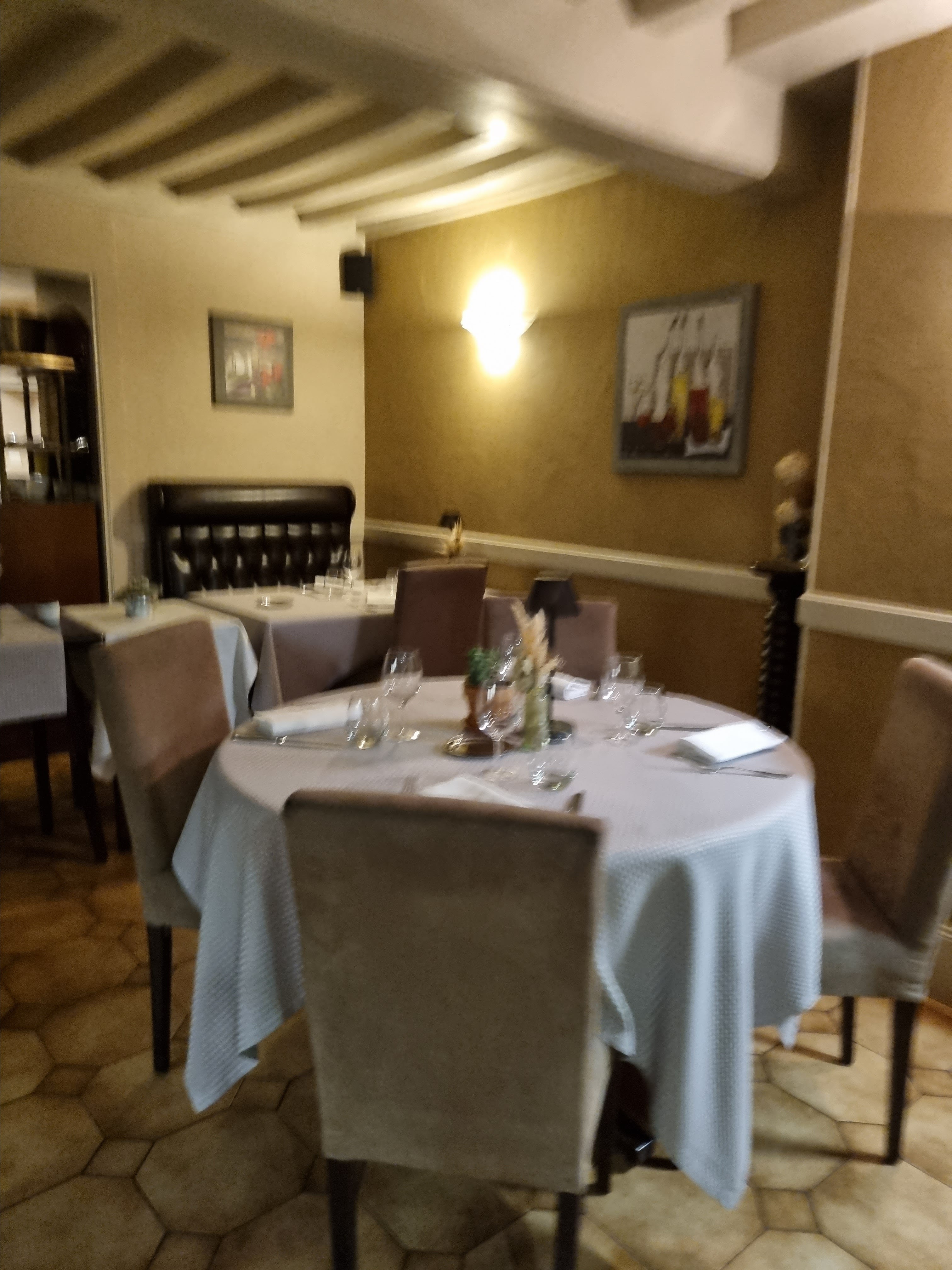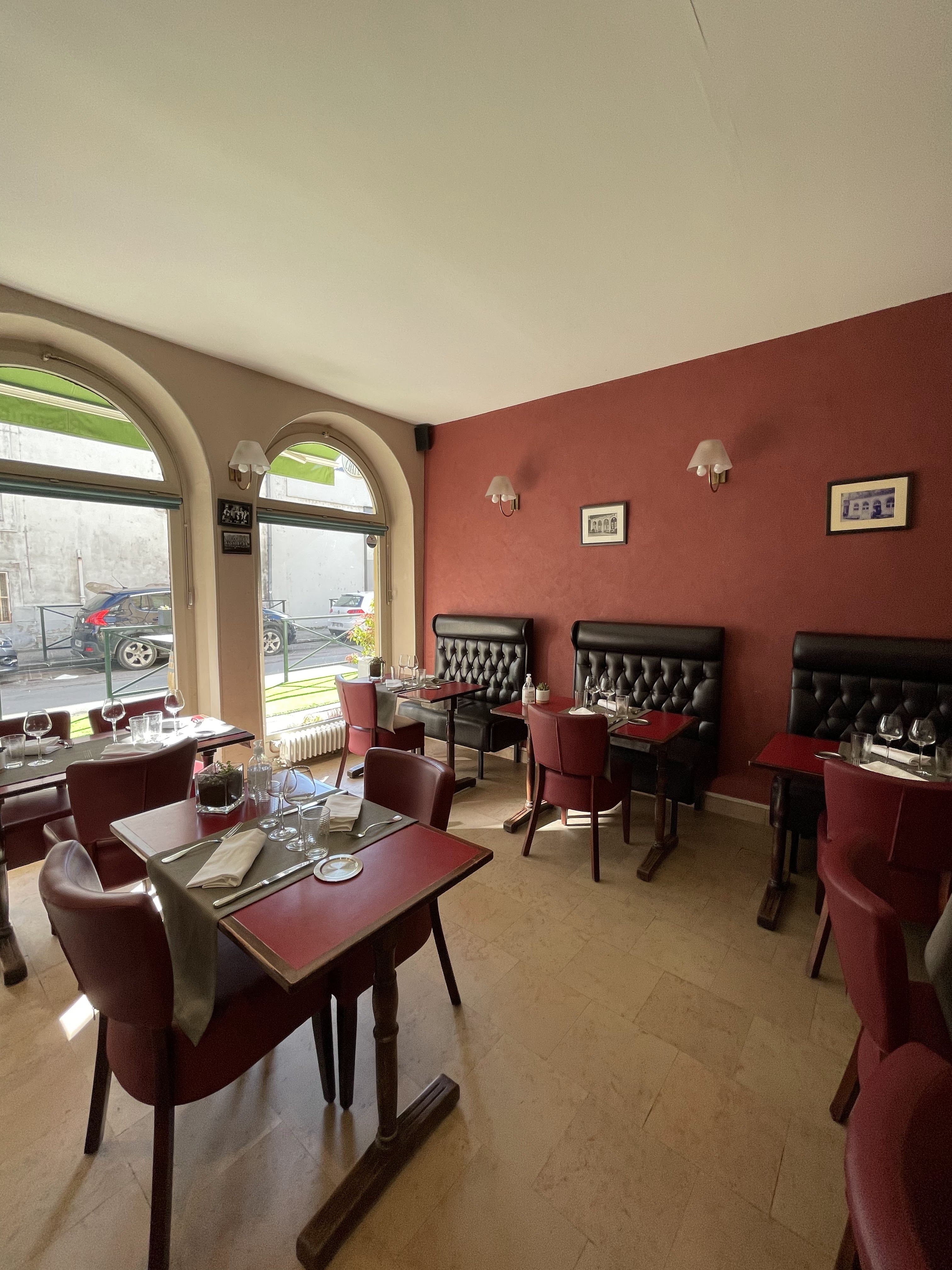 Agréable surprise pour cette dégustation car le restaurant présent sur la ville depuis de nombreuses années proposait un menu vieillissant ces dernières années. L accueil par la propriétaire reste toujours froid. Le service est cordial par le serveur avec quelques notes d humour appréciable après l accueil. La présentation des plats s est actualisée. Le goût est présent avec des produits de saison. L ambiance de la salle est agréable avec un espace raisonnable entre les tables. La carte des vins propose des demi bouteille et du vin au verre en plus des bouteilles habituelles
