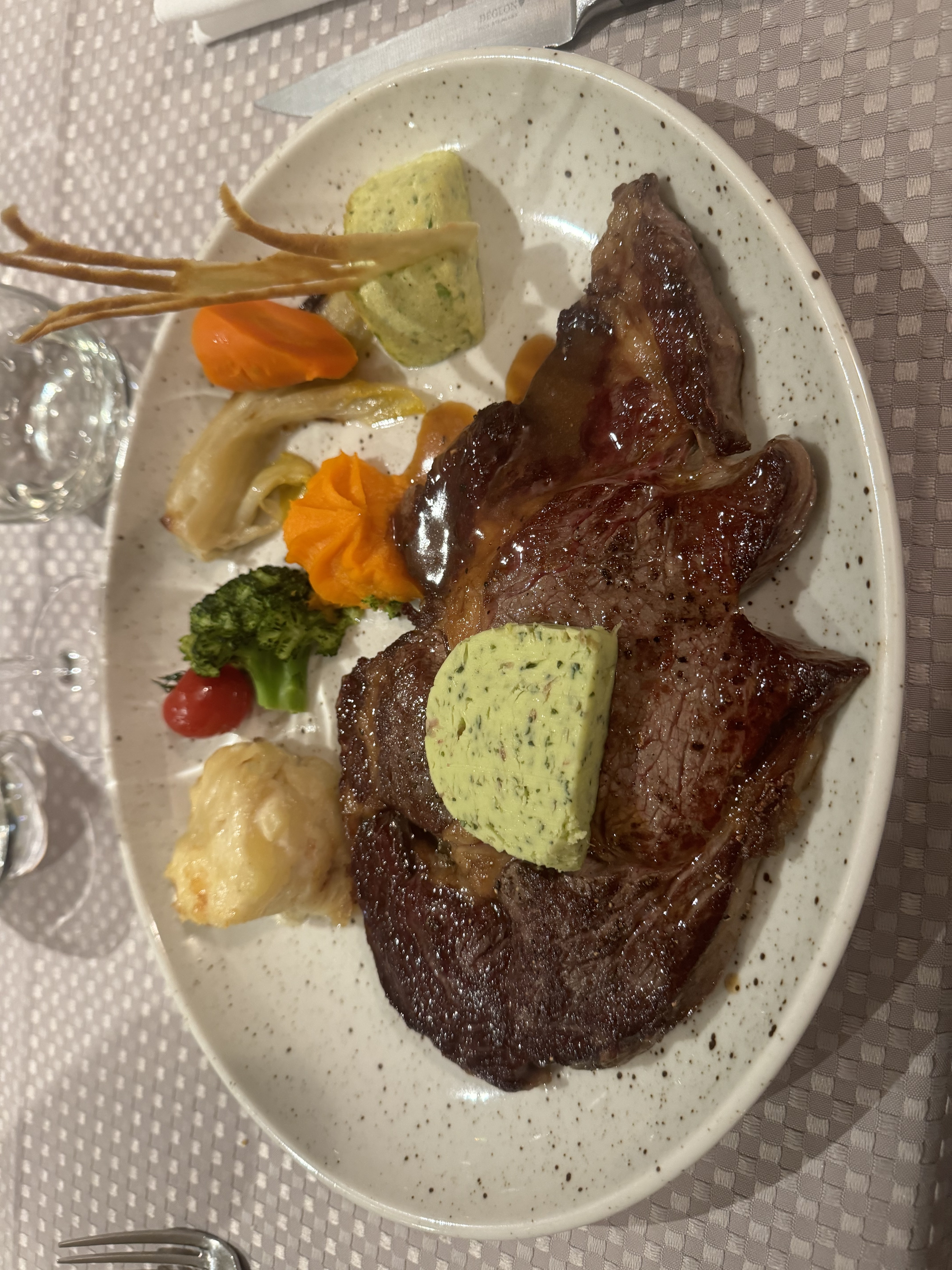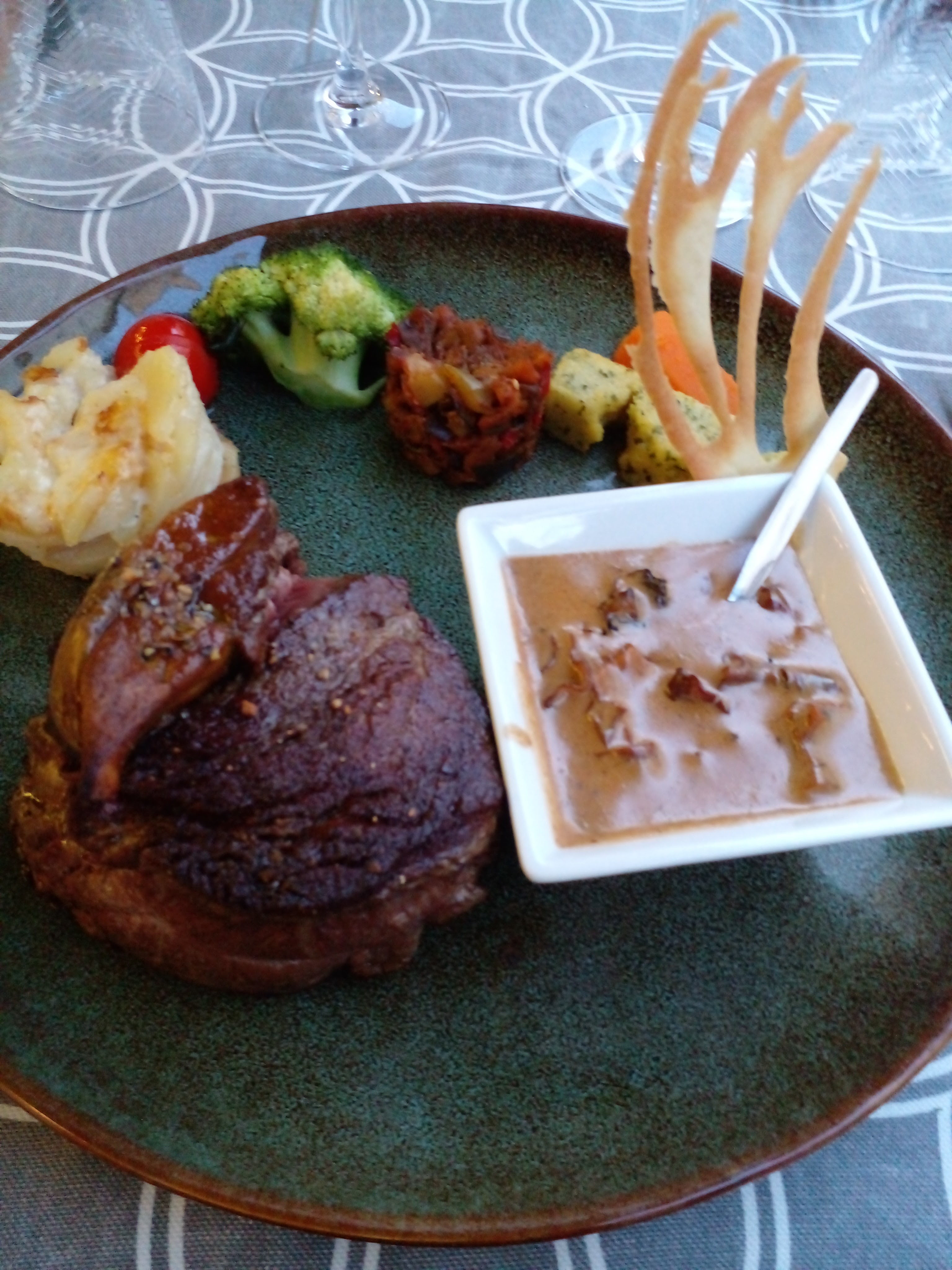 Très agréablement surpris!!! 1 entrée classique, l'autre plus originale, les 2 étaient très bonnes. Et le chateaubriand en plat était excellent 👌 Très belle sélection de vins Et très bonne île flottante. Et le service était bien agréable aussi 👍