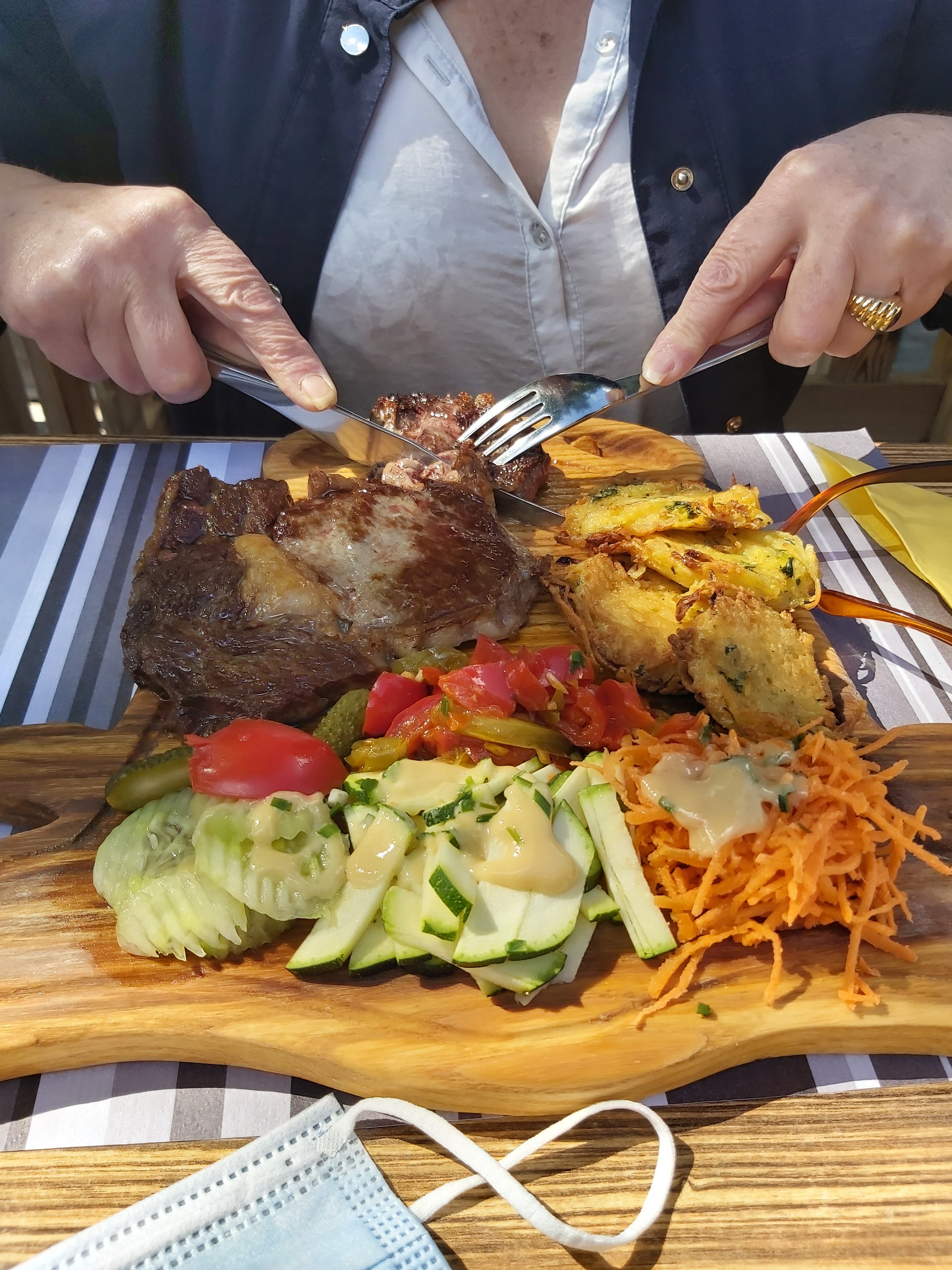 De bons plats, de l'espace (les tables sont éloignées les unes des autres), de la lumière... Il y a des jeux extérieurs pour les enfants.. Le gros bonus : un menu végétarien, excellent....et les carnivores trouvent aussi des plats à leur goût. Bref, nous sommes toujours très contents de venir et revenir dans ce restaurant - prix raisonnables.