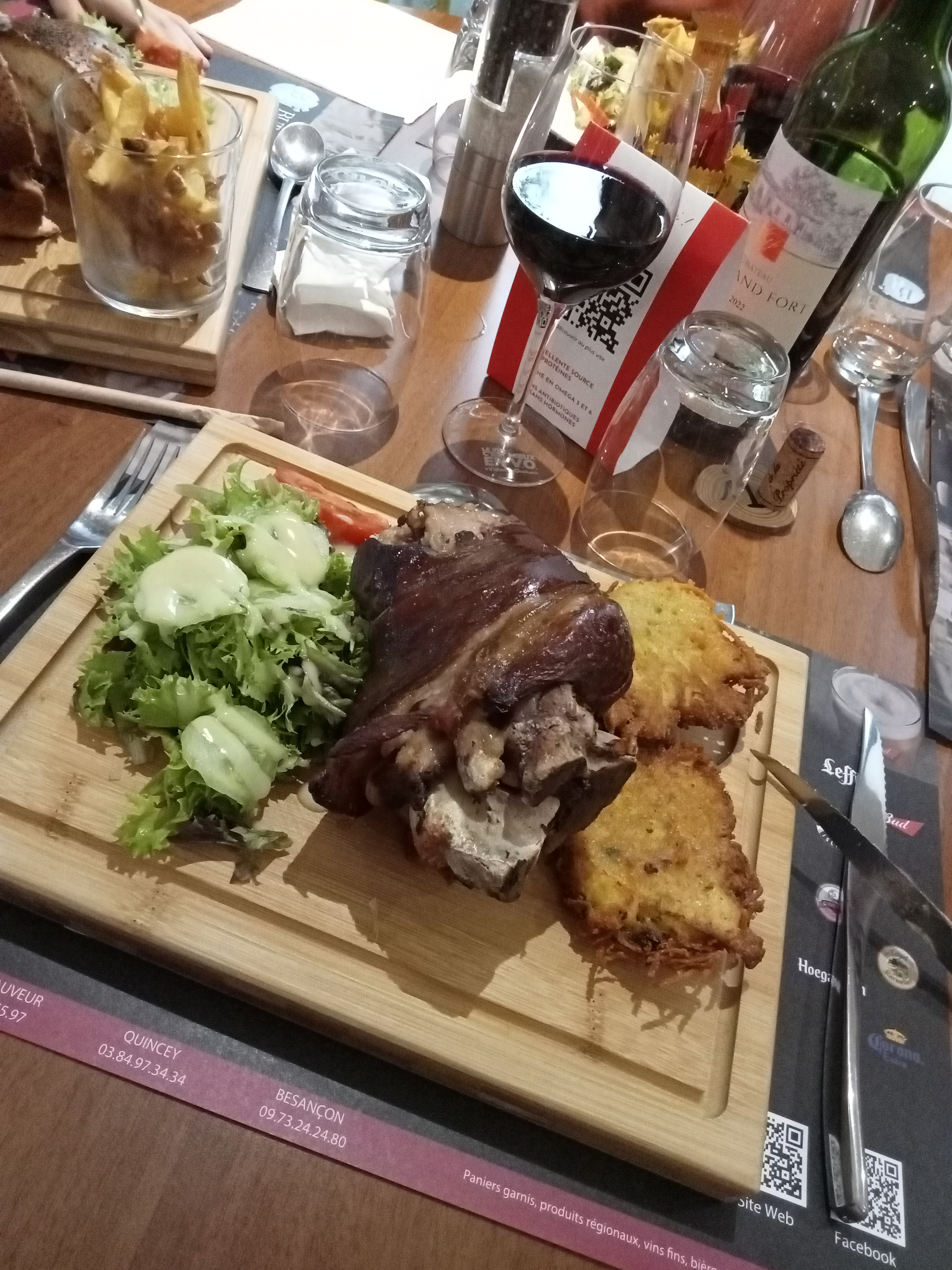 Cuisses de grenouilles manquait de cuisson, l ail était brûler, galettes de pomme de terre d un côté était cramé. Très déçue Dessert déçue aussi. Service et ambiance ça été.