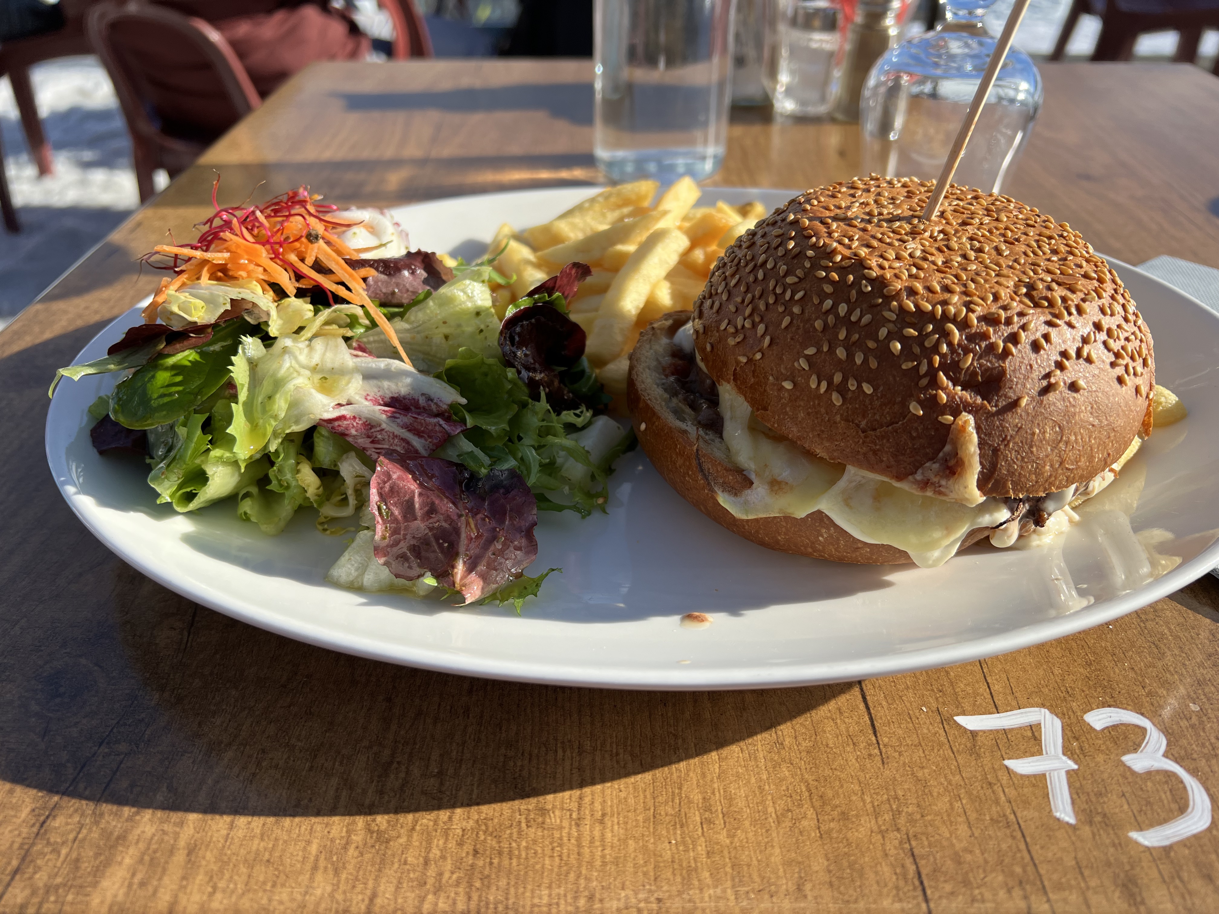Restaurant d'altitude situé dans un beau cadre , terrasse extérieure avec des canapés à disposition. Le burger était très bon , avec les oignons caramélisé à l'intérieur qui apportait une belle sucrosité ! Des portions généreuse, et un service très agréable