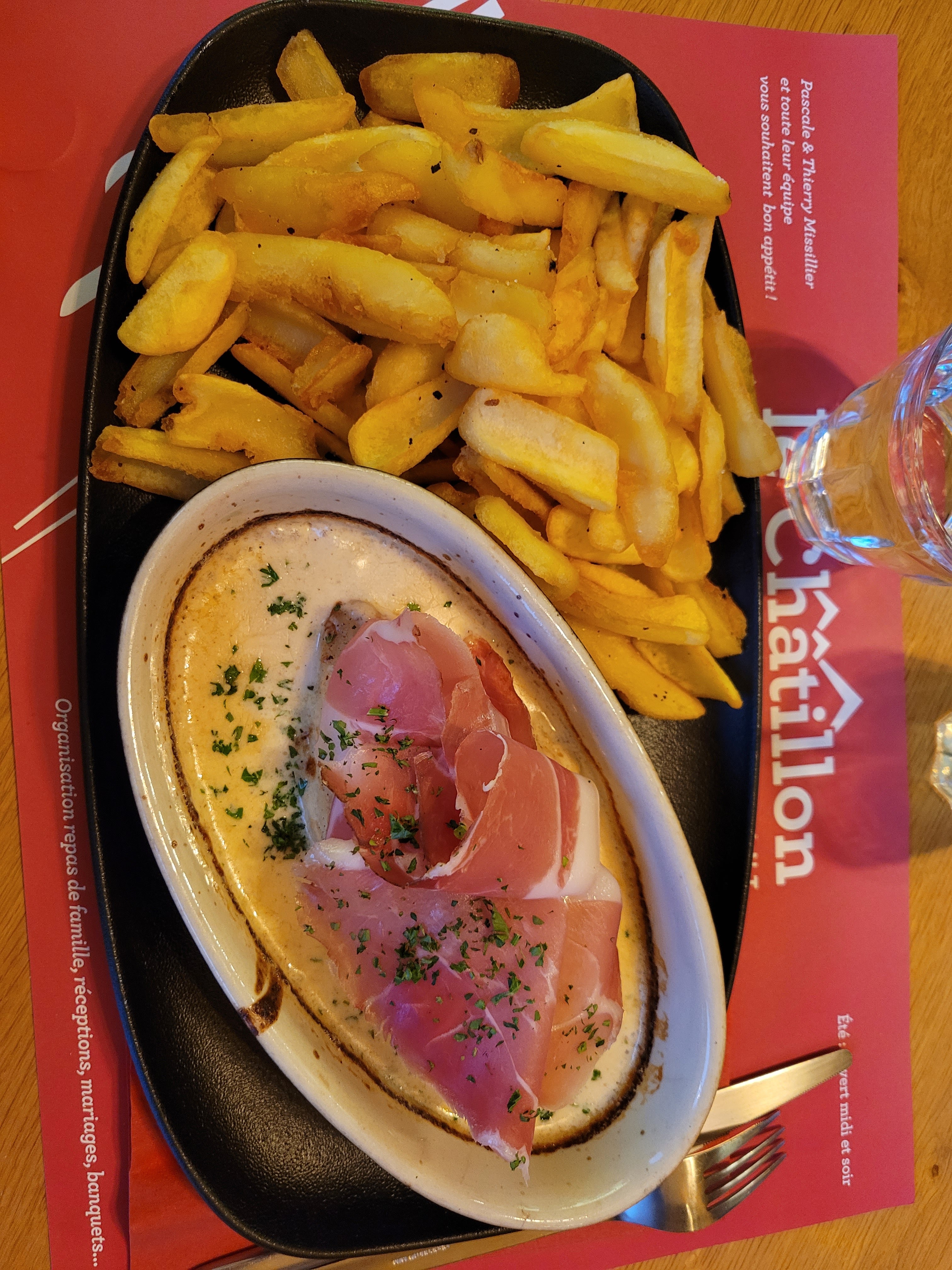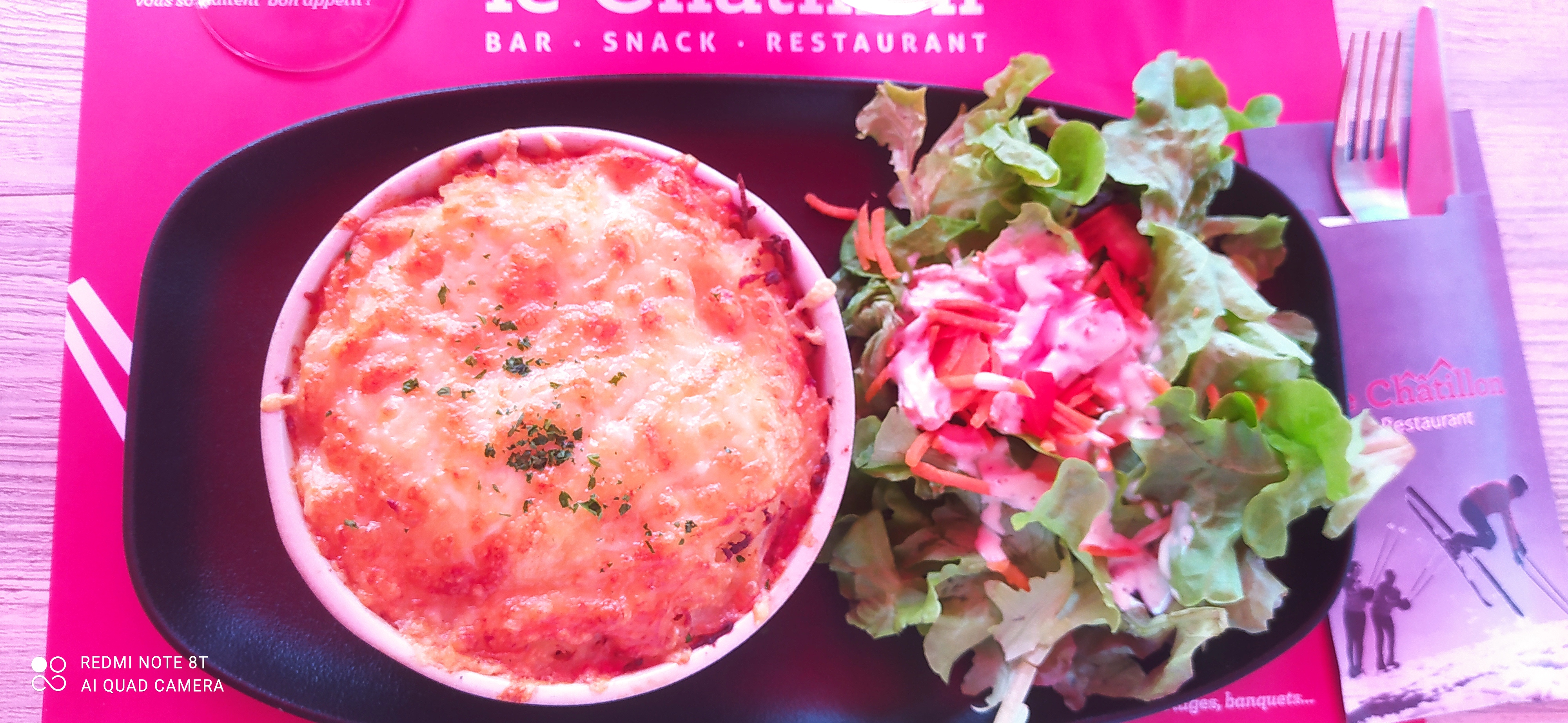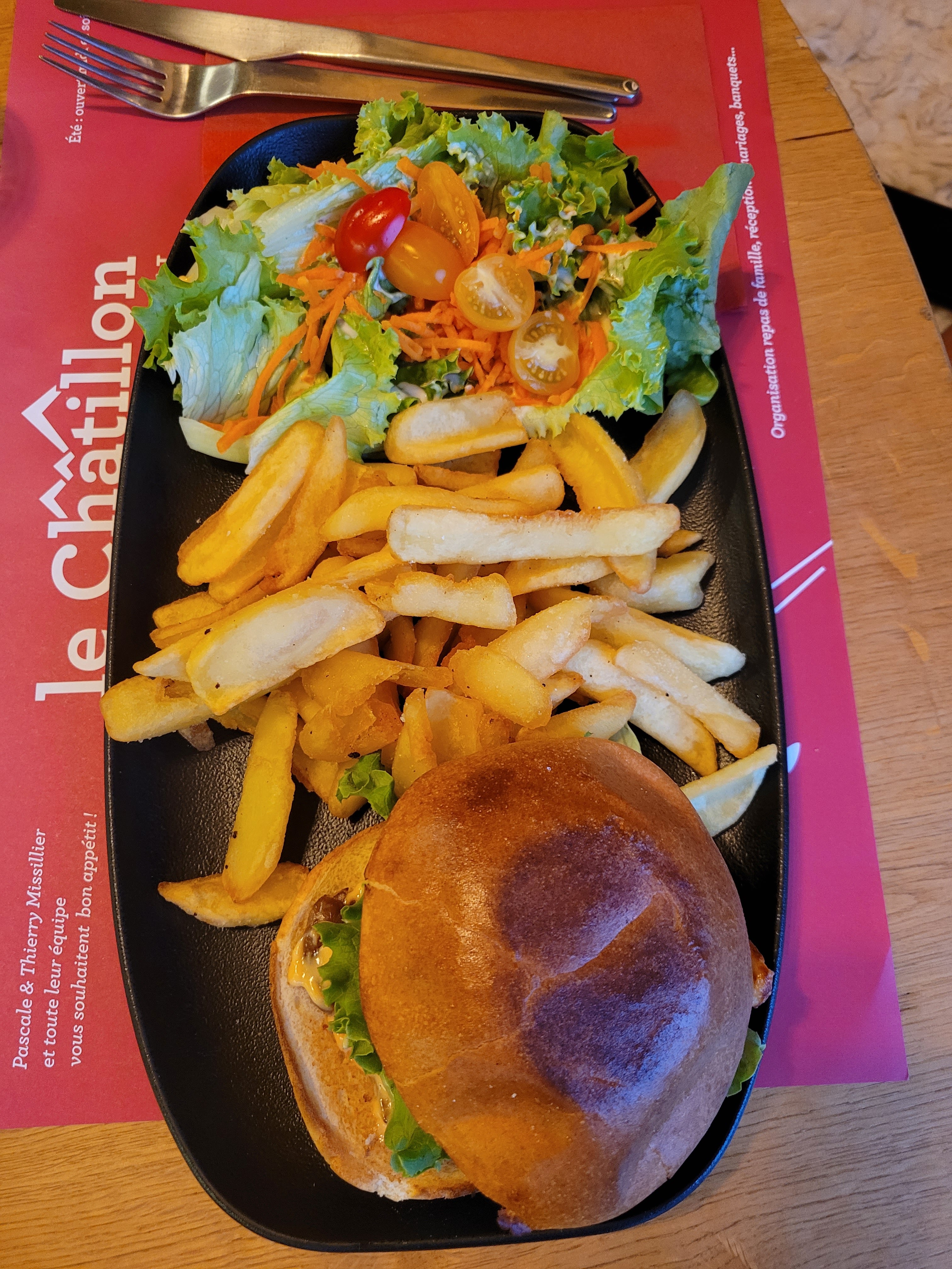 Après avoir admiré les parapentes nous sommes redescendus manger au restaurant le chatillon. On y mange bien. Les plats sont copieux et les jeunes serveurs très agréables.