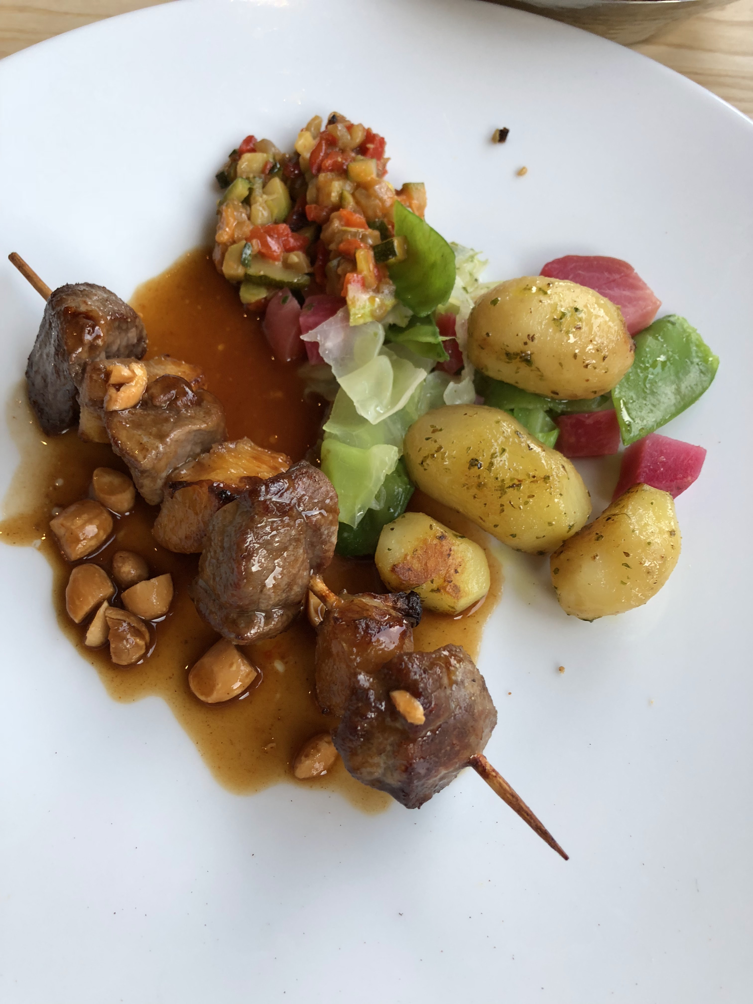 Salades peu raffinées à base de carré de jambon et agrémentées de quelques morceau de saucisson du pays. Pizzas au goût douteux. Mes enfants peu difficiles se sont limités à 2 parts chacun. Pourtant ils étaient affamés après de nombreuses heures de routes. Je ne regarde pas trop les prix, et j'estime qu'il faut aider les commerces et saluer leur mérite. Mais 17 euros une telle salade, c'est un scandale... A vite oublier.