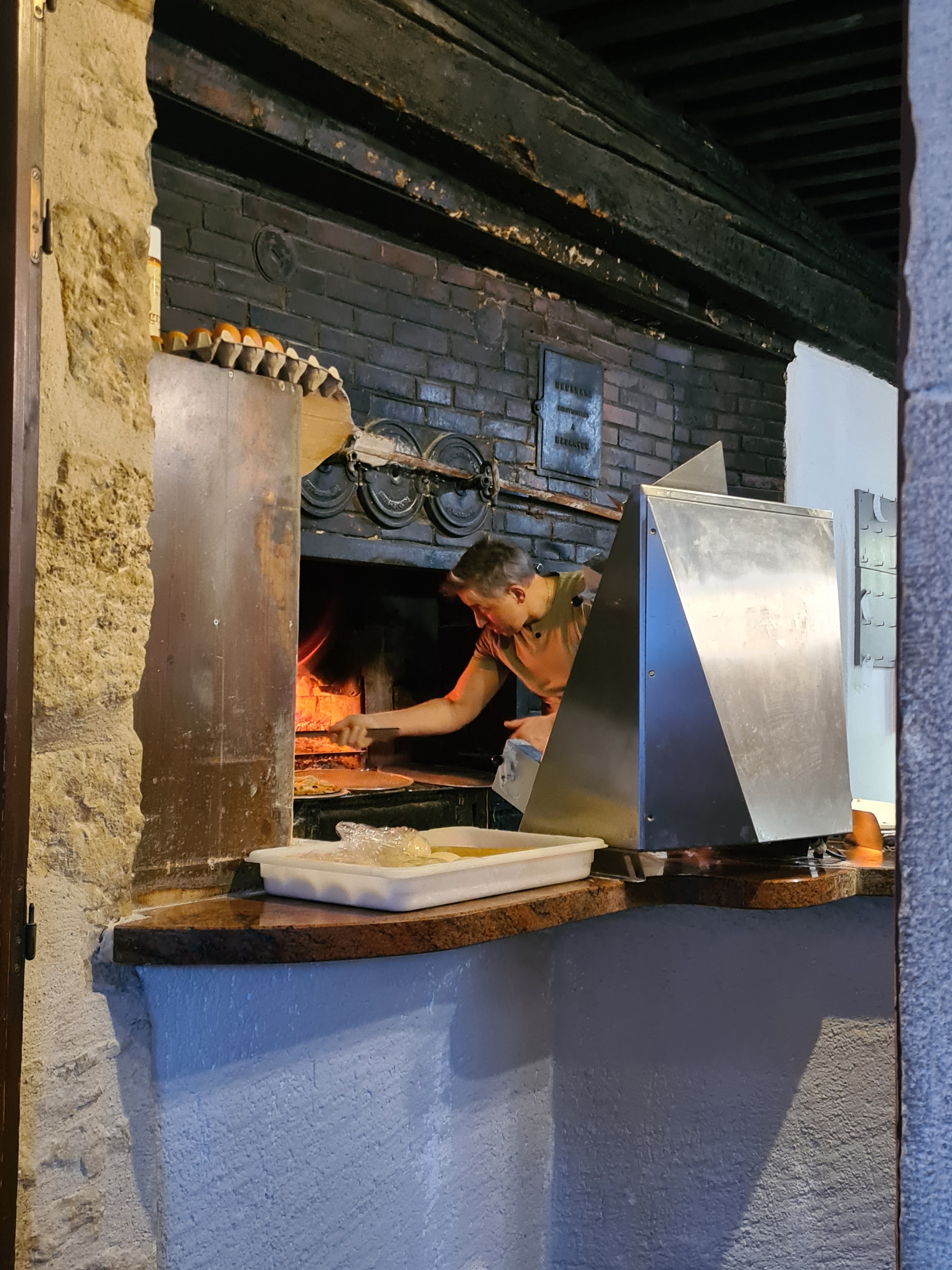 Les pizzas cuites dans un ancien four a pain sont excellentes et le service chaleureux