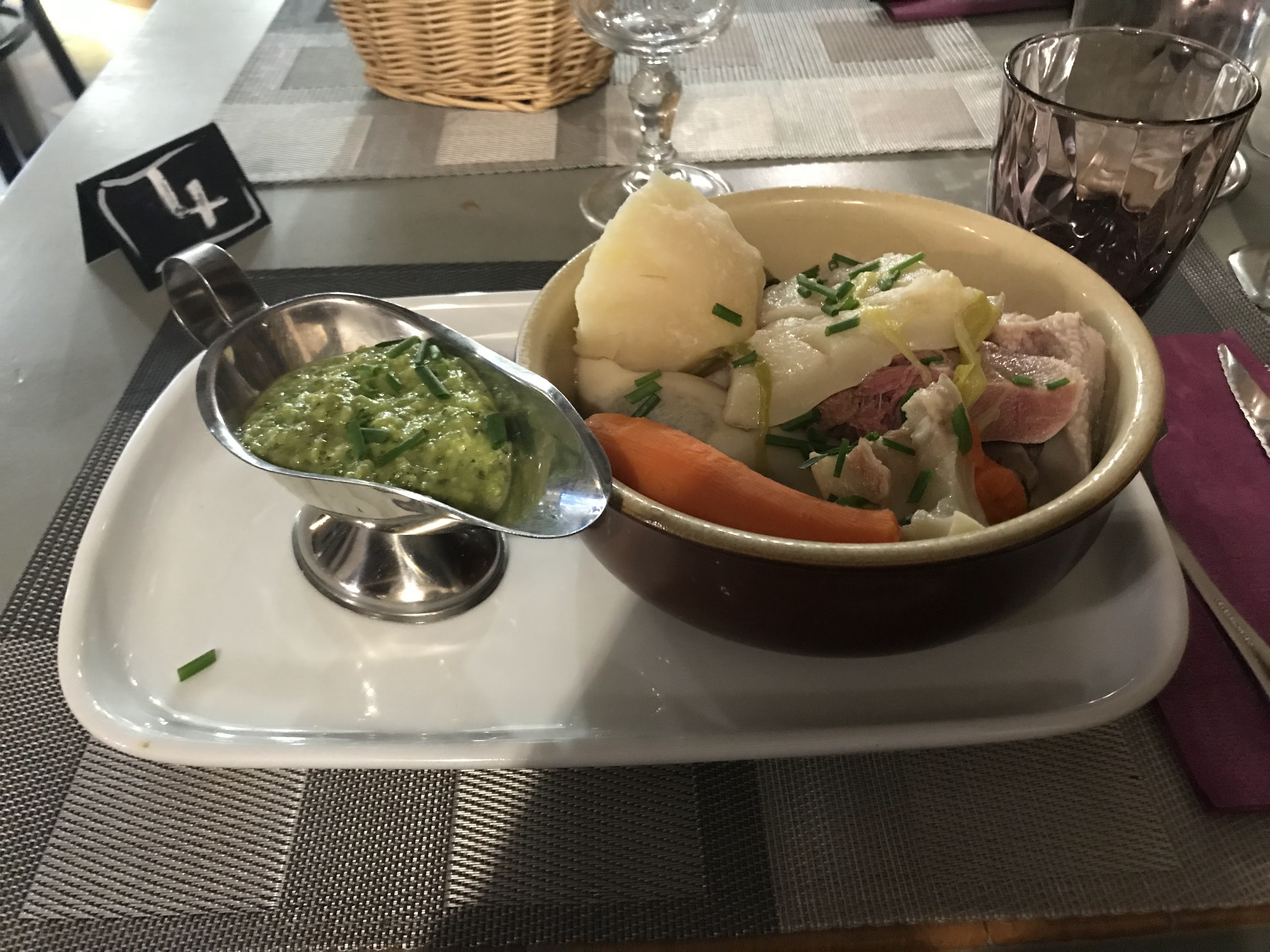 Repas, bonne moyenne, mais m'expliquer que le côté du Rhône qui avait tourné, goût déjà côté vinaigre, à par après été goûté et trouvé bon est un no go. Je souhaite à la personne d'en trouvé suffisamment 😂