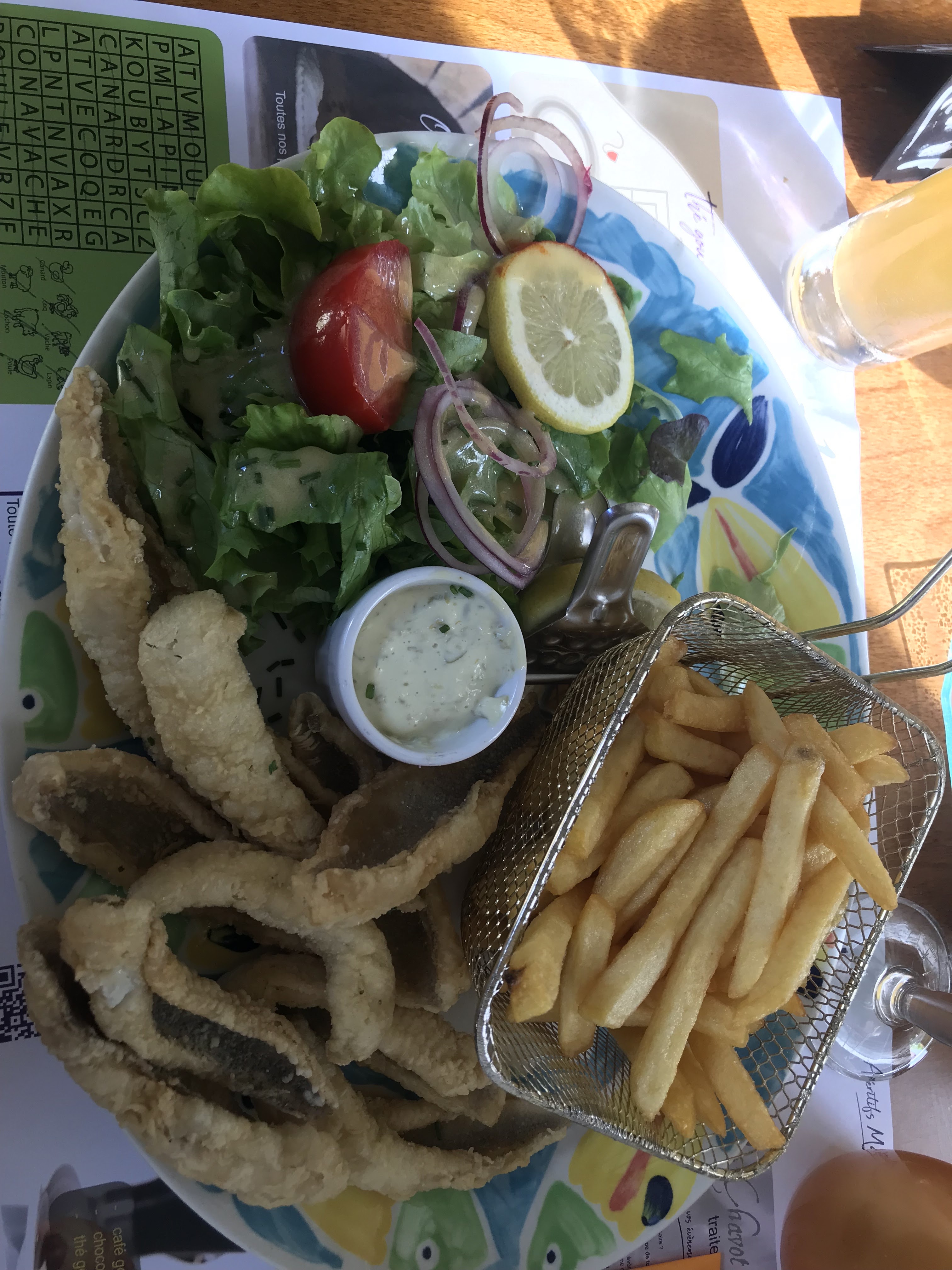 Cadre agréable avec vue sur la Loue. Bonne idée de faire des moules frites le vendredi. Elles étaient délicieuses.