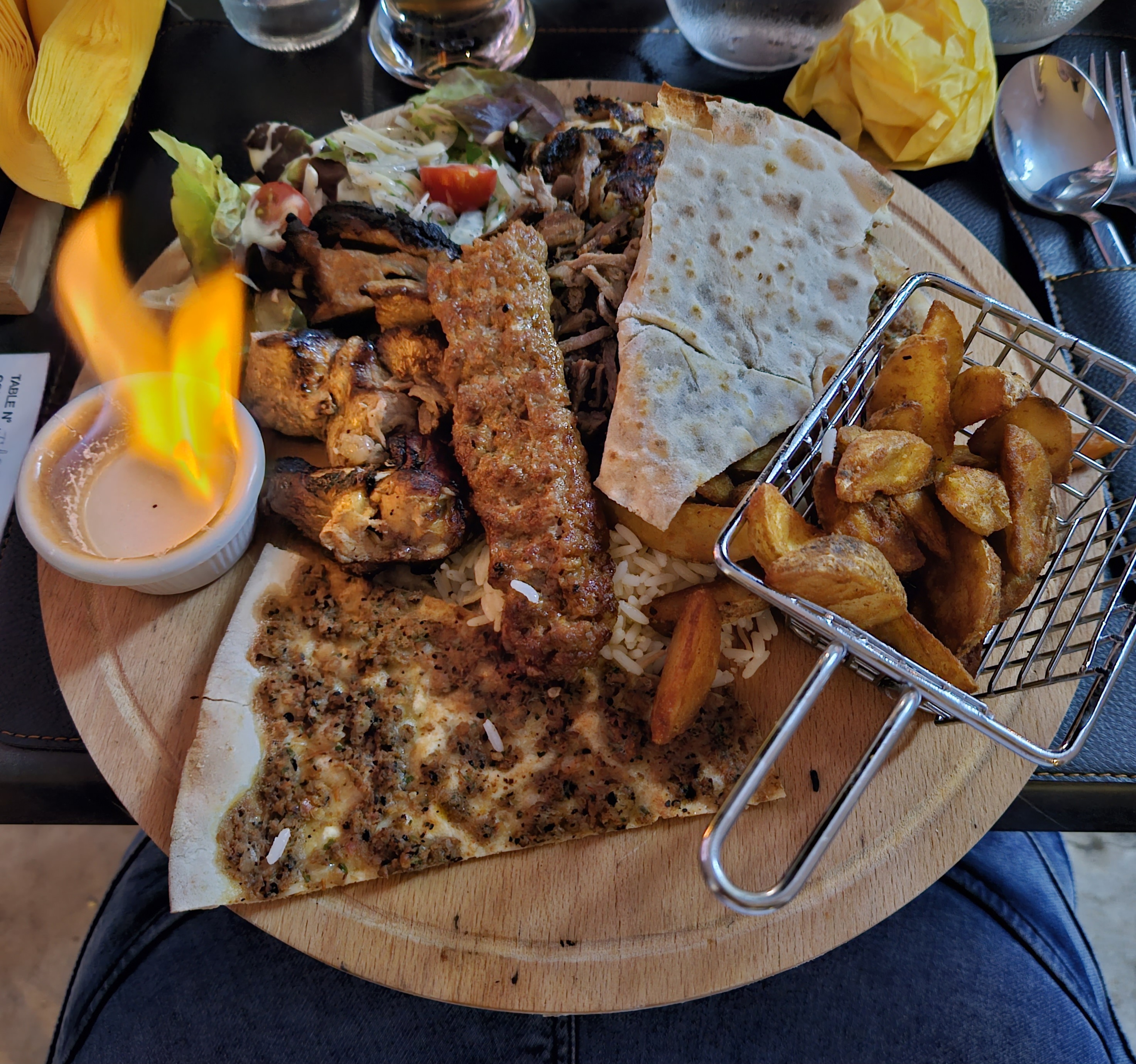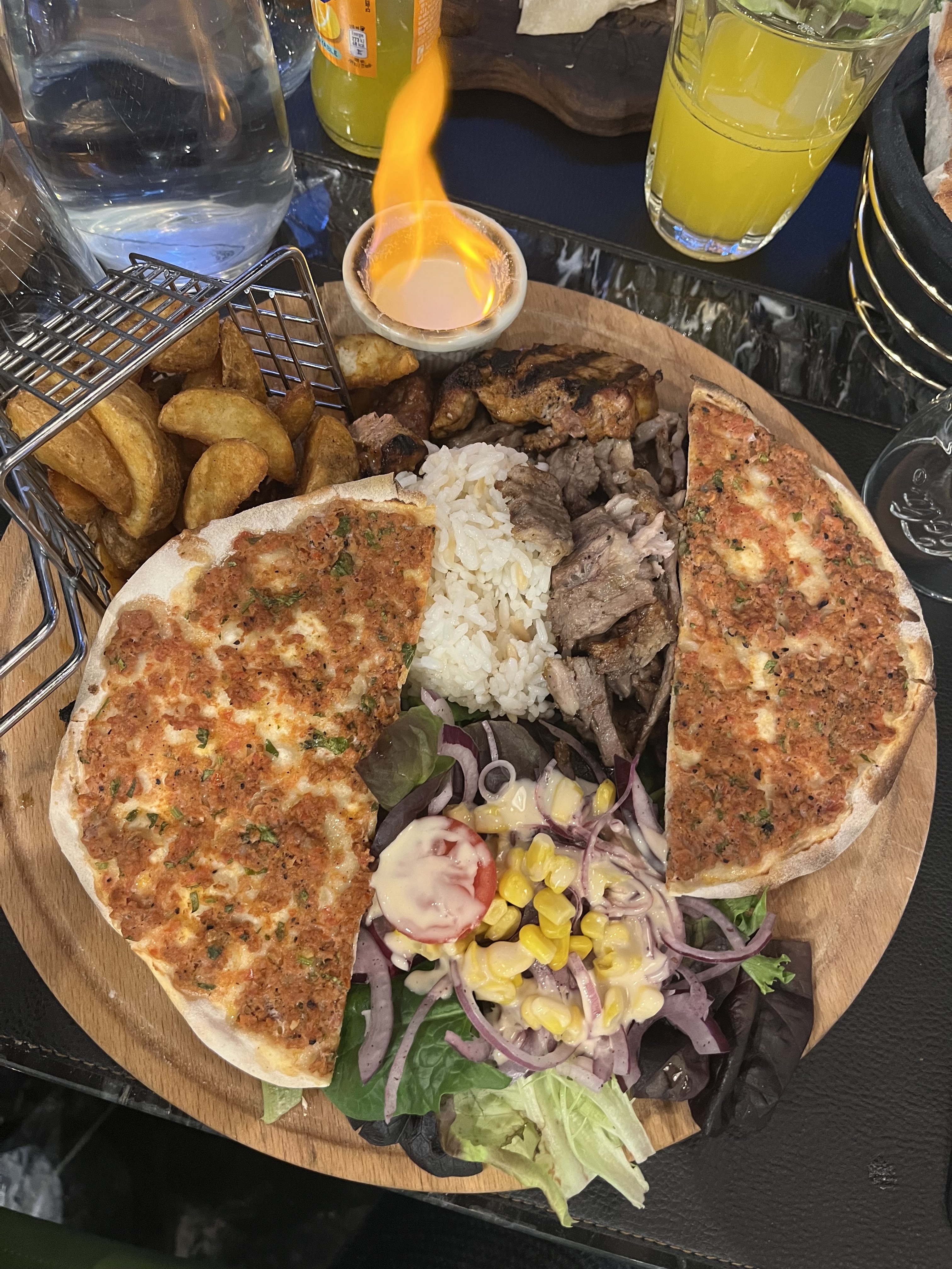 Quel régal ! Grillades au feu de bois, kefta, kebab, houmous, pizza, tzatziki… tout est vraiment très bon ! Un repas qui finit en festin! Incontournable à Martigues dès lors pour nous. Pas de note sur l ambiance car livraison à domicile...