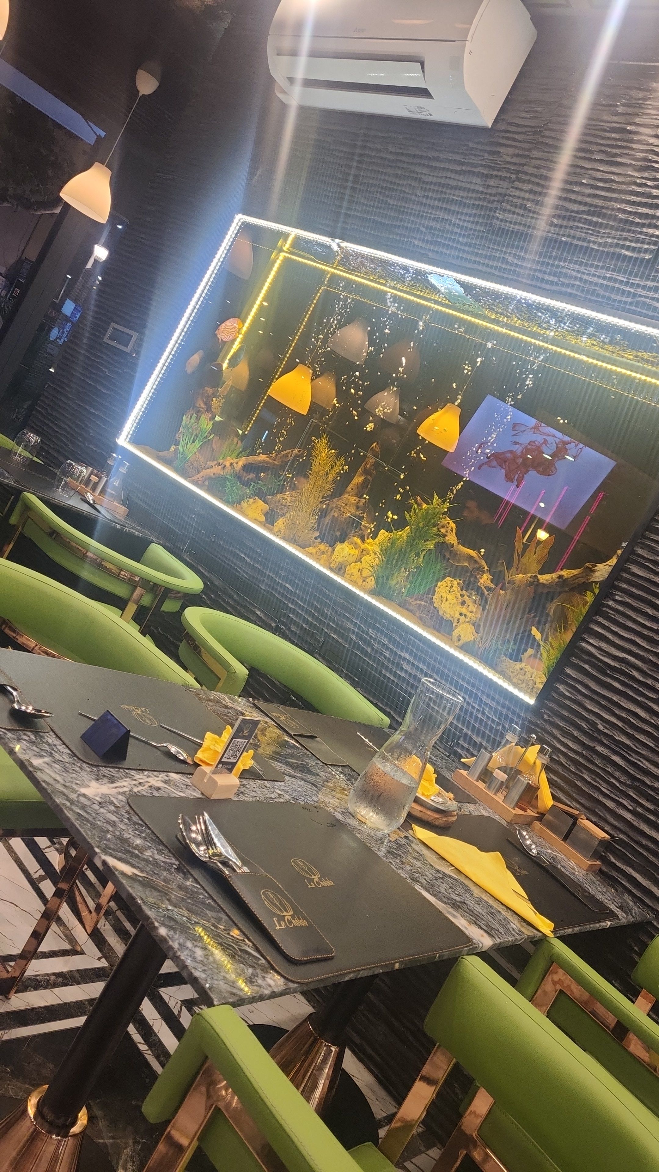 Restaurant très beau et propre l’idée de l’aquarium est bien trouver les malheureusement plat beaucoup trop salé alors que ont a bien dit de pas en mettre arrivé à 21h un vendredi plus d’entrée plus de kebab plus de si plus de la côte de bœuf qui n’est pas une cote de bœuf les point possitif le personnel est gentil essaye de faire de leurs mieux pour satisfaire leurs clientèles les point négatifs patron de mauvaise fois accepte pas que ceux qui nlus à étais servie ne nous plaise pas fait écouter est s’améliorait Rome ne c’est pas fait en un jour service trop long donc a revoir être plus à l’écoute des clients pour éviter de ceux tromper de plat mise apart ça je réessayerais dit manger