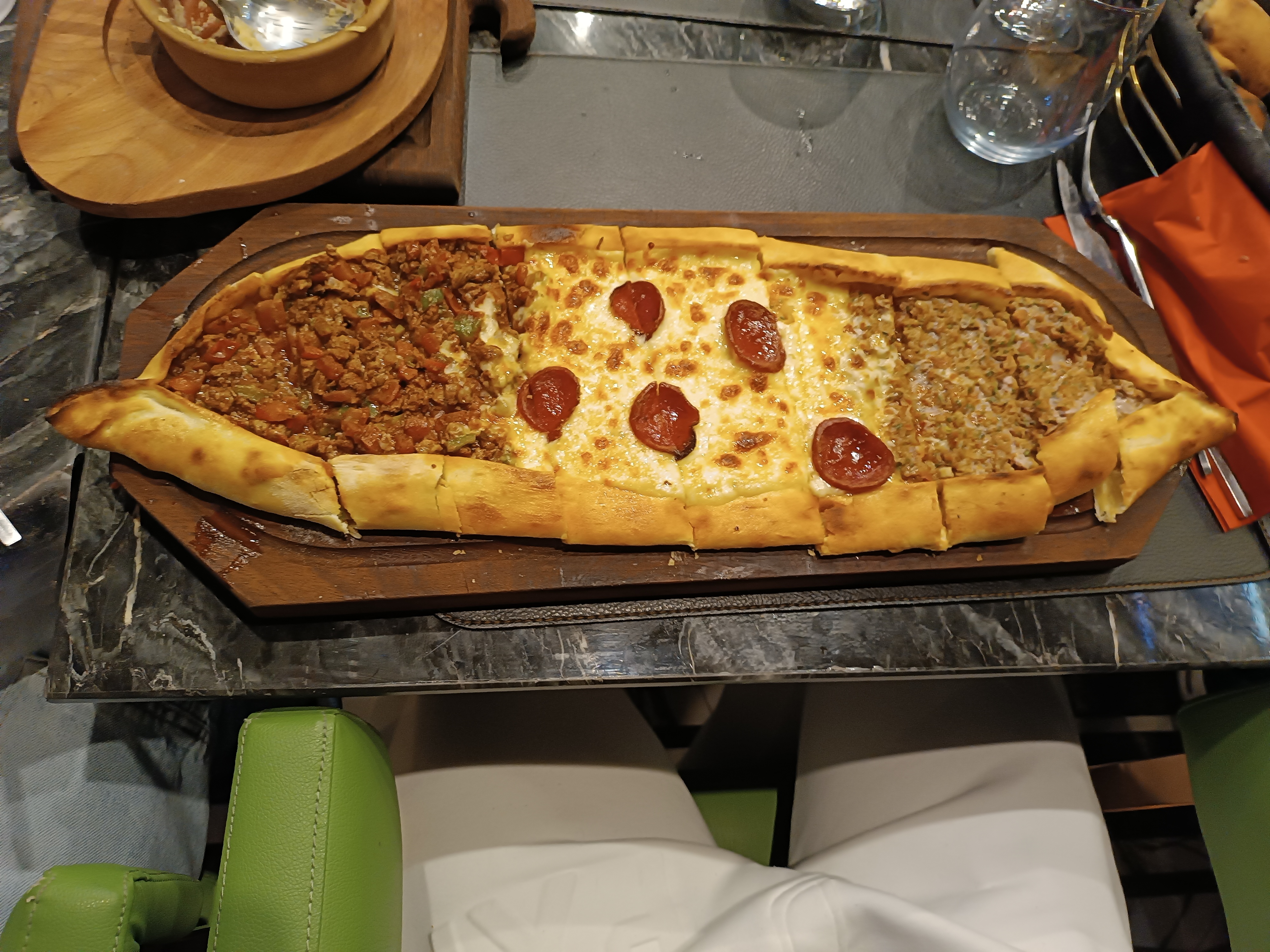 Snack amélioré. Bruyant, de nombreuses coupures d’électricités, chaise bancale. Service déplorable, ne connaissent pas le vin qu’ils servent qui est de plus degeulasse. La pide que j’ai choisie est fade et sans Goût.