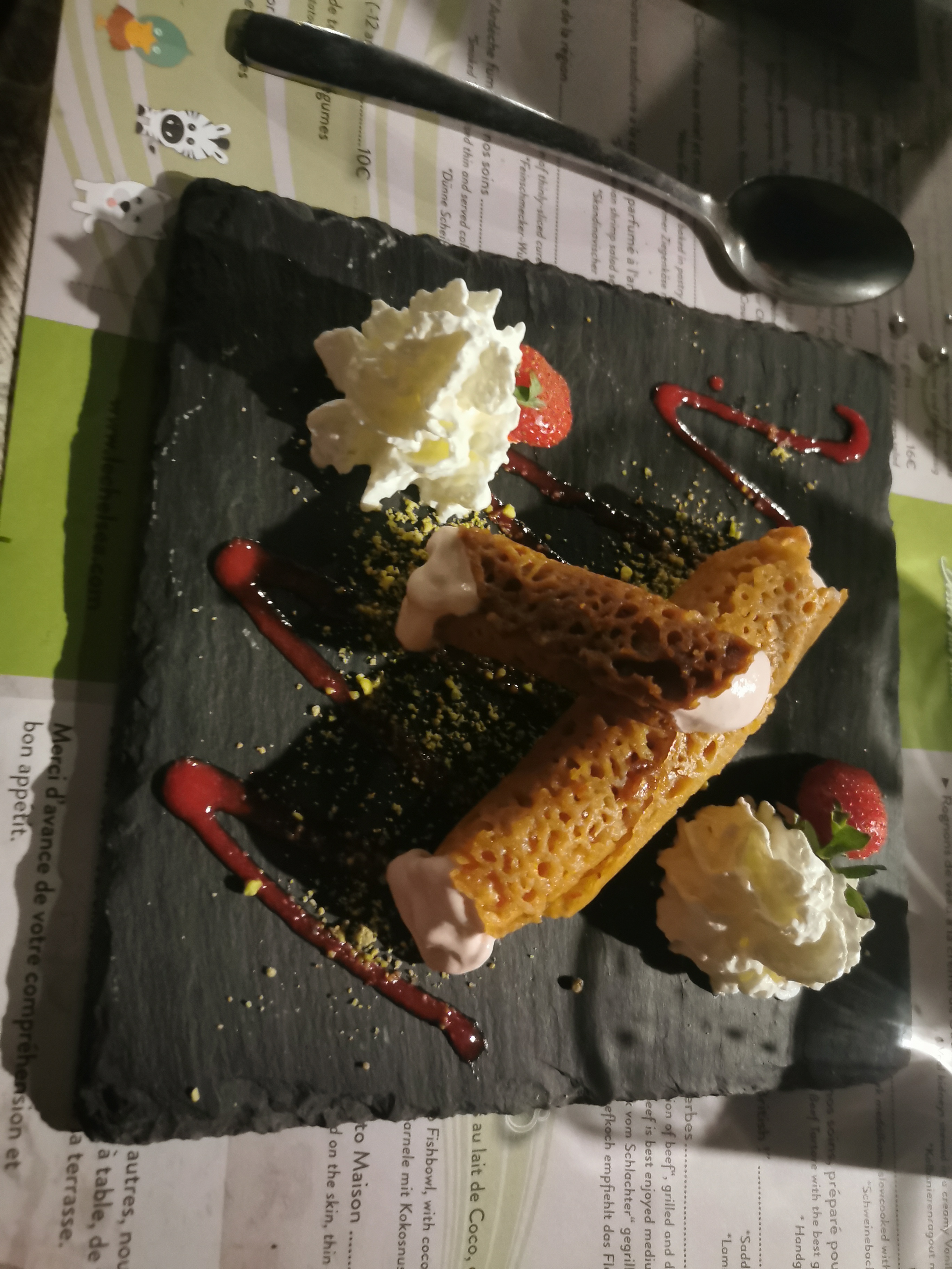 Cuisine au top, rapport qualité prix correct, personnel encore motivé et souriant en fin de saison. Super soirée en famille. Parfait ! 😄