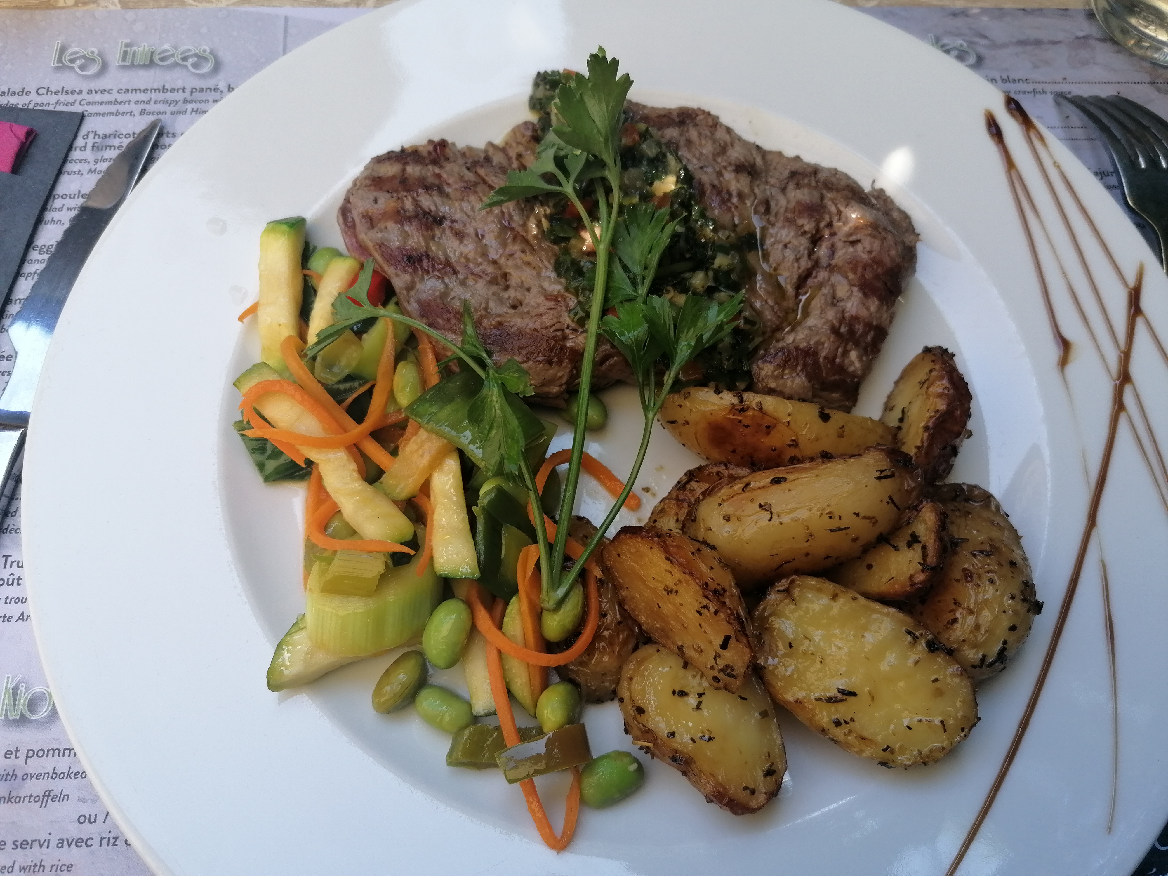 Valeur sûre pour ce restaurant. Rapport qualité/prix excellent. Même le menu du jour est élaboré. Serveuses au top ! Terrasse magnifique avec beaucoup de verdure on se croirait dans un jardin. Les chiens sont les bienvenus. Je recommande vraiment.