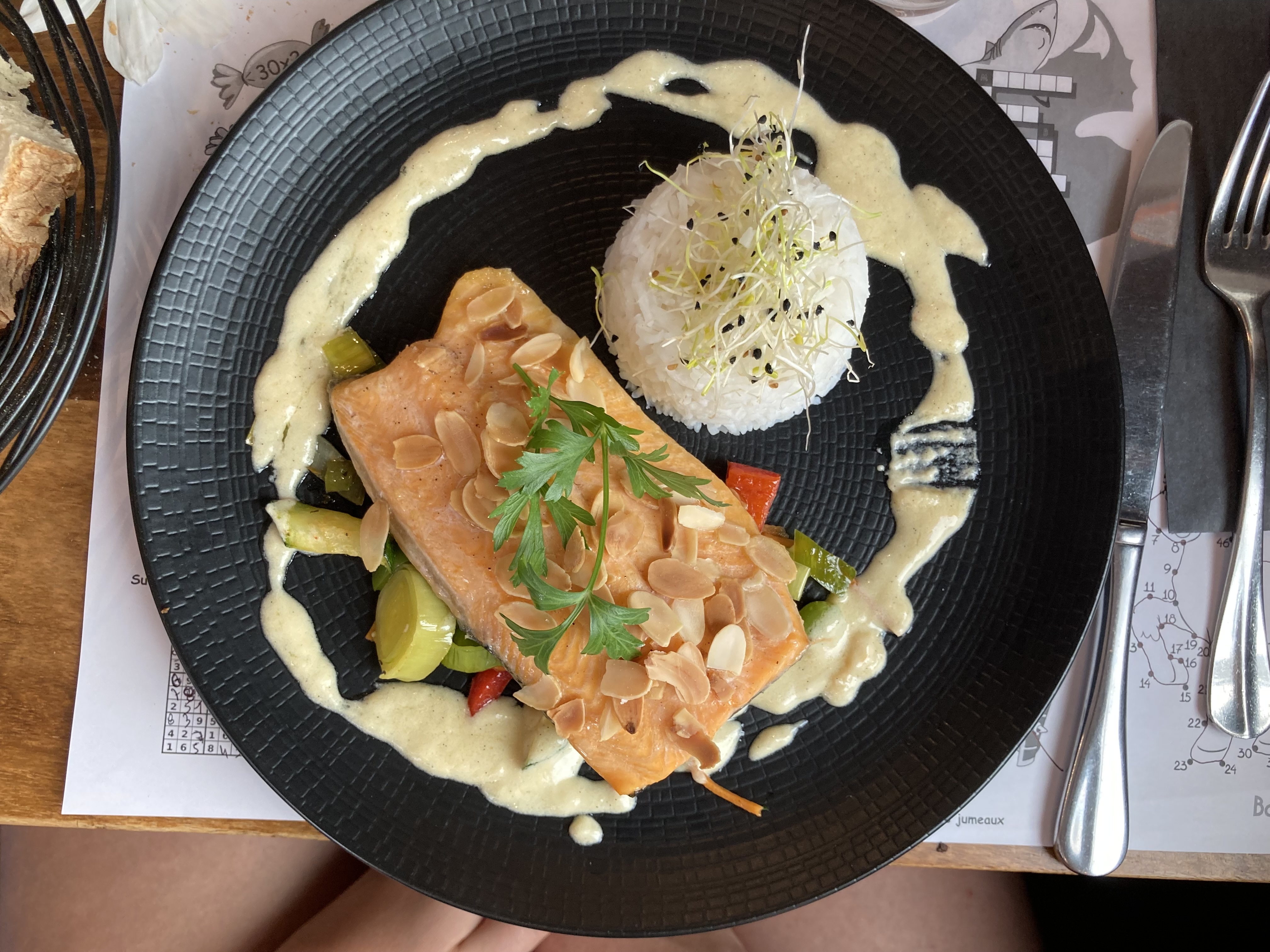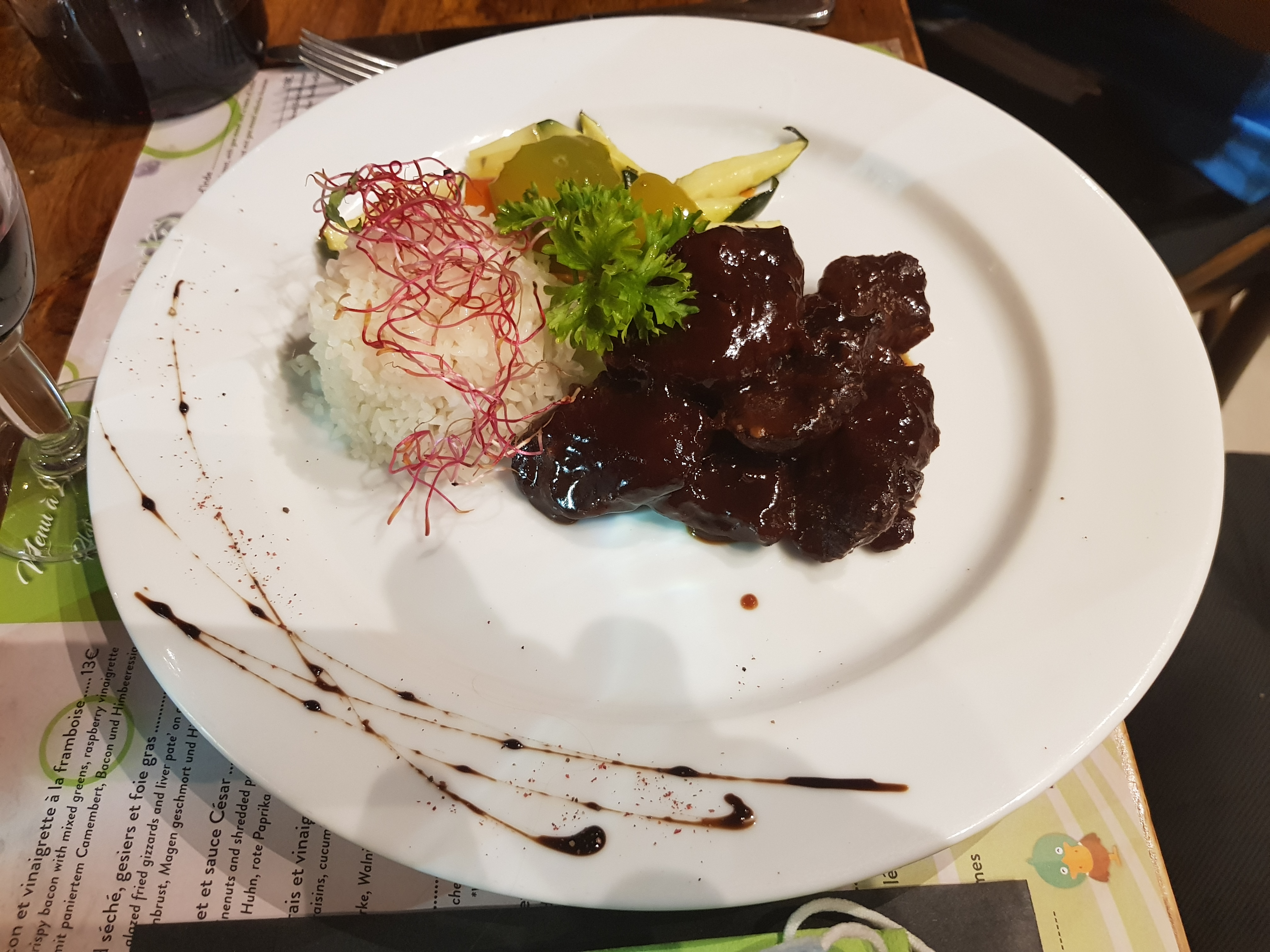 Jolie terrasse, plat fin et élégant, recherché. Service et sympathie