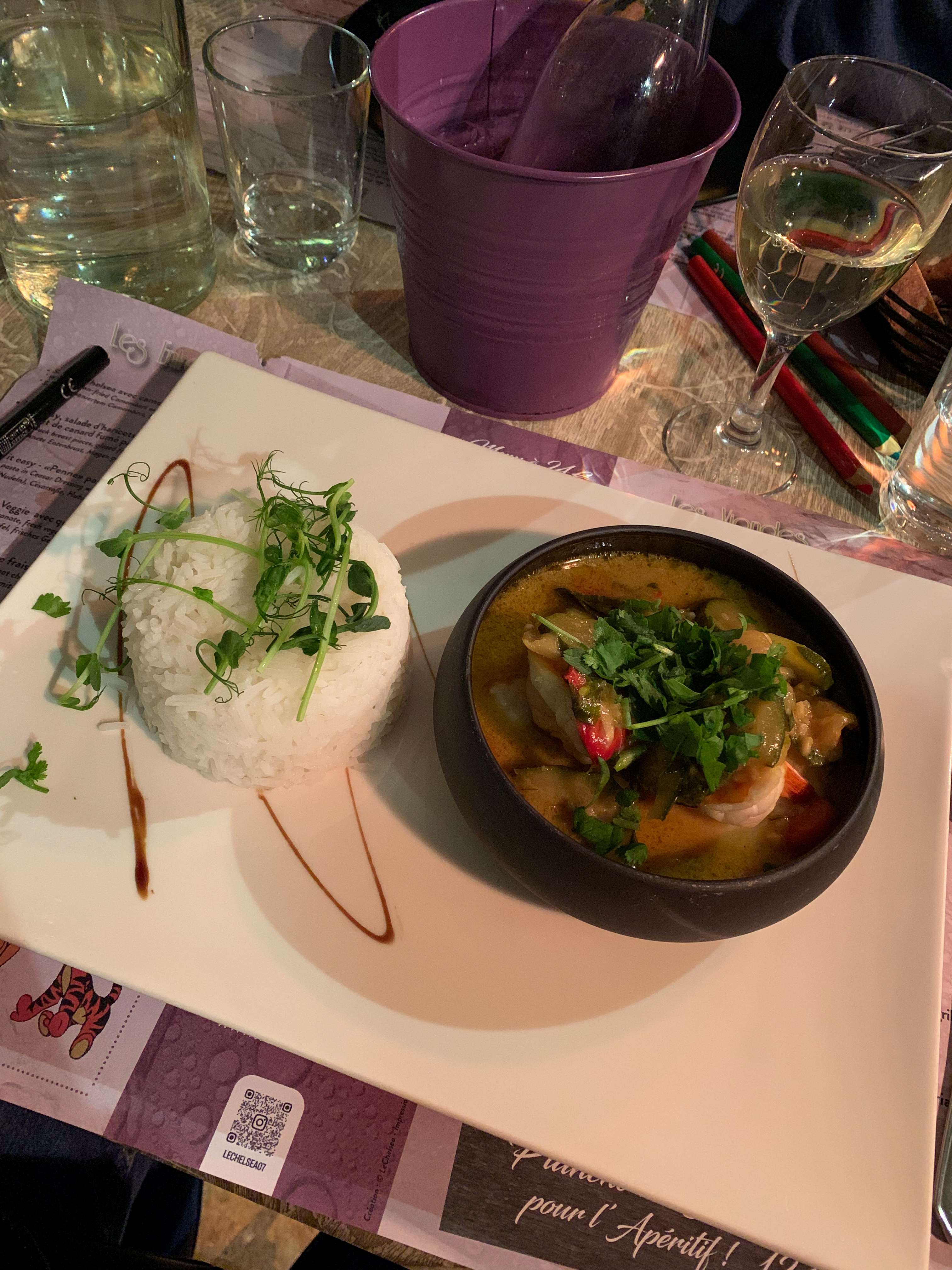 Decouverte du Chelsea lors de notre sejour à Vallon-pont-d'arc, nous avions reservé avec comme contrainte une poussette, en plus de l'accueil formidable ajouté à un cadre chaleureux, on nous a preparé une table specifique afin de pouvoir y glisser notre poussette ! Viens le moment du service, cocktail très bon, preparé quasiment devant vos yeux ( Comptoir en debut de pièce ). J'ai opté pour une formule entrée plat dessert, et rien à redire tant les choix proposés vous donne l'eau a la bouche ! On a le droit à des plats typiques mais quelques mets plus originaux ! J'ai opté pour la caillette en entrée, la pièce du boucher ( une poire de boeuf ) et une crême brulée avec chataignes. Rien à redire sur la presentation impeccable des plats, et un grand chapeau bas pour le gout des plats ! Tellement nous nous sommes regalés, lors de l'addition nous avons reservé pour la même heure le lendemain soir où, sans aucune surprise, nous sommes sortis ravis. Merci 1000 fois à toute l'equipe, si notre passage nous amène à revenir, nous reviendrons et nous conseillerons votre etablissement.
