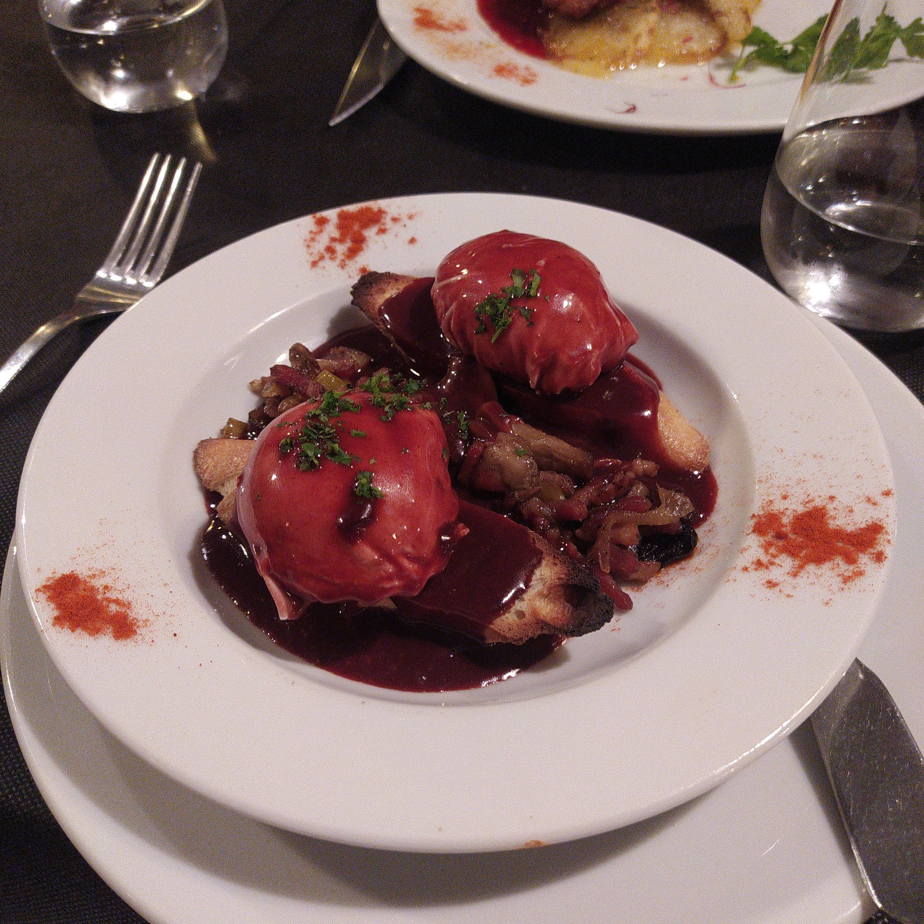 Mangé ce midi l'entrée ça allait c'était bon mais le pavé de foie de veau dégueulasse pas cuit du tout, rosé ça doit l'être au milieu et cuit tout autour. Là ça se mettait en bouillie dès que j'essayai de couper un morceau, c'était presque cru, du coup j'ai mangé que la purée de salsifis et l'entrée (29 € c'était salé pour avoir mal mangé). A l'avenir évitez les pavés de foie de veau c'est trop épais et vous ratez la cuisson