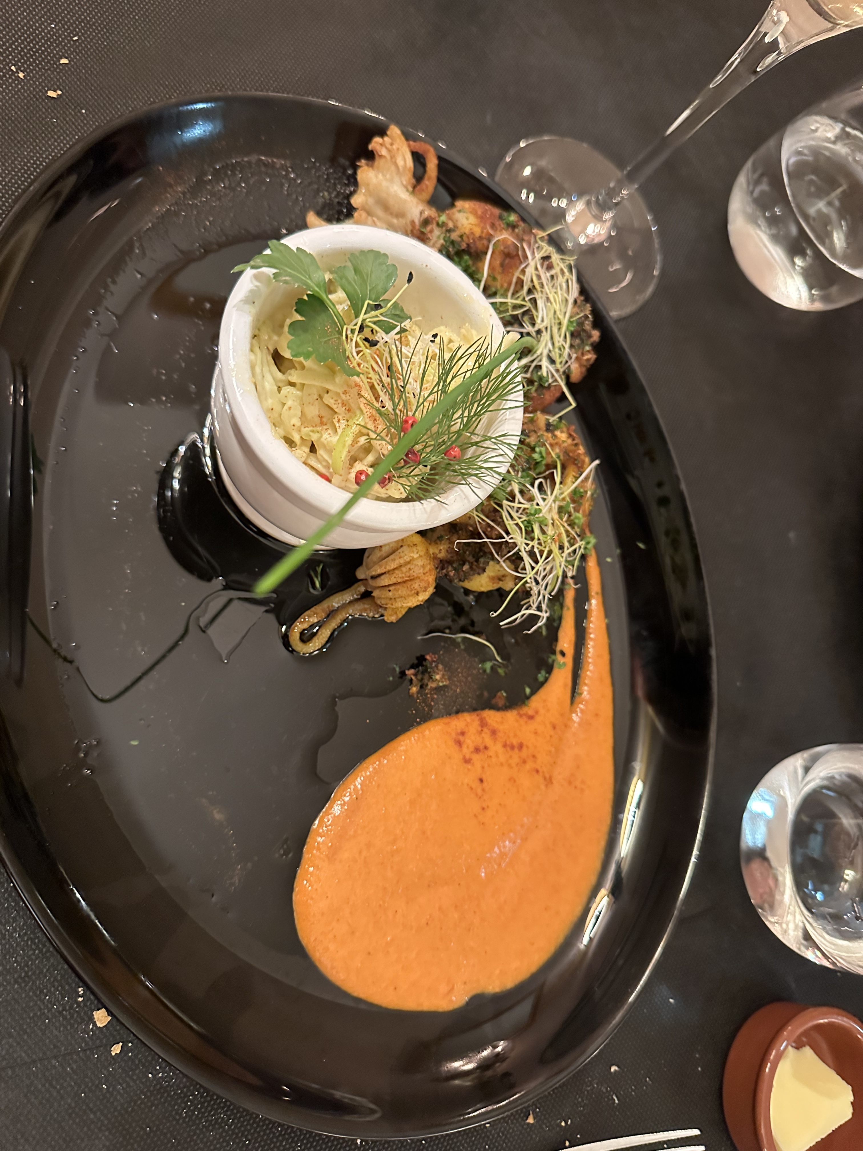 Le restaurant est une expérience culinaire a découvrir absolument avec des plats fins et élaborés digne d un étoile du goût et une très jolie présentation a découvrir allez y