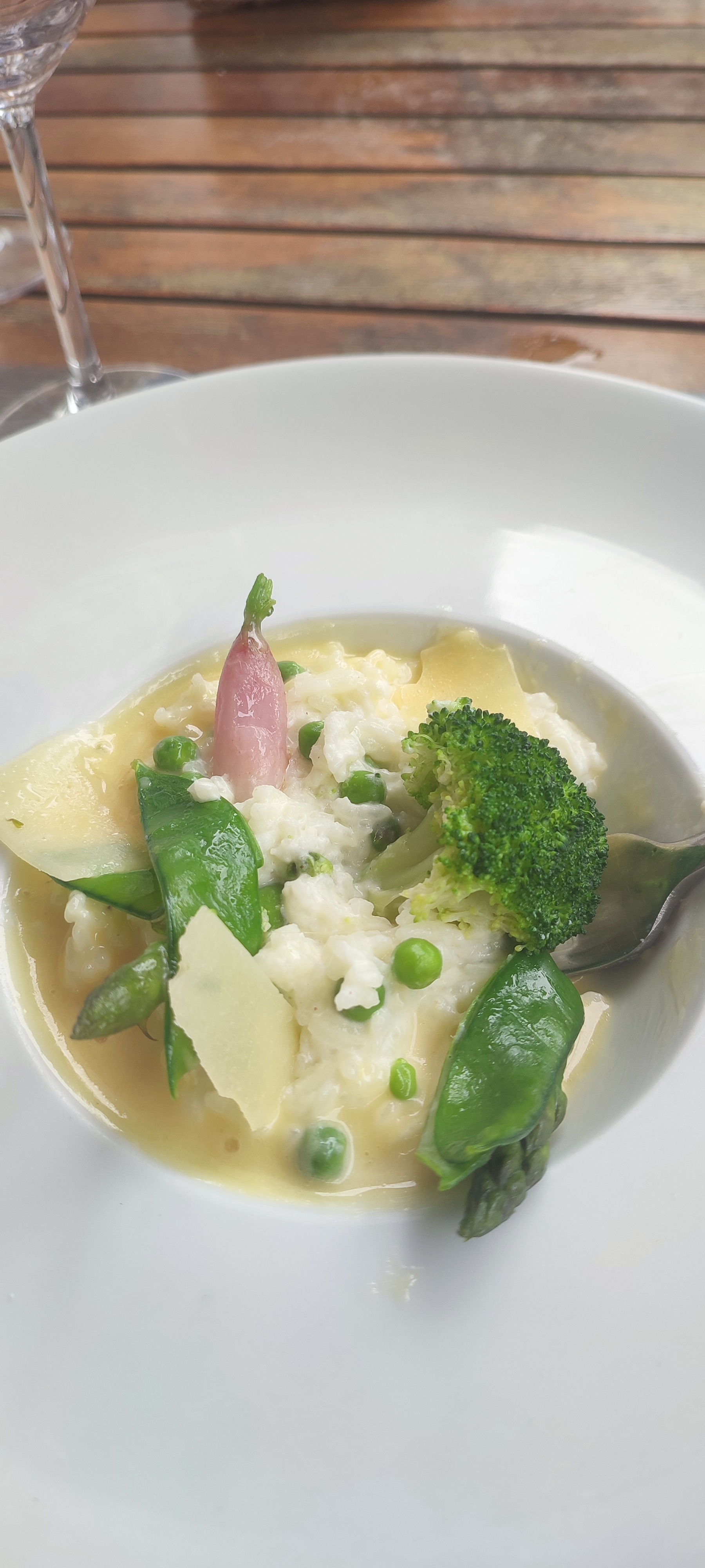 Bon produits mais cuisson pas terrible Un risotto trop cuit bien beurré mais manque d'épices Cuisson du poisson moyen cru Menu du jour à éviter Service super