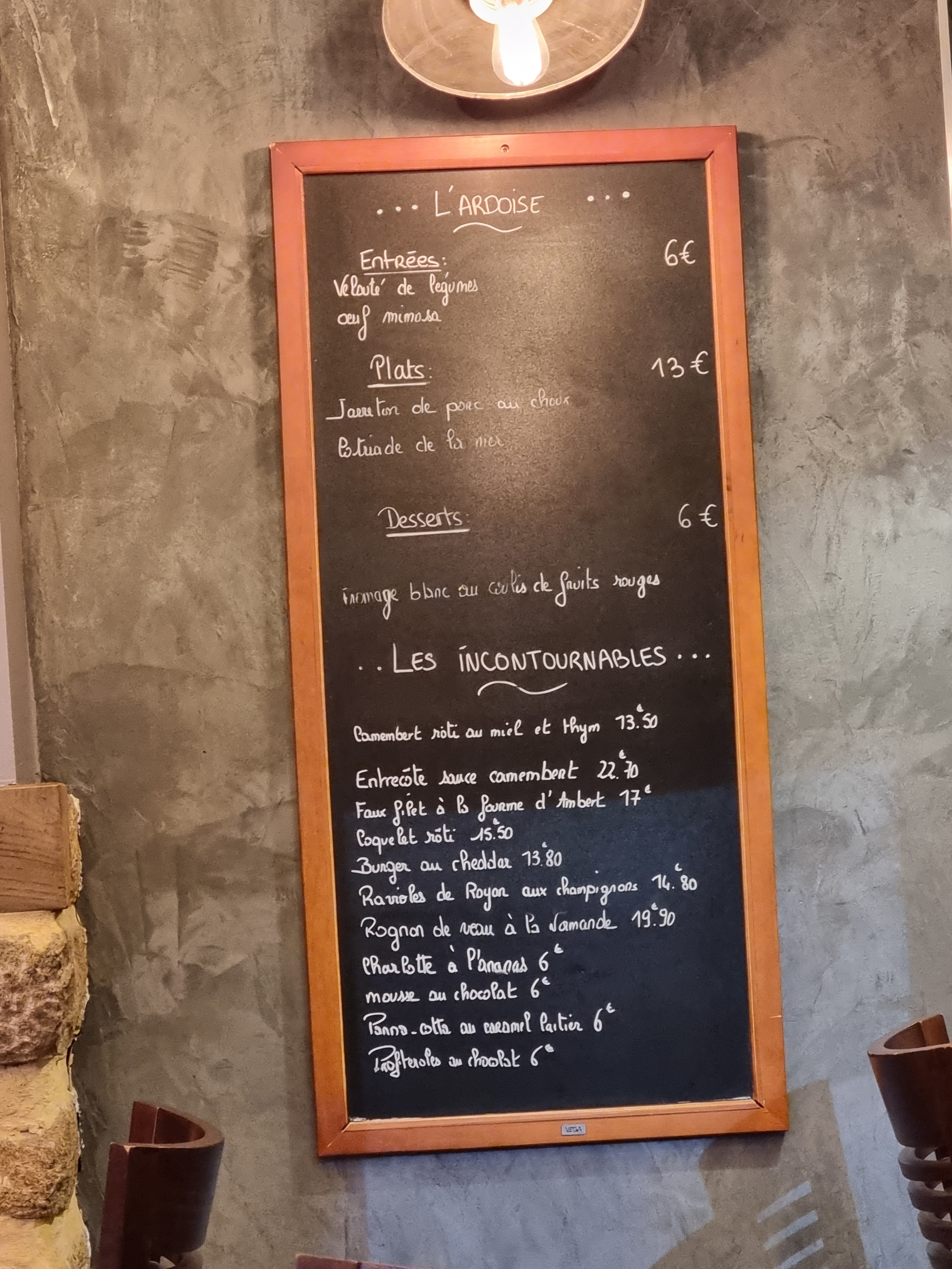 Rapport qualité prix très mauvais par rapport a ce qu’on a dans l’assiette. Les pommes de terre doivent être très chère en Normandie vu la quantité servie dans l’assiette.