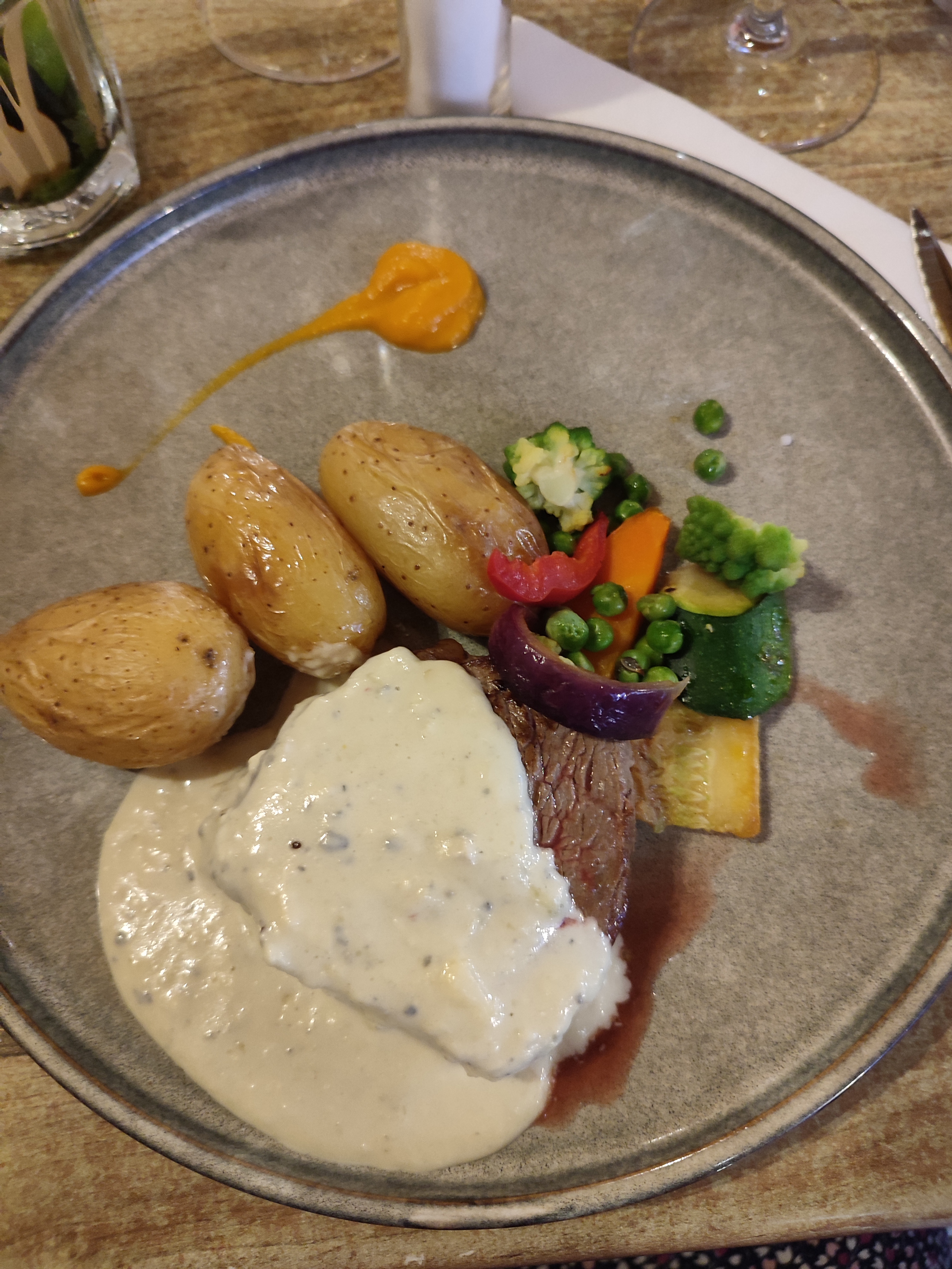 Nous avons diné 2 soirs de suite dans ce restaurant. La cuisson des viandes (faux filet, filet mignon) était parfaite, avec des sauces très bonnes. Les entrées et desserts étaient aussi de bonne qualité. La serveuse était hyper efficace et très sympathique.