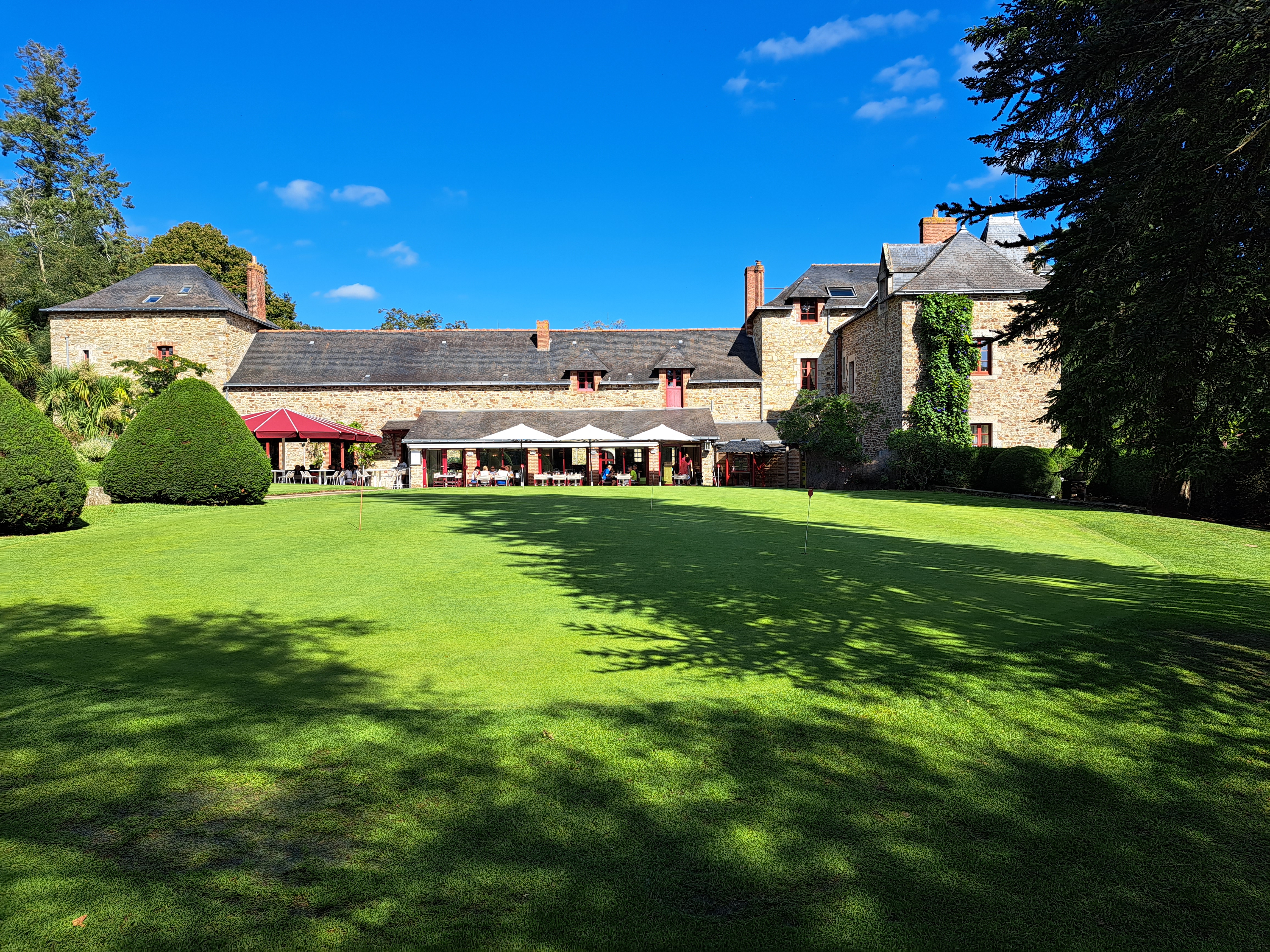 Avant notre parcours de golf nous avons déjeuné : pour aller vite plat du jour : poulet pommes de terre grenailles. Déception totale : petite cuisse seule sans aile sans blanc , à peine cuite et 6 pommes de terre dans l’ huile ! Prix 23€ On est hors saison et à la campagne ! Pas du niveau d’un golf et resort comme la Bretesche !