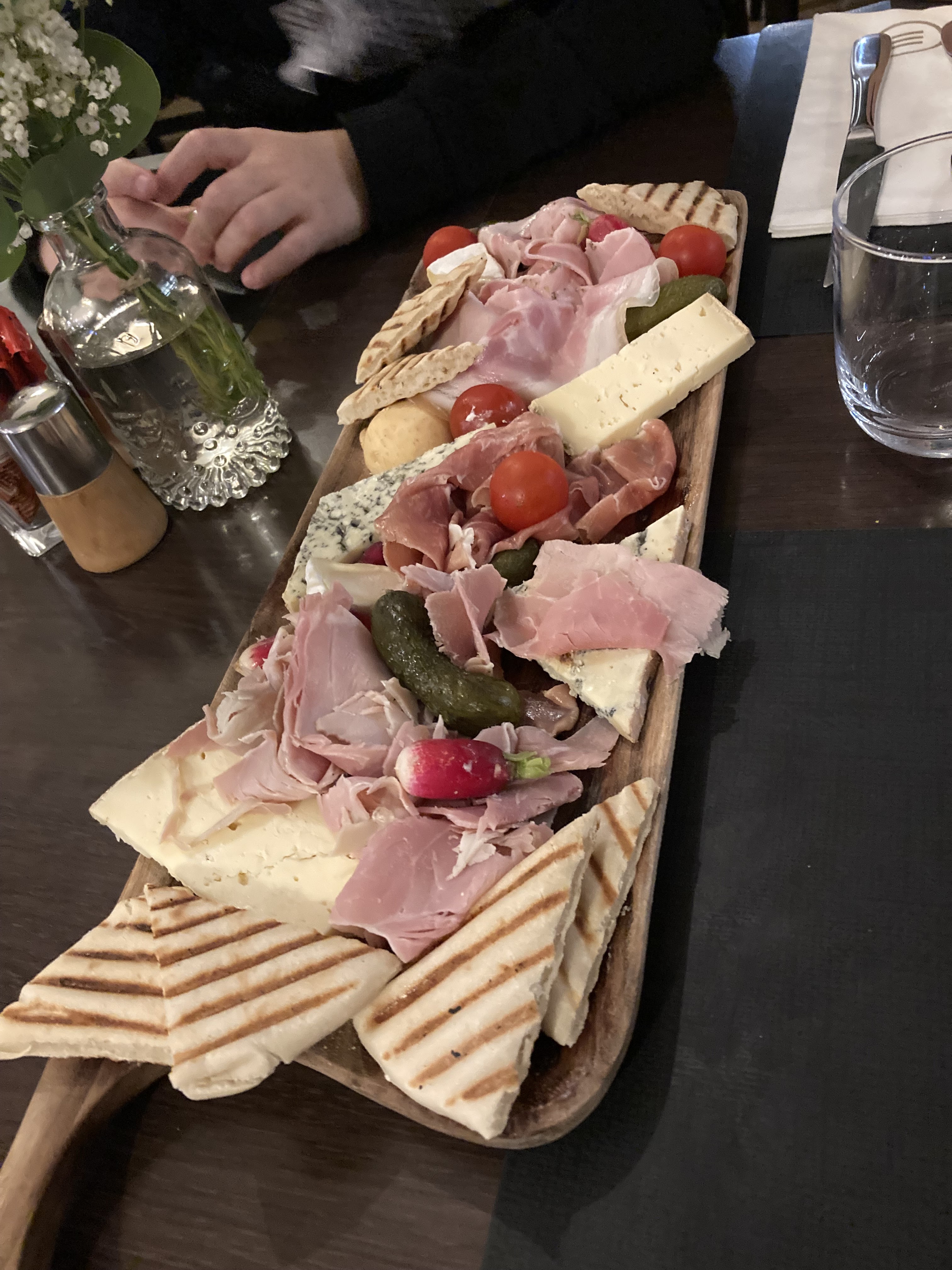Je suis allé manger avec mon mari. Le menu assez petit mais bon choix. Nous avons partagé la planche de charcuterie qui était délicieuse ! Mon mari avait un steak comme plat principal et j'avais un steak de thon (photo), tous deux cuits à merveille ! J'ai fini par commander des desserts, un gâteau au chocolat et un sorbet - également délicieux ! Il y avait une bouteille de sauvignon blanc avec le repas. Le repas s'est élevé à environ 83 €, ça valait vraiment le coup !
