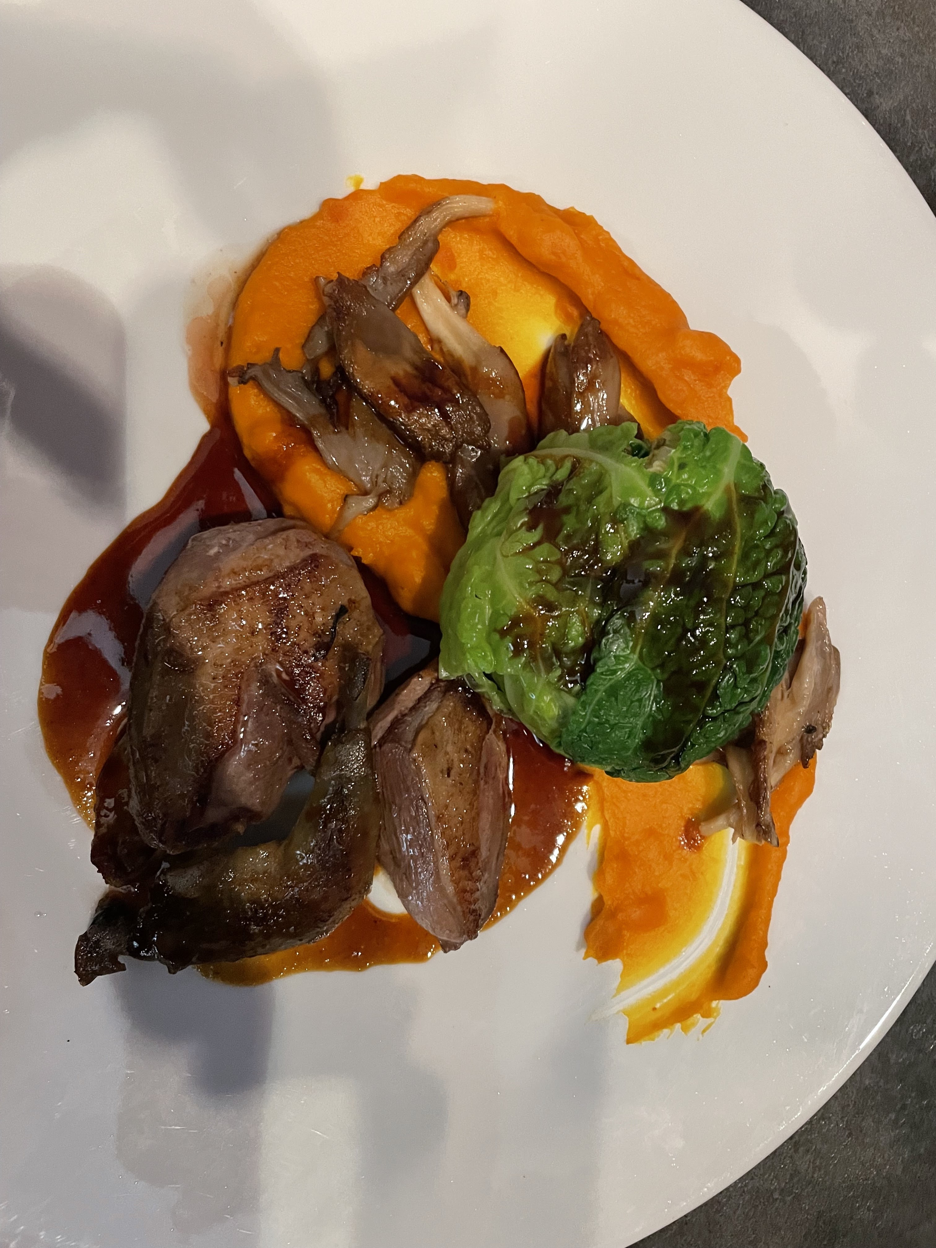 repas très décevant, Bar 3/4 non cuits Faut filet, pièce noble, à part que là il était gorgé de nerfs Burger simplement avec des tomates confites , nous recherchons encore le foie gras et effilés de canard. Très grande quantité déception