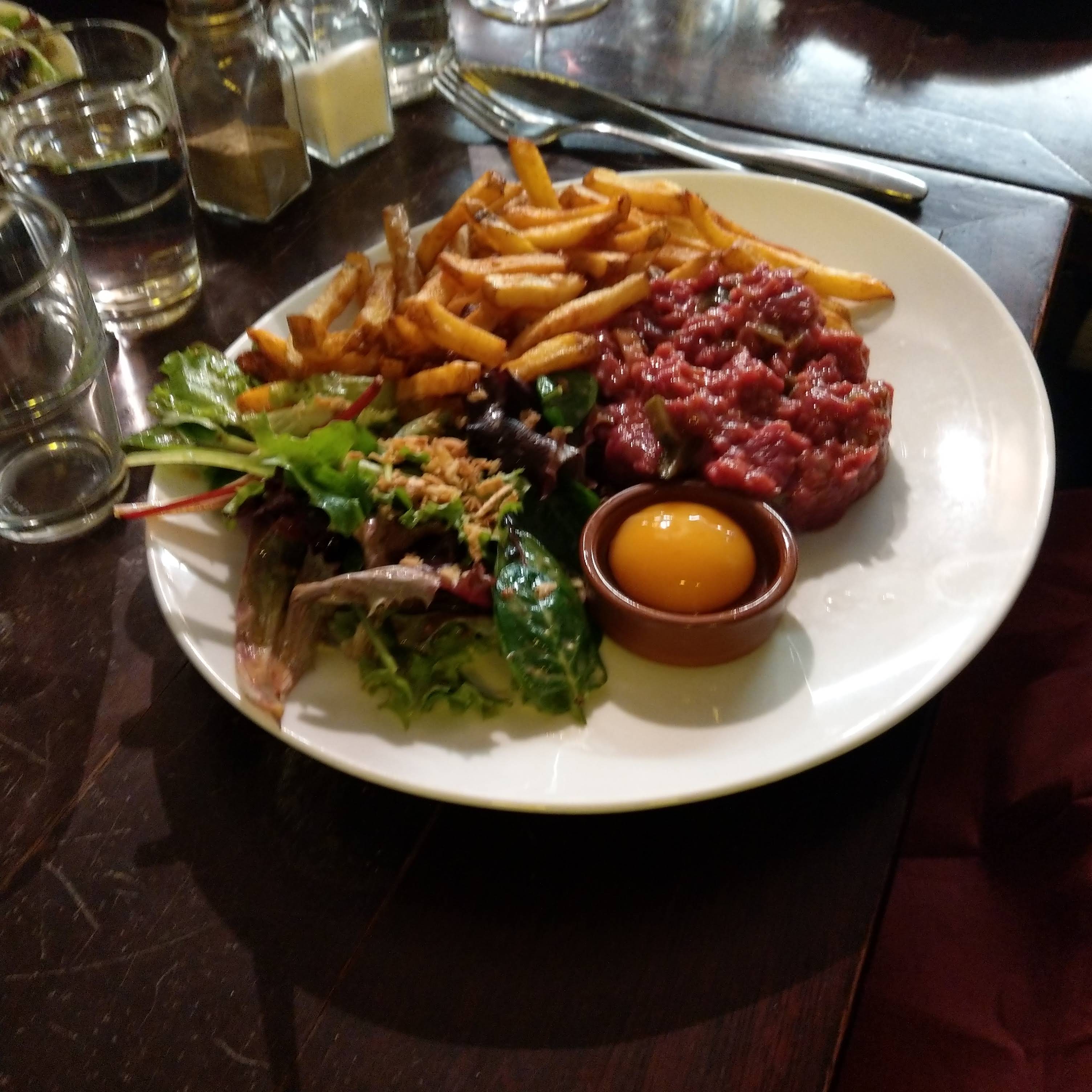 Brasserie simple et directe. Plats principalement à base de viande qui est de qualité et servie avec des frites maison et une bonne salade. Desserts très corrects et un service impeccable. Très adapté pour un déjeuner.