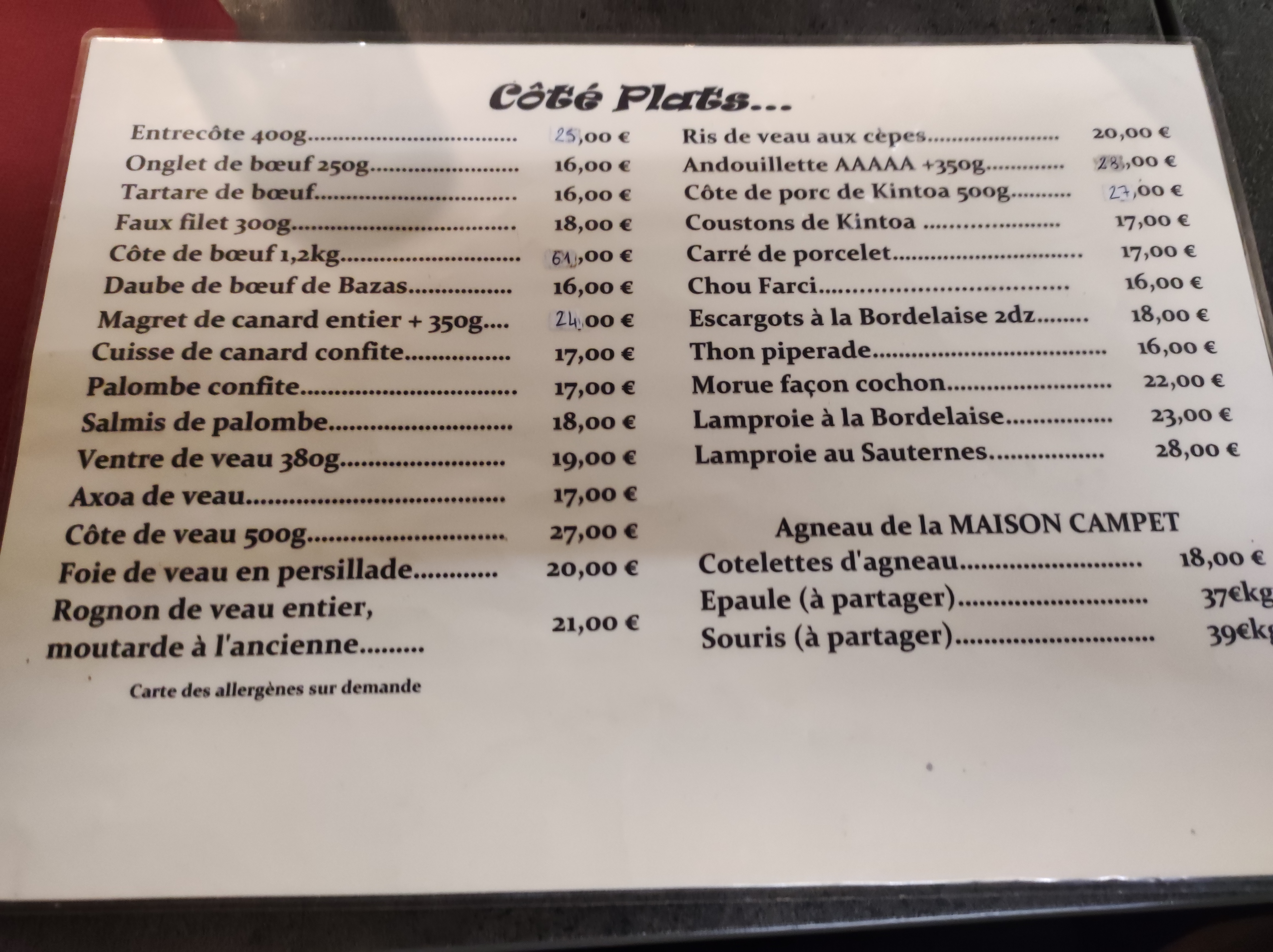 Plutôt fin et copieux, bon prix, accompagné d'une serveuse super sympa et aux petits soins.. On est parti avec cappuccino et digestif offert. Même sans ça c'est très bien. Rognon ris de veau camembert côté de bœuf... On reviendra