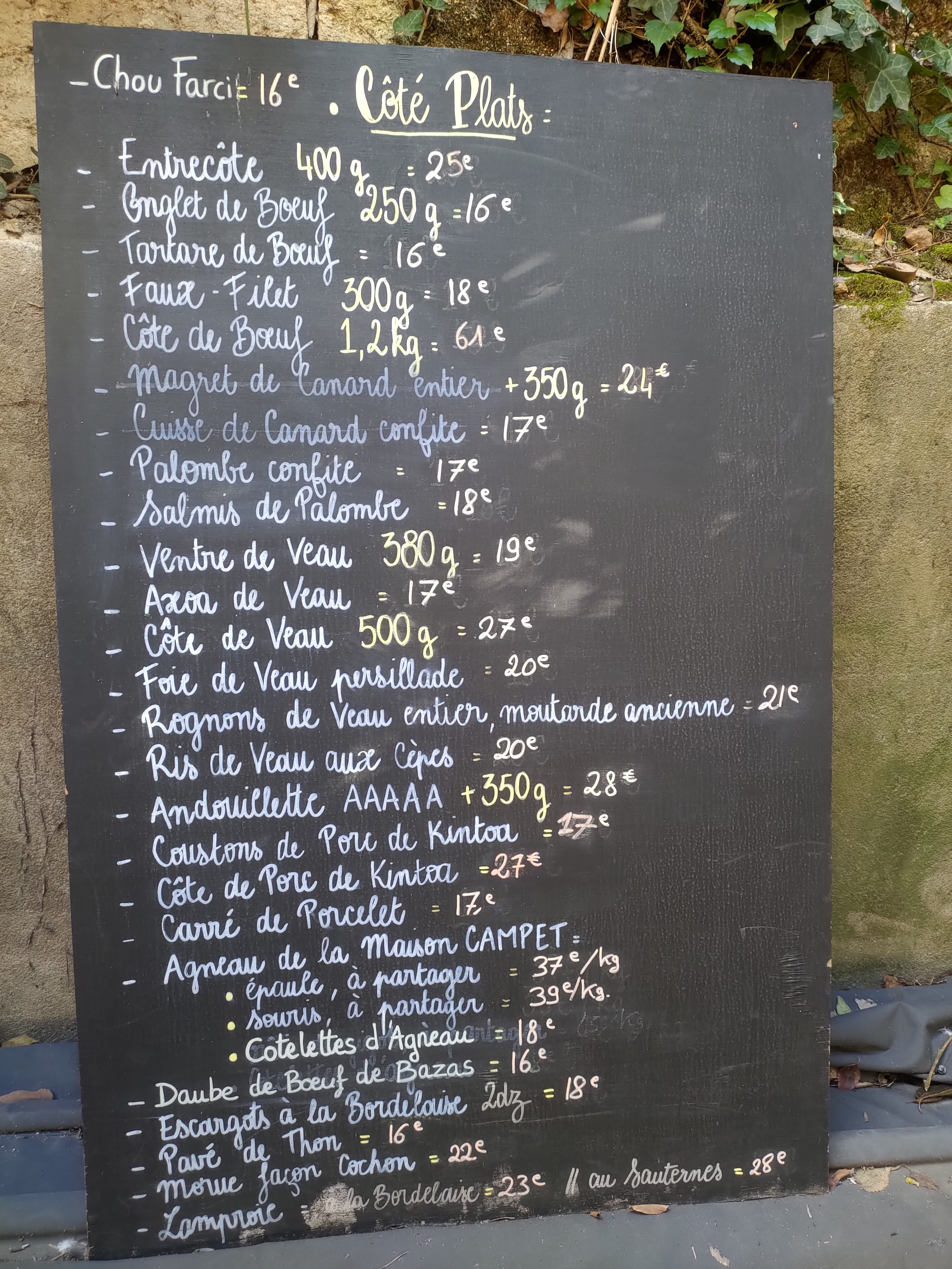 Bonjour, Le 30 août au soir. En retard sur ce commentaire car pas possible avant. Serveur et cuisinière agréable. En entrée, nous avons commandé un os à moelle très bon et un pied de porc pané.... Il est arrivé extrêmement froid au cœur, comme s'il était encore congelé ! Pas de serveur disponible pendant 5min, obligé d'amener moi même l'assiette en cuisine. 10 minutes plus tard le pied est cuit mais la cuisinière est obligée de se déplacer pour rechercher le serveur et malgré avoir sonné 3 fois à la sonnette. Du coup j'ai commencé à manger bien après ma compagne. Le pied de porc cuit était bon. En plat, nous avons commandé tous les deux des palombes confites qui étaient bonnes. Nous n'avons pas du tout aimé les frites en accompagnement. Pas de dessert. Sur les 3 fois où nous sommes venu au restaurant, 2 fois nous avons eu des problèmes (1ere viande trop cuite) et à aucun moment nous avons eu un geste commercial. Dommage. Lucas Mathieu