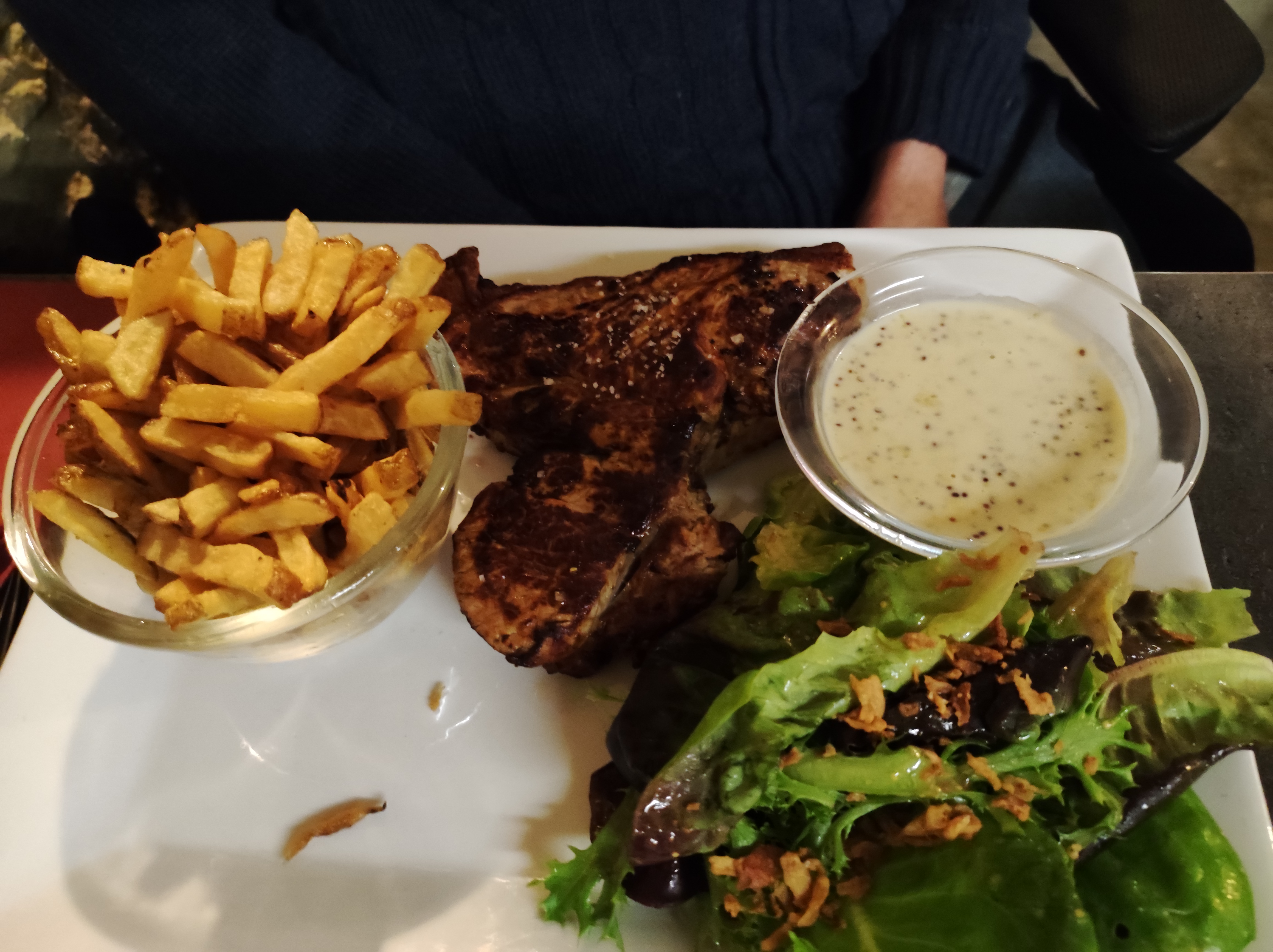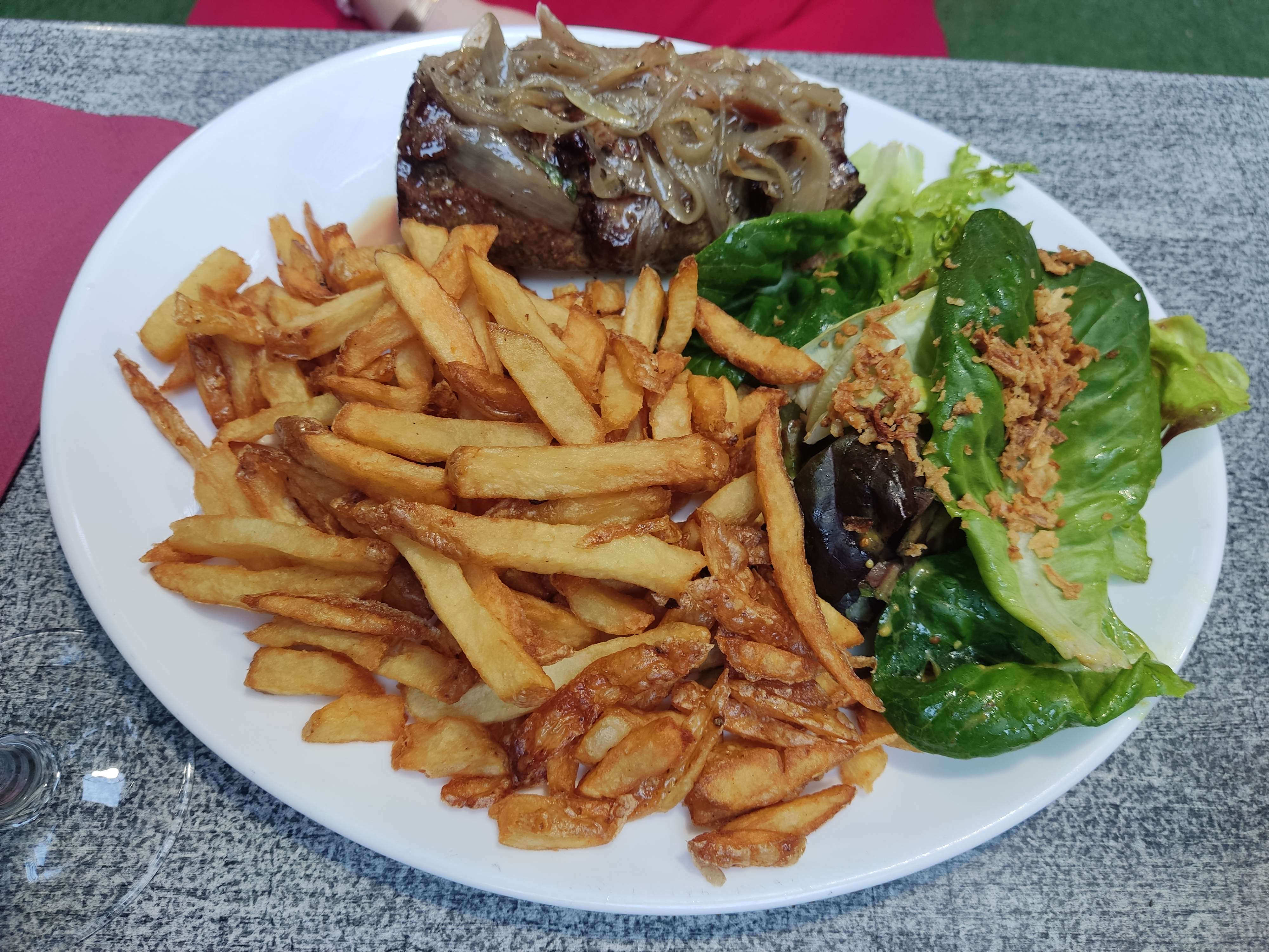 La bavette et les frites étaient à la hauteur de mes attentes pour un repas de midi. Service ok. Les toilettes pourraient être améliorées. Pourquoi cette manie de retirer la lunette du WC. Propreté satisfaisante. Les restaurateurs auraient vraiment intérêt à concentrer leurs efforts de propreté, d’équipement, de décoration et d’espace à ce local hautement indispensable et visité par tout un chacun.