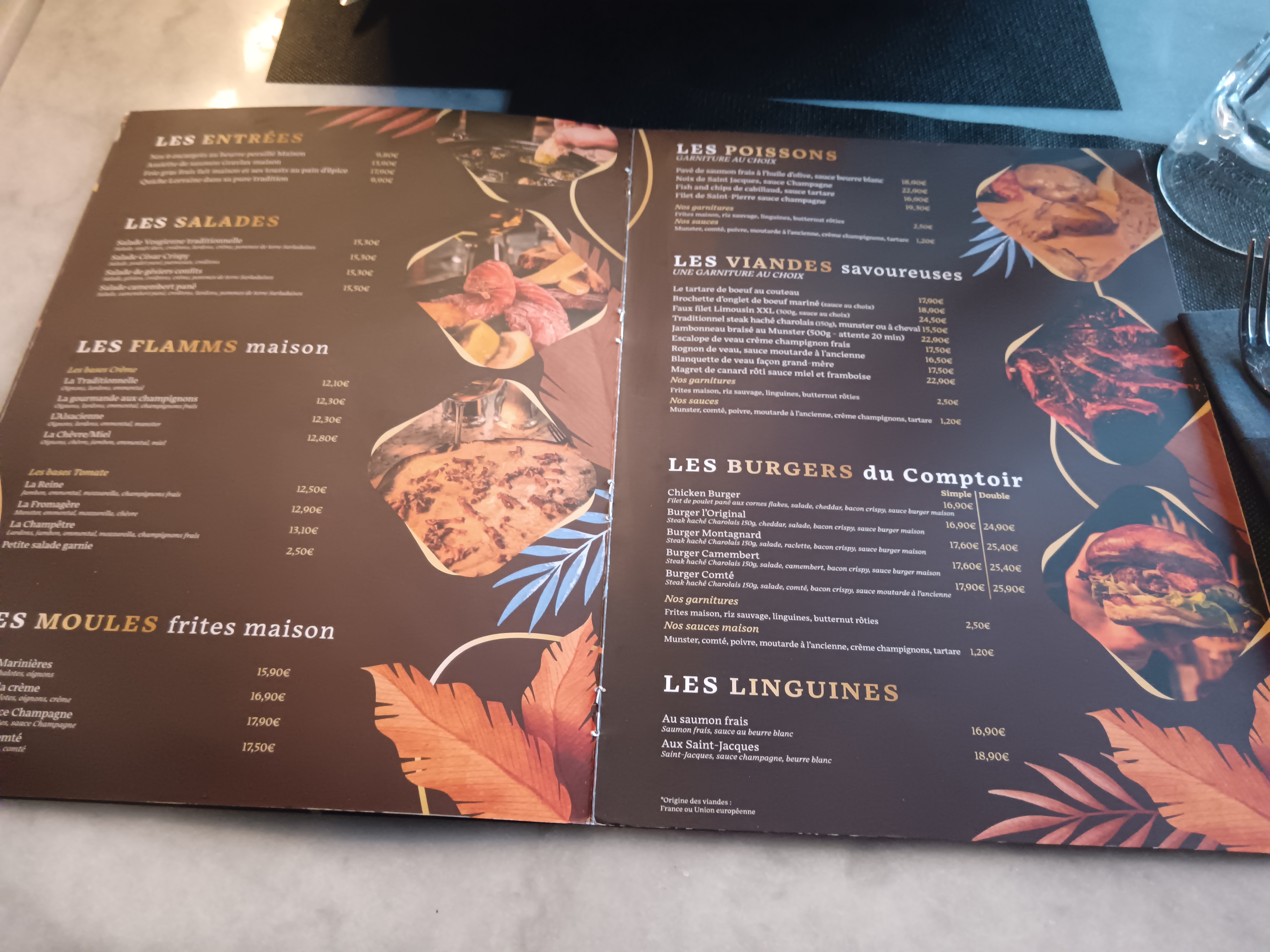 Je recommande 👍 Déco très sympa, malgré qu on soit proche porte entrée, il fait très bon . Mon fils n'a pas laissé une miette du burger montagnard, le jambonneau au munster confit à souhait. La boule de glace auw biscuit de Reims, une tuerie. Le patron très sympa, il y en a pour tout les goûts, Bonnee qualité des plats.