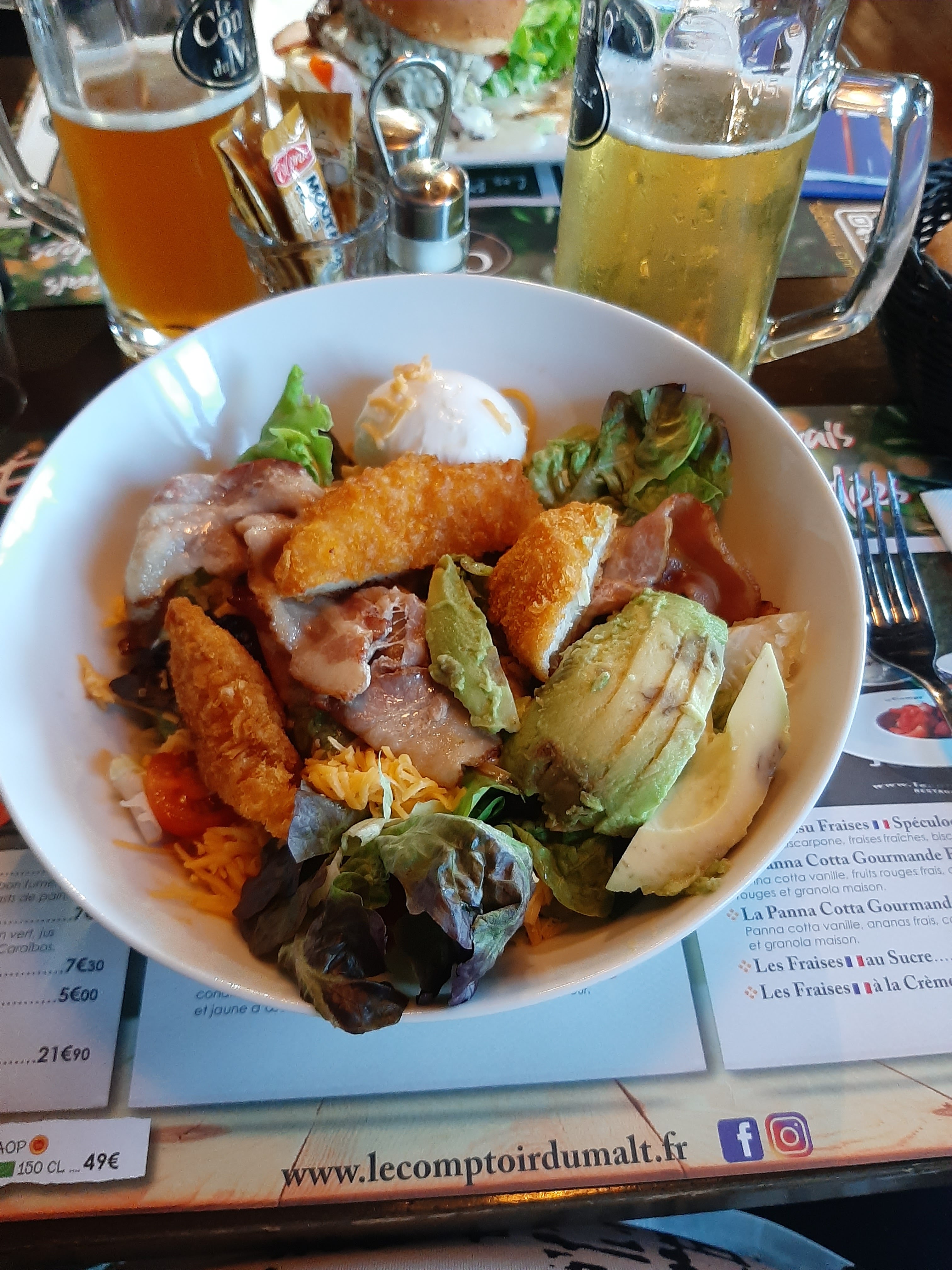 Super burger chti et salade avocat poulet croustillant au Compte du Malt à Amiens ce midi du 03.08.22. Un service au top. Gentillesse et courtoisie au RDV. Je ne peux que conseiller.