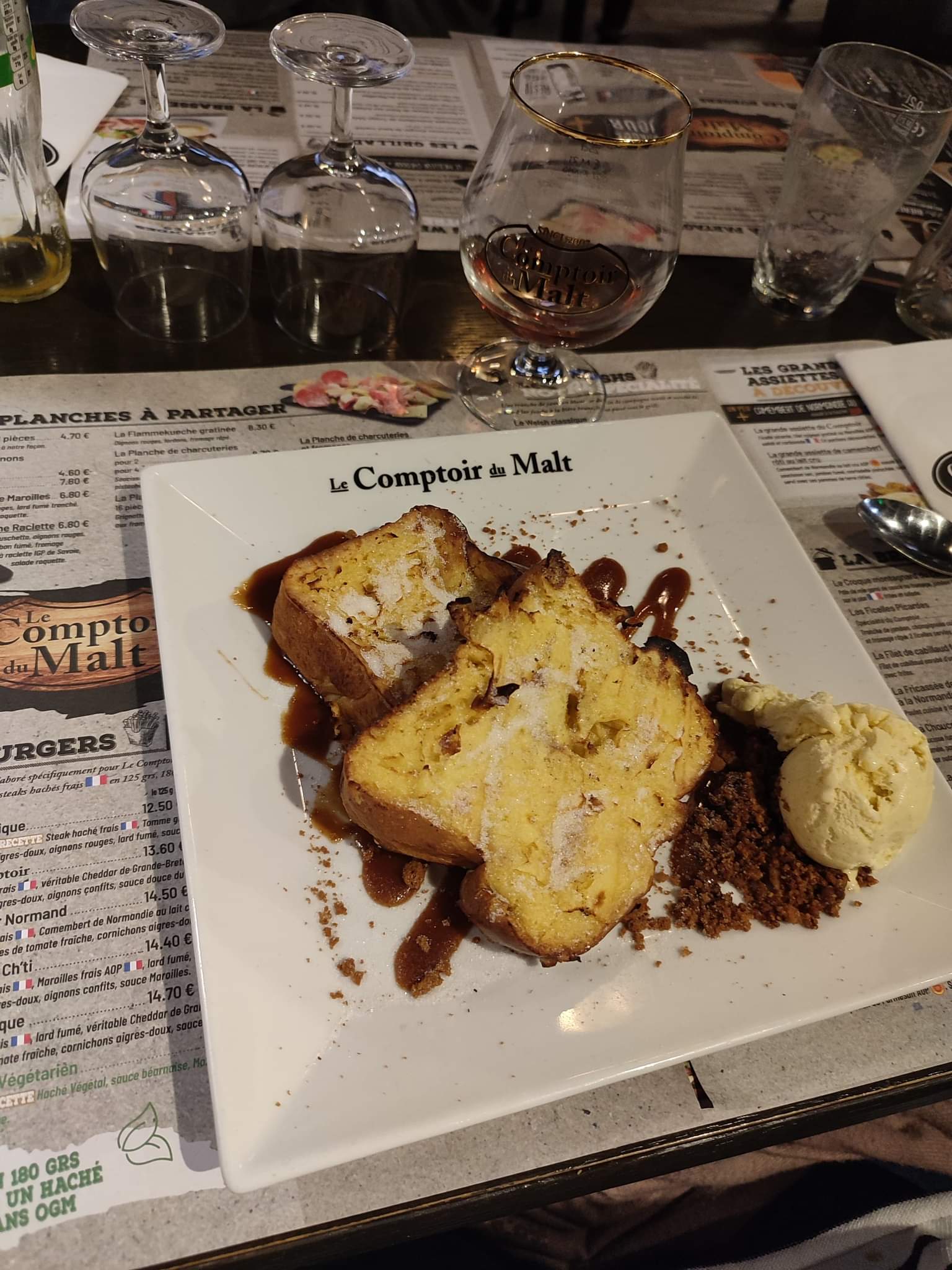 Tout était super ! Il y a pas mal de choix et tout donne envie. La planche à partager était top (à deux), les plats très bons et les desserts délicieux. On a opté pour les desserts glacés et on n'a pas regretté ! Les bières du comptoir nous ont également beaucoup plu. Le serveur qui s'est occupé de nous était très aimable en plus d'être efficace. Je recommande et je reviendrais !