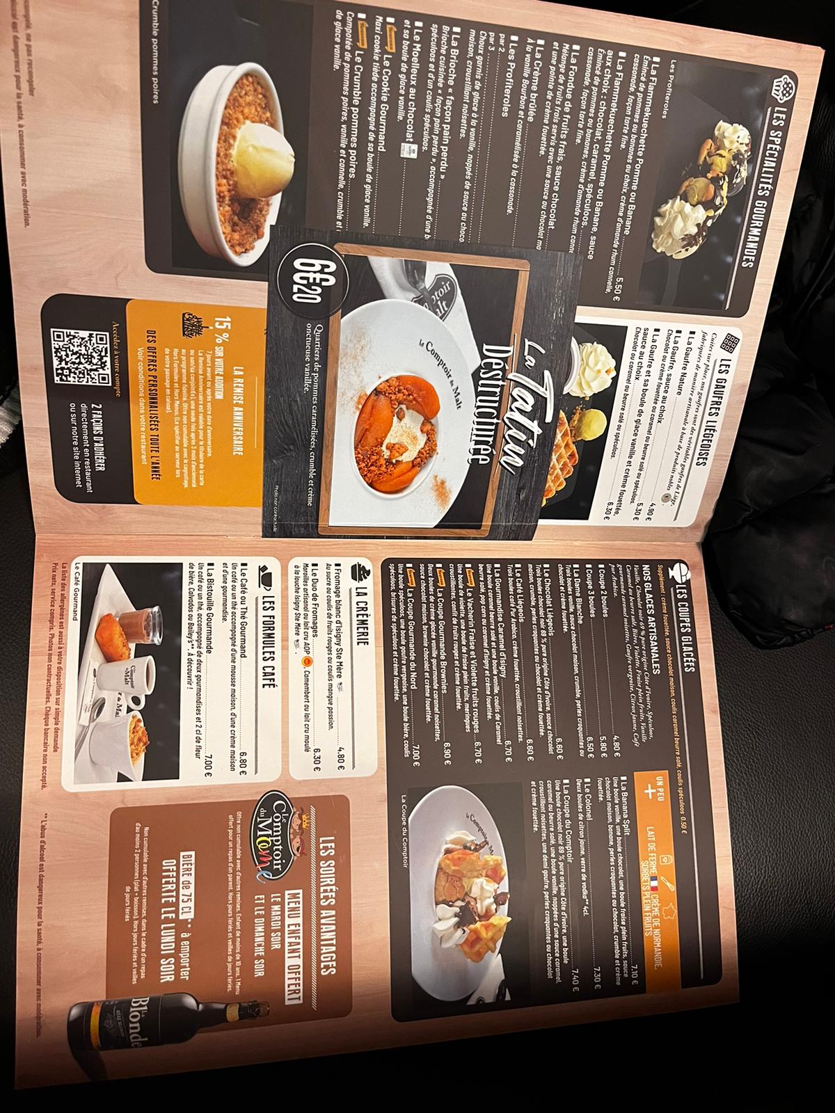 Très agréablement surprise par le lieu déjà! De bons petits fauteuils, dans un coin salon presque fermé de la pièce principale, idéal pour le calme d’un couple. La cuisine était aussi plus satisfaisante que ce que j’aurai cru, ne connaissant pas ce restaurant. 👍🏻 Et enfin le service, serveuse Mélanie, agréable, rapide et efficace ! Bravo au Comptoir du Malt ! Nous reviendrons 🙂