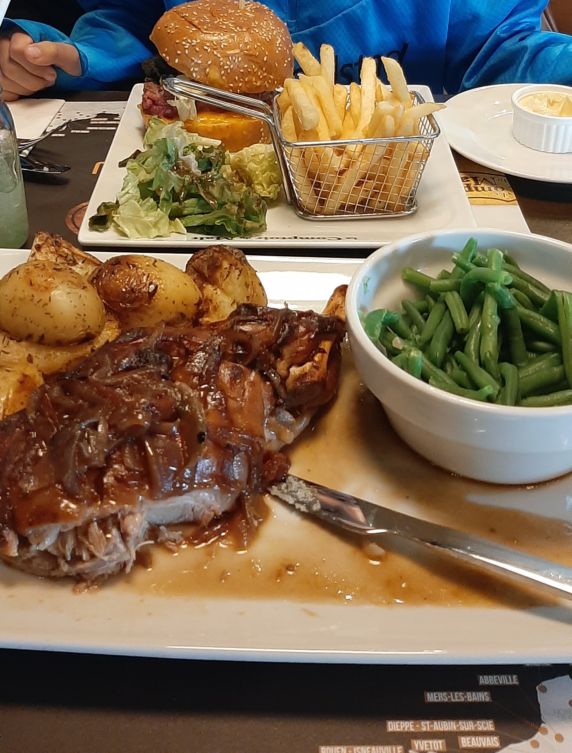 Repas très classique, pomme de terre trop cuite il n’y avait même plus de chaire à l’intérieur « serveuse informée mais indique que cela est normal » plus de ketchup après 14h car il l’on ranger, pas possible de commander une entrée car les cuisines ferme . (Fermeture du restaurant 15h30) attente de 45min pour avoir notre plat 😩 Ne recevez pas de client après 14h si c’est pour ne pas les servir.
