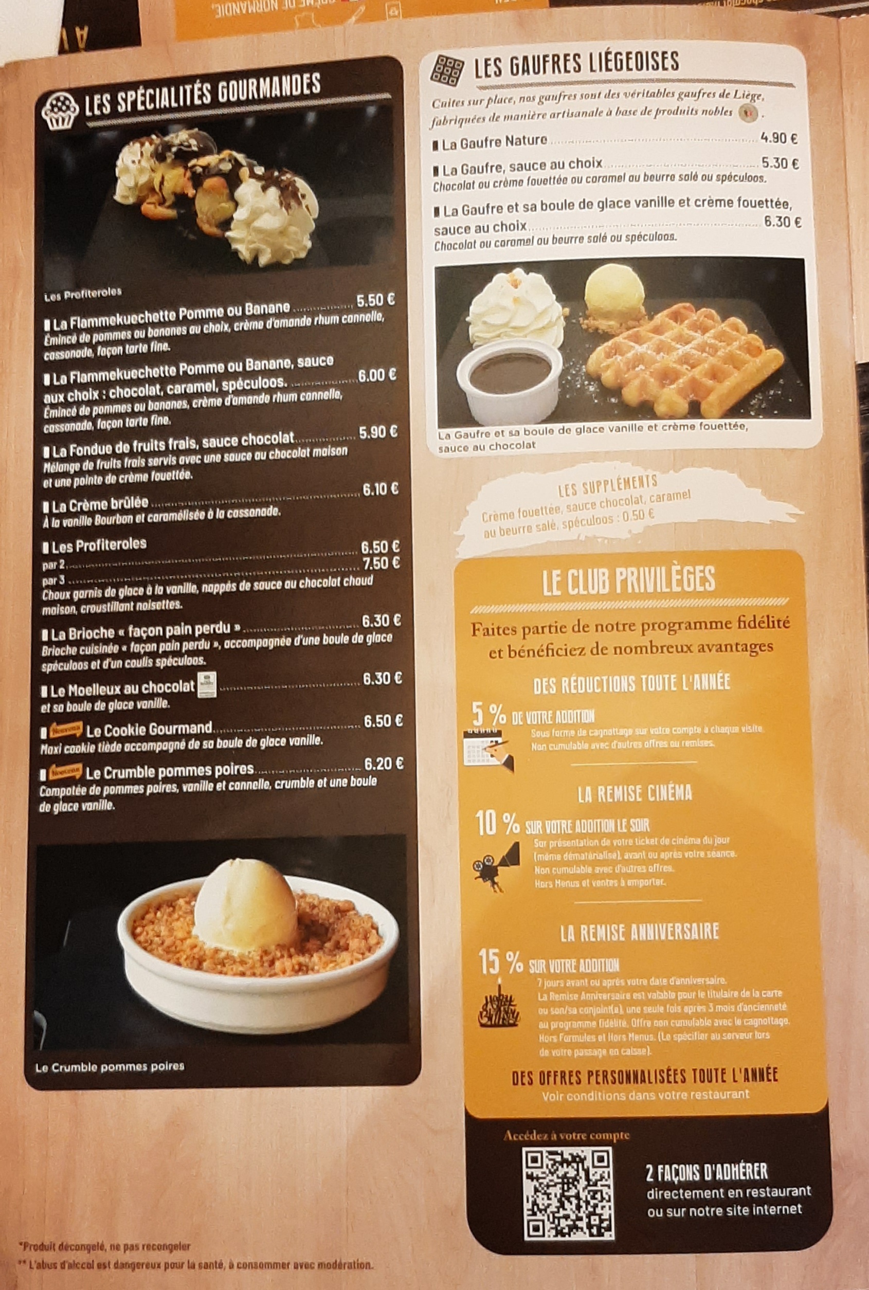 J’avais laissé un commentaire positif (qui est en bas), mais depuis ma dernière visite, tout a changé. Je n'avais pas mentionné l'odeur forte des toilettes afin de ne pas ternir le commentaire. Des serveurs courtois sont toujours appréciés, mais l'erreur s'est répétée... Nous avons demandé 2 coca zéro, mais on nous a apporté 1 coca normal et 1 coca zéro, nous n'avons pas fait de remarque. Ensuite, nous avons commandé une flam banane, mais nous avons reçu une flam pomme. Comme il se faisait tard, nous avons décidé de laisser tomber, bref... Les frites à volonté, mais pas à volonté... Nous avons commandé un plat de brasserie où il était indiqué que les fameuses frites étaient à volonté, mais nous avons été surpris de les voir sur la note, la raison ? car l'accompagnement du plat n'était pas des frittes ... J'avais également mentionné 'beaucoup d'offres', mais il n'y en a plus, d’après les sous-entendus de la serveuse (la direction si la direction ça) et les caisses sont vide… le cagnotage du club privilège ne s'applique plus si vous avez un 'menu enfant offert' et le bon de réduction ne s'applique pas non plus si vous avez un 'menu enfant offert', alors que il y a littéralement quelque semaine auparavant ils acceptaient ça ... Dégouté de cet expérience... ''Un bon restaurant avec beaucoup d'offre, une carte qui change souvent, la qualité des plat est bonne, mais la cuisson des frites parfois est pas top, les serveurs sont courtois et polis, mais ils prennent souvent beaucoup de temp a nous ramener ce qu'on demande ... malgré une salle pas charger...''