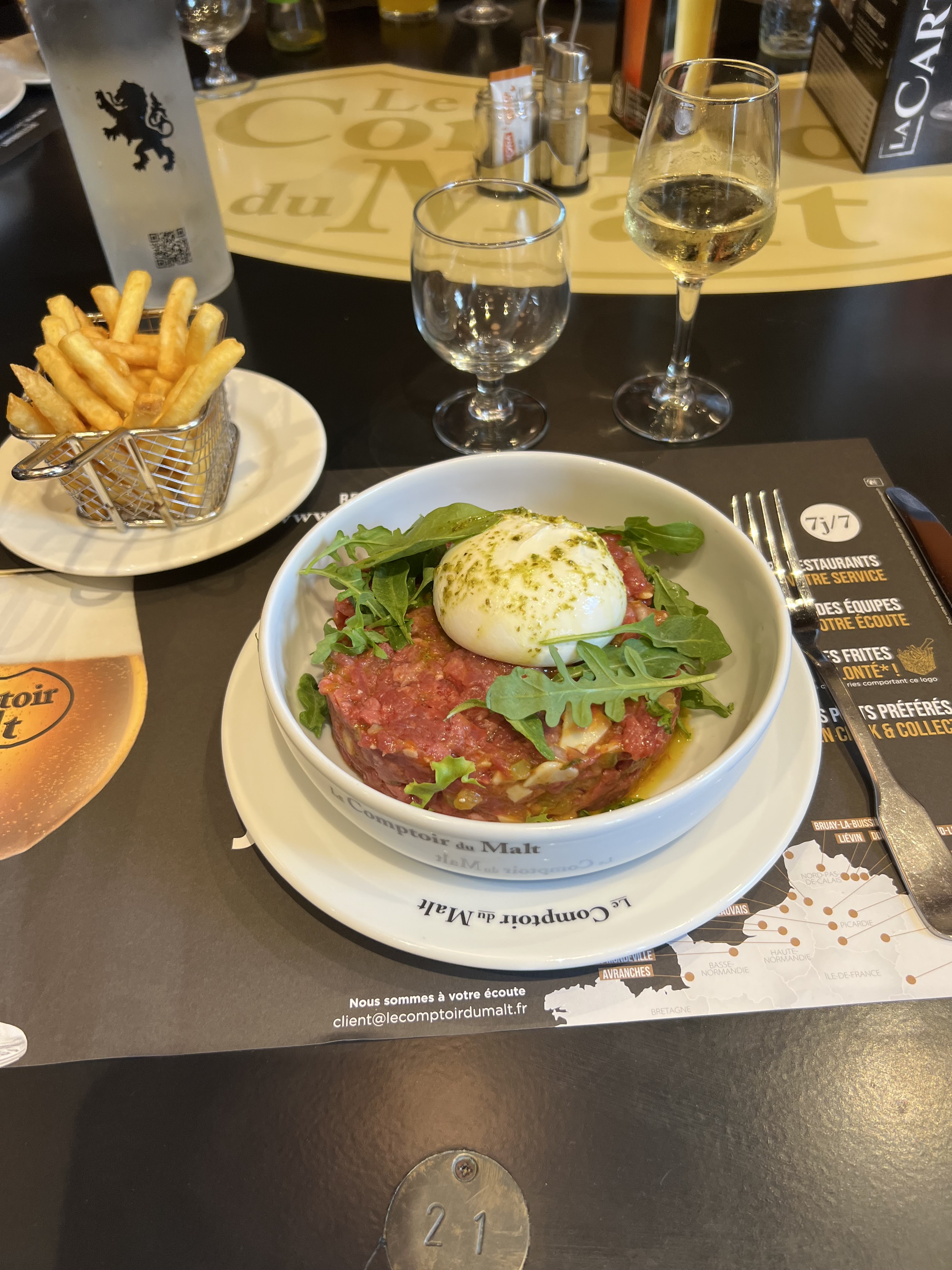 Un bon accueil, un tartare à l’italienne au top et copieux , le service très agréable. A refaire !