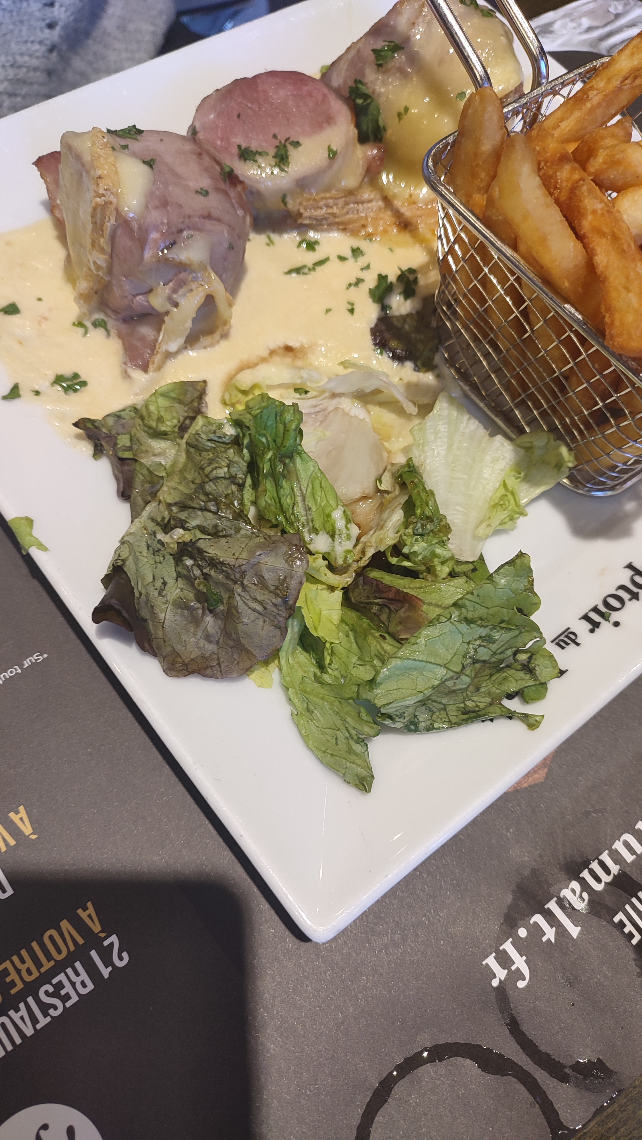 Repas très bon (comme souvent) mais on oublie ma frite… et on paye un supplément sauce 🙄… par contre on oublie pas de demander pour un dessert… business avant tout ! dommage
