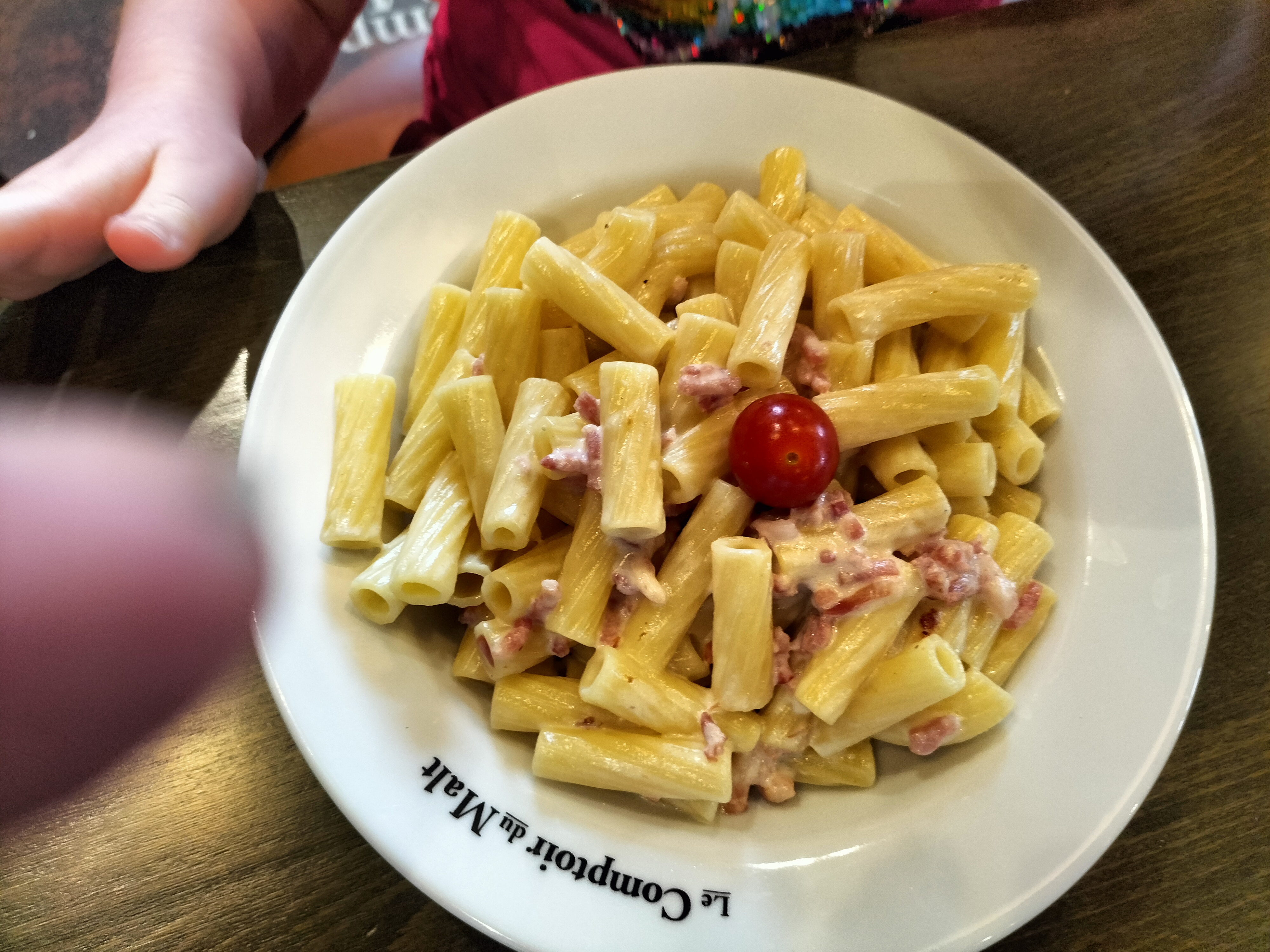 Repas du dimanche soir avec un groupe de 11 personnes Nous avons pu constater un manque de personnels. Service long. Assiettes froide et cuissons non respectés . Quantités pâtes carbo correspond à un menu enfant. Le personnel bien que débordé est toujours restait agréable.