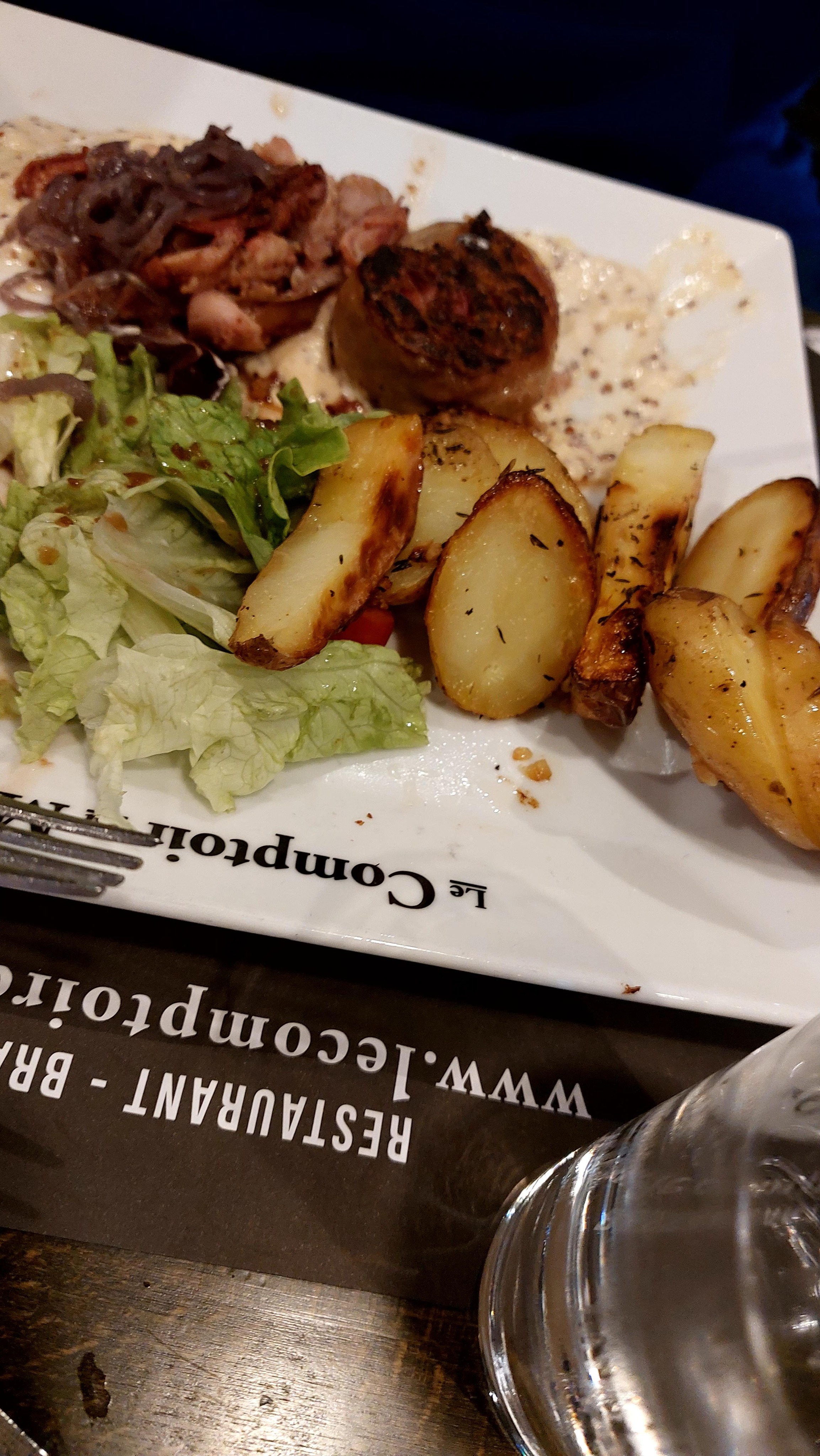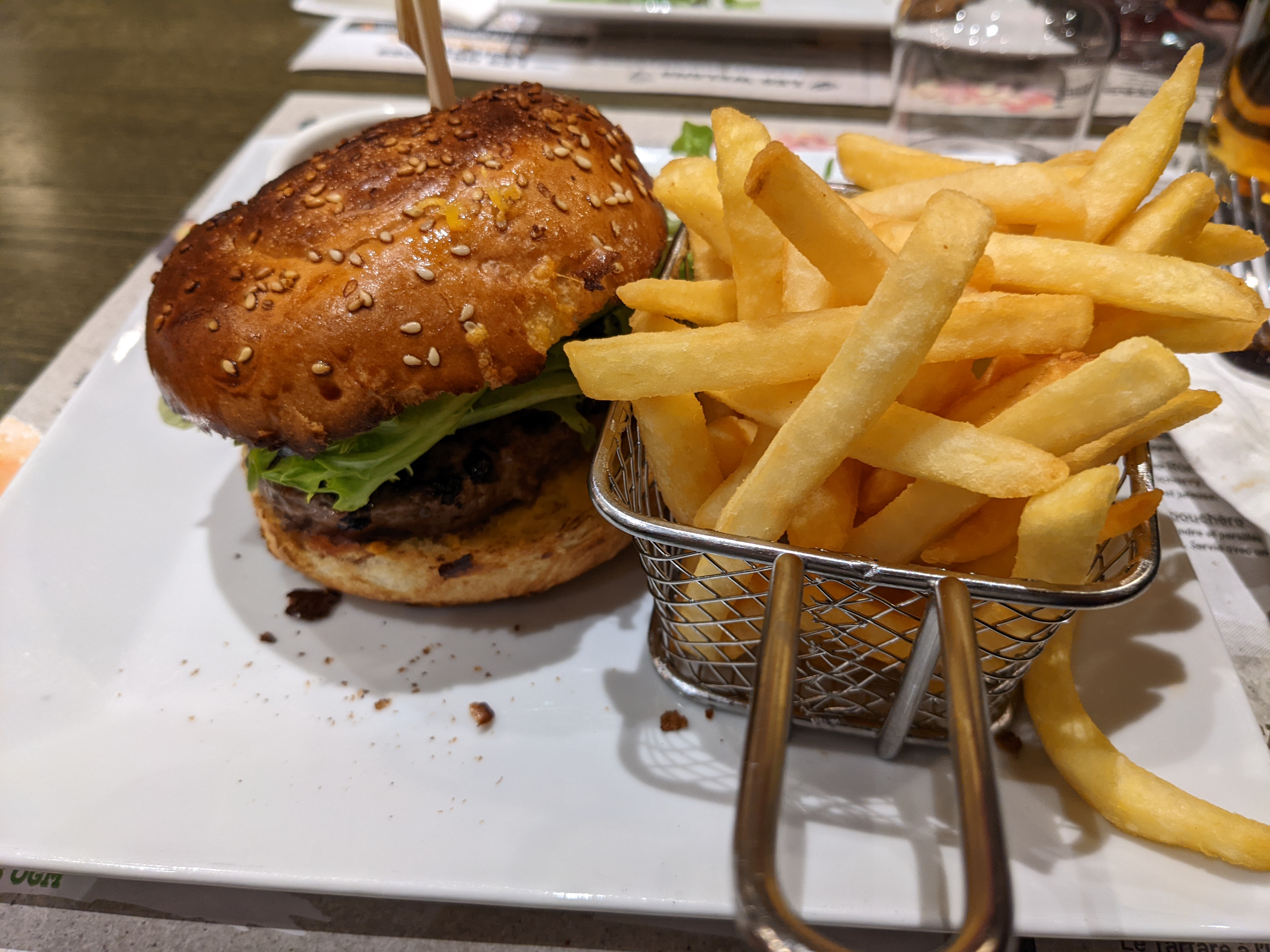 Le repas était bon, mais ce qui est très surprenant, c'est le montant de l'addition au regard de la taille des portions servies. Demi-steack dans le hamburger. L'andouillette est coupée pour éviter de voir que c'est une demie. Portion de frites de dînette.