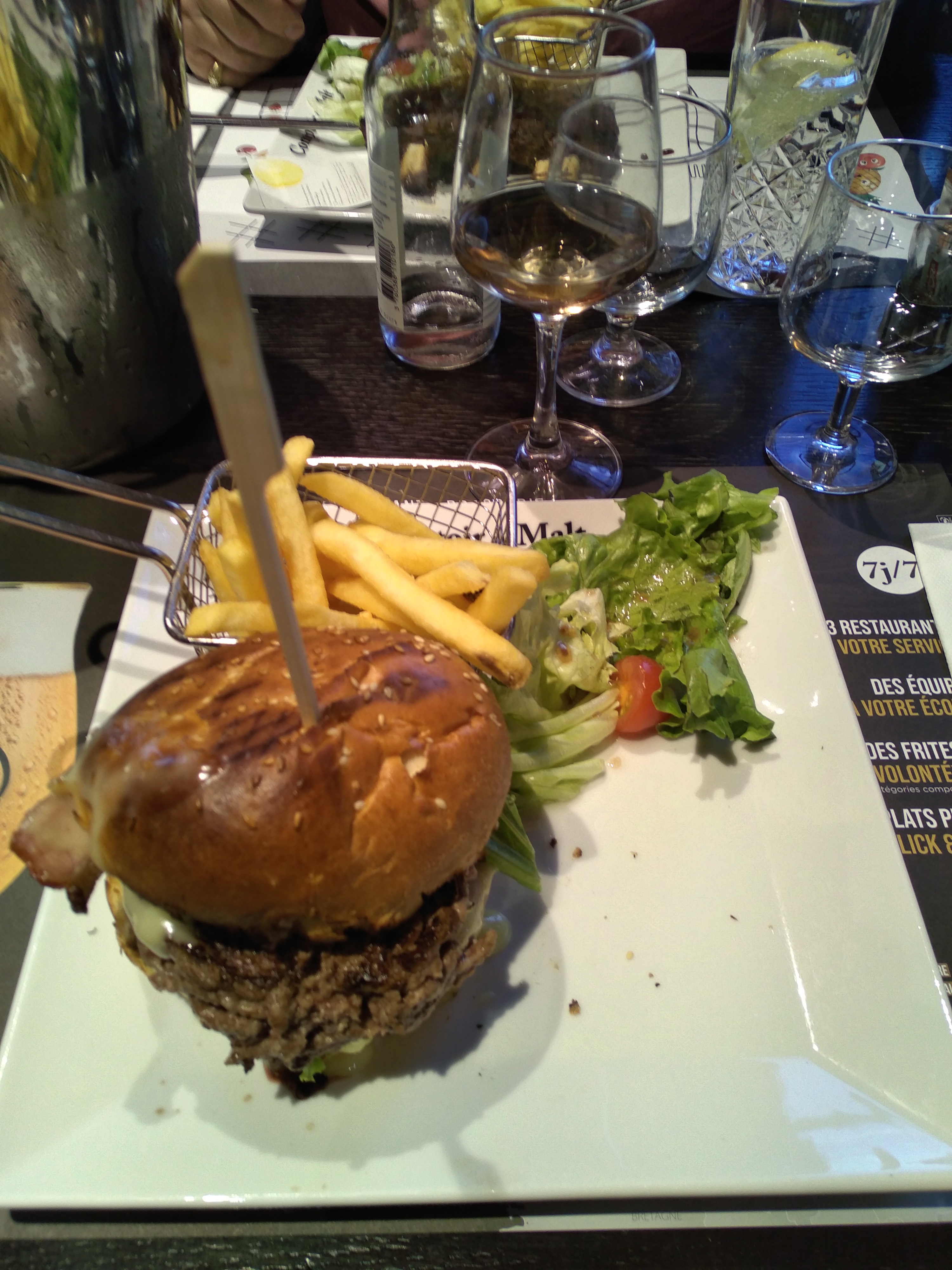 Beaucoup de choix, on se pert légèrement surtout pour la 1ère dans ce restaurant. Bon accueil des serveurs. Remarque sur le service : ▪︎ Le serveur ne demande pas si on veut boire quelques chose durant le repas, c'est arrivé pour nôtre table et d'autres autour de nous. => c'est nous qui avons donc demandé de l'eau. ▪︎ Les Sauces sont un supplément de 0,30€ mais c'est mieux de demander si on le veut avec nos accompagnements tels que les frites ou pdt. Le repas a été moyen. Les cocktails à 4,90€ sont bon. La planche en entrée était bonne. Le plat (camembert) était bon. En revanche le croque était sec et pas forcément pratique à couper sous cette présentation. Pour l'accompagnement j'ai effectué un changement mais on m'a apporté les deux donc il y a du gâchis. J'ai déjà mangé dans d'autres chaînes restaurants comme Au Bureau, j'ai pu donc comparé. À voir peut-être une seconde fois un jour pour comparé : Mais avec ce seul avis, je ne le recommande pas.