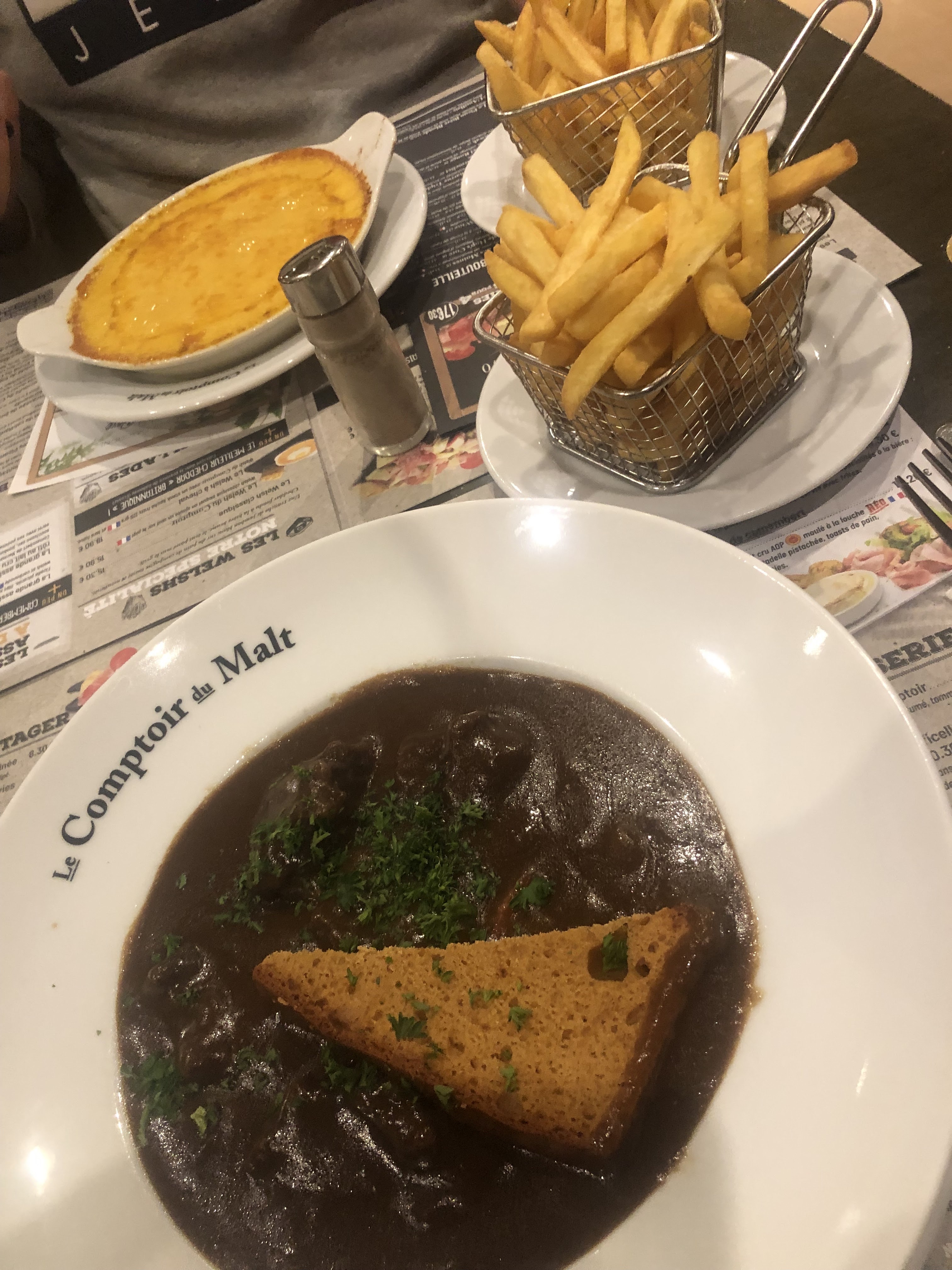 Le comptoir du malte est un restaurant très accueillant, le personnel y est très chaland un bonjour de chaque serveur était de mise. Le personnel y est aussi très disponible. Pour cette fois nous avons choisi les plats de brasserie pour ma part une carbonade Flamande très fidèle à la recette et aux ingrédients de qualité d’une brasserie traditionnelle au niveau de la quantité c’est juste assez pour un bon repas ! Le prix est de 15.50€ pour une carbonade ce qui est plus que raisonnable au vu de la qualité. Ceci est un second essai dans ce restaurant et je le recommande vraiment !