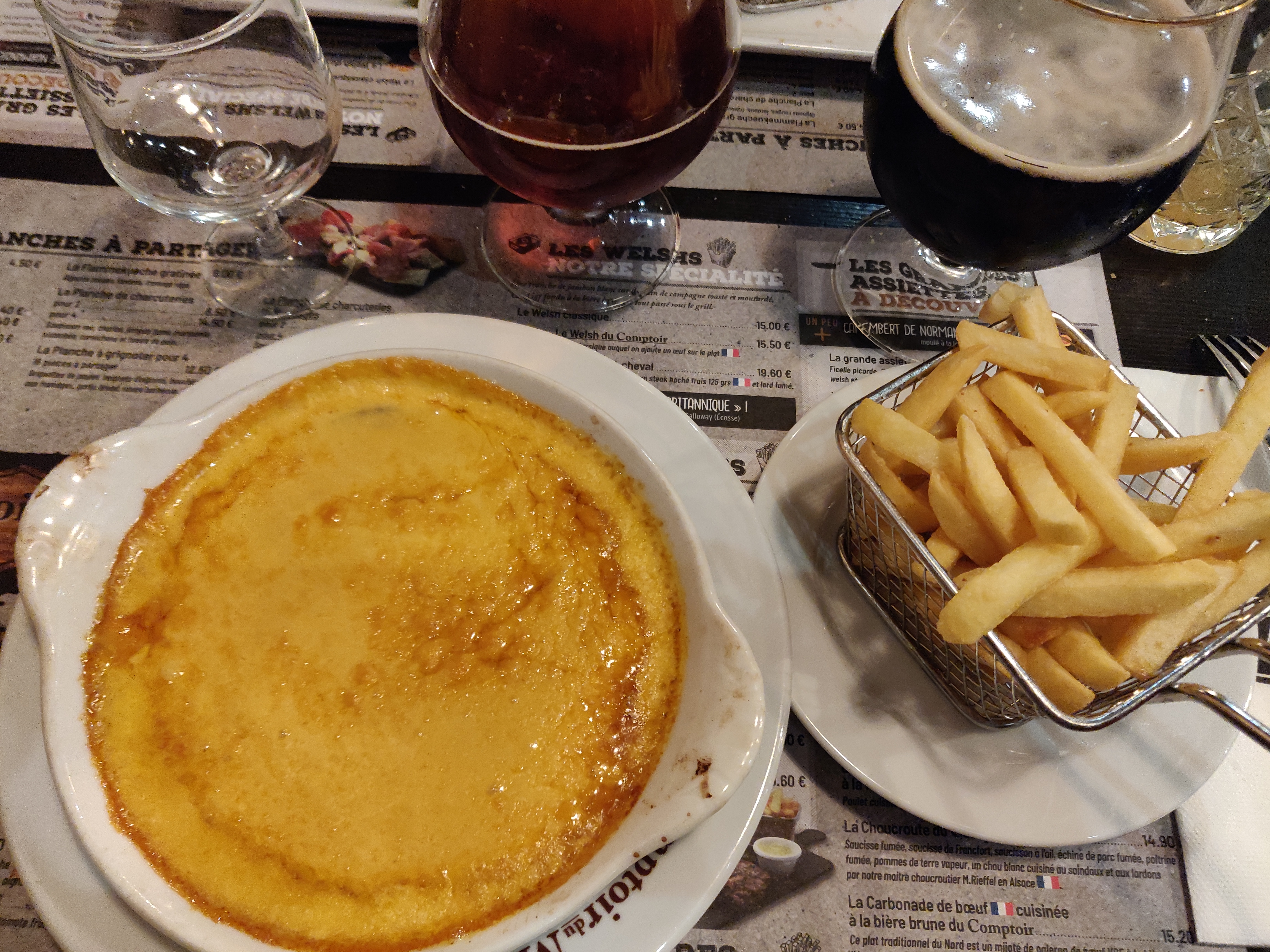 assistant au Salon de la Voyance organisé à Carlepont par la sympathique Radio Puisaleine, nous allâmes ripailler le soir dans cet établissement brassicole en compagnie de l'équipe de la Station, dont l'infatigable chroniqueur en matière d'artistes et de sorcières, Rudy. La pitance est correcte, nous goutâmes à la tartine croque-Madame du Comptoir et eûmes un délicieux caramel liégeois. Nous attestons du zèle véloce du personnel qui, tout en servant la clientèle, débarrasse, nettoie et réassort les tables à une cadence stakhanoviste Nos félicitations à Caroline qui cavala tout au long du dîner pour s'occuper de nos commensaux radiophoniques et de nous-même avec diligence et bonne humeur.