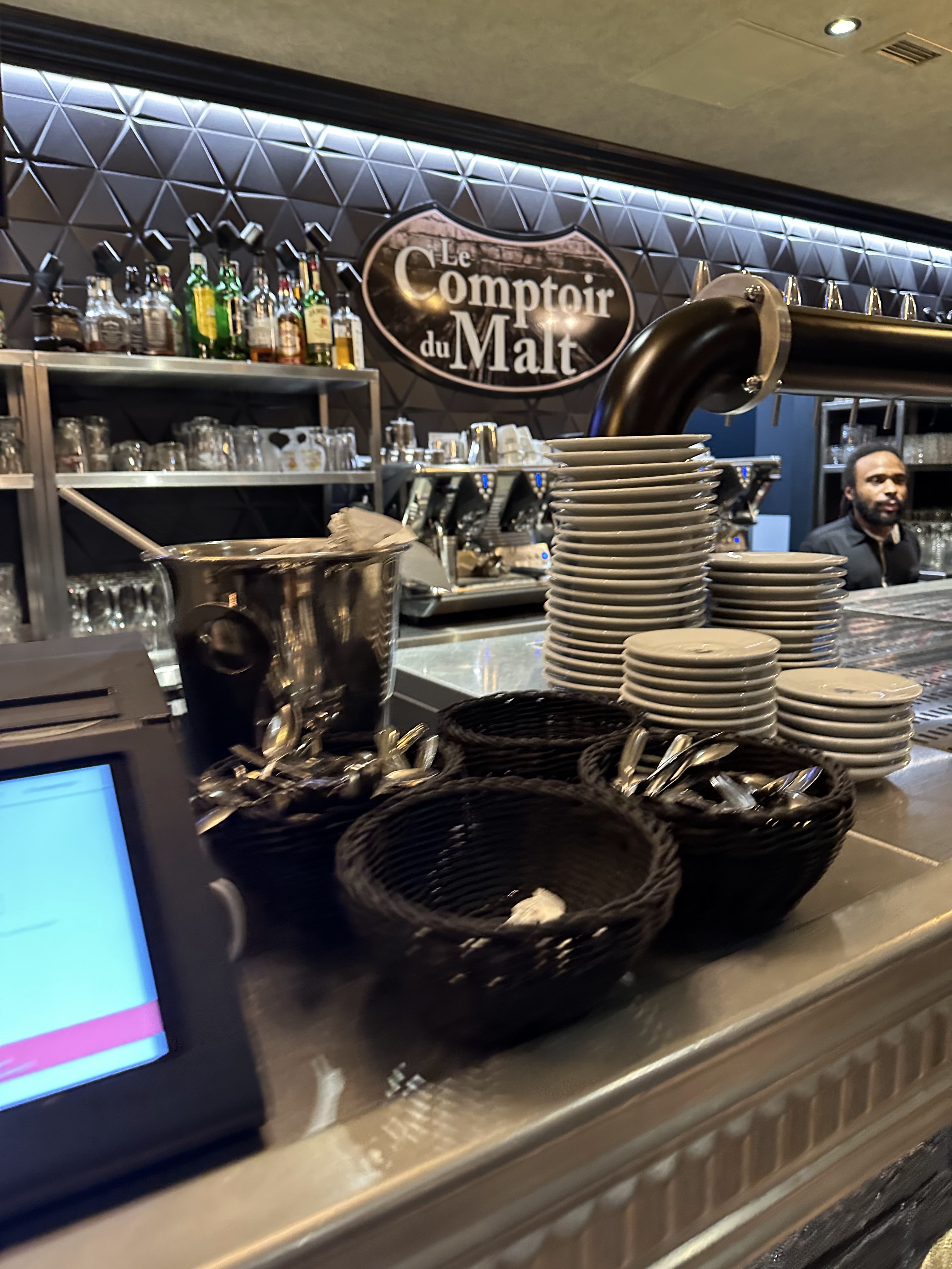 Accueil très chaleureuse nous avons pas trop attendu pour avoir une place nous sommes venus en semaine le soir au niveau du deuxième service. Le cadre est plutôt sympathique typique des comptoir du malt. La prise de commande a été un petit peu longue mais cela reste encore raisonnable. Comme toujours la bière et bonne et le repas dans l'ensemble était parfait. Petite erreur lors du dessert mais cela ça s'est arrangé et ils nous ont offert en plus le café. Dans l'ensemble très satisfait du restaurant je vous le recommande fortement compter en moyenne entre 25 et 35 € par personne apéro et dessert inclus.