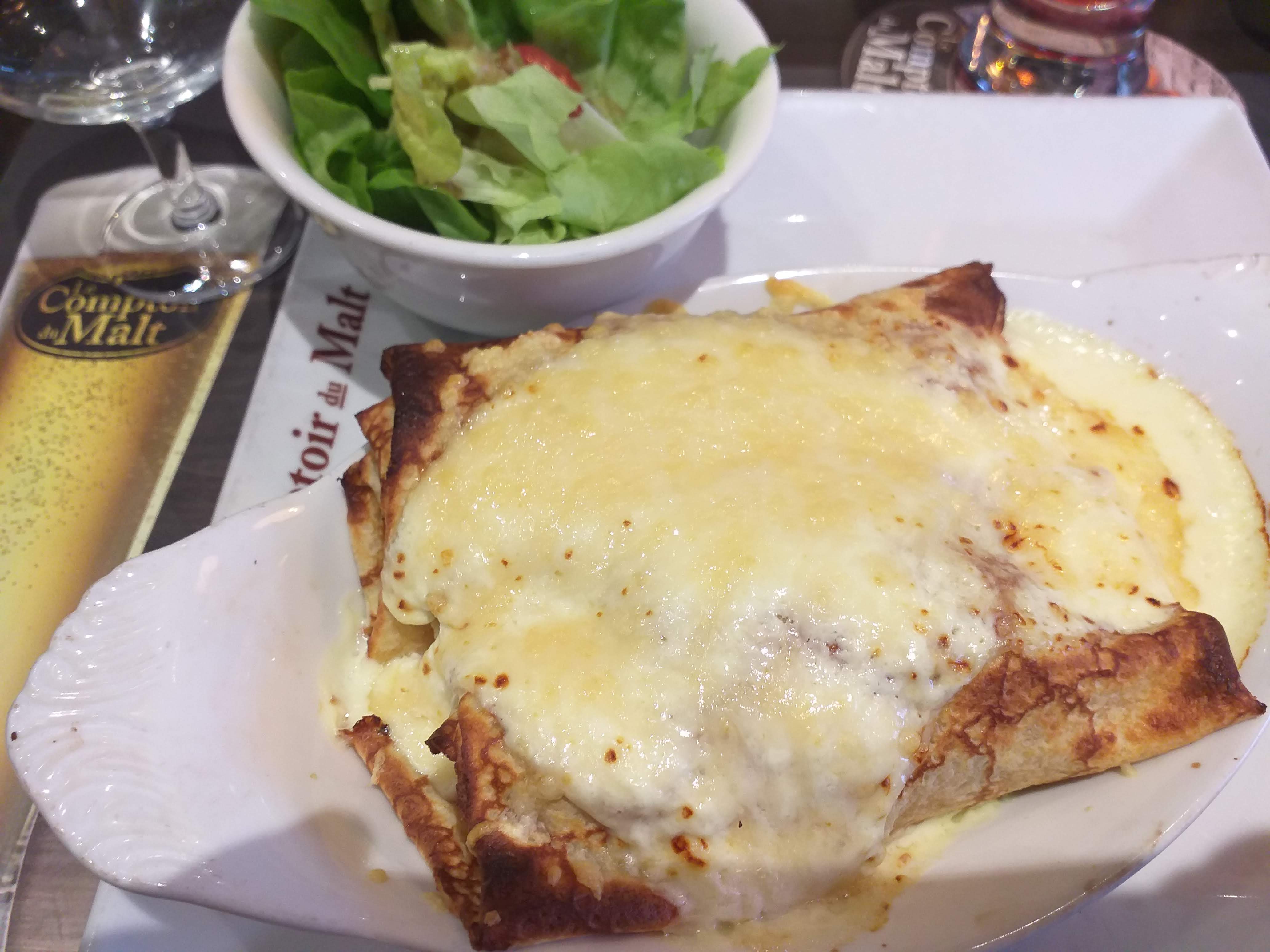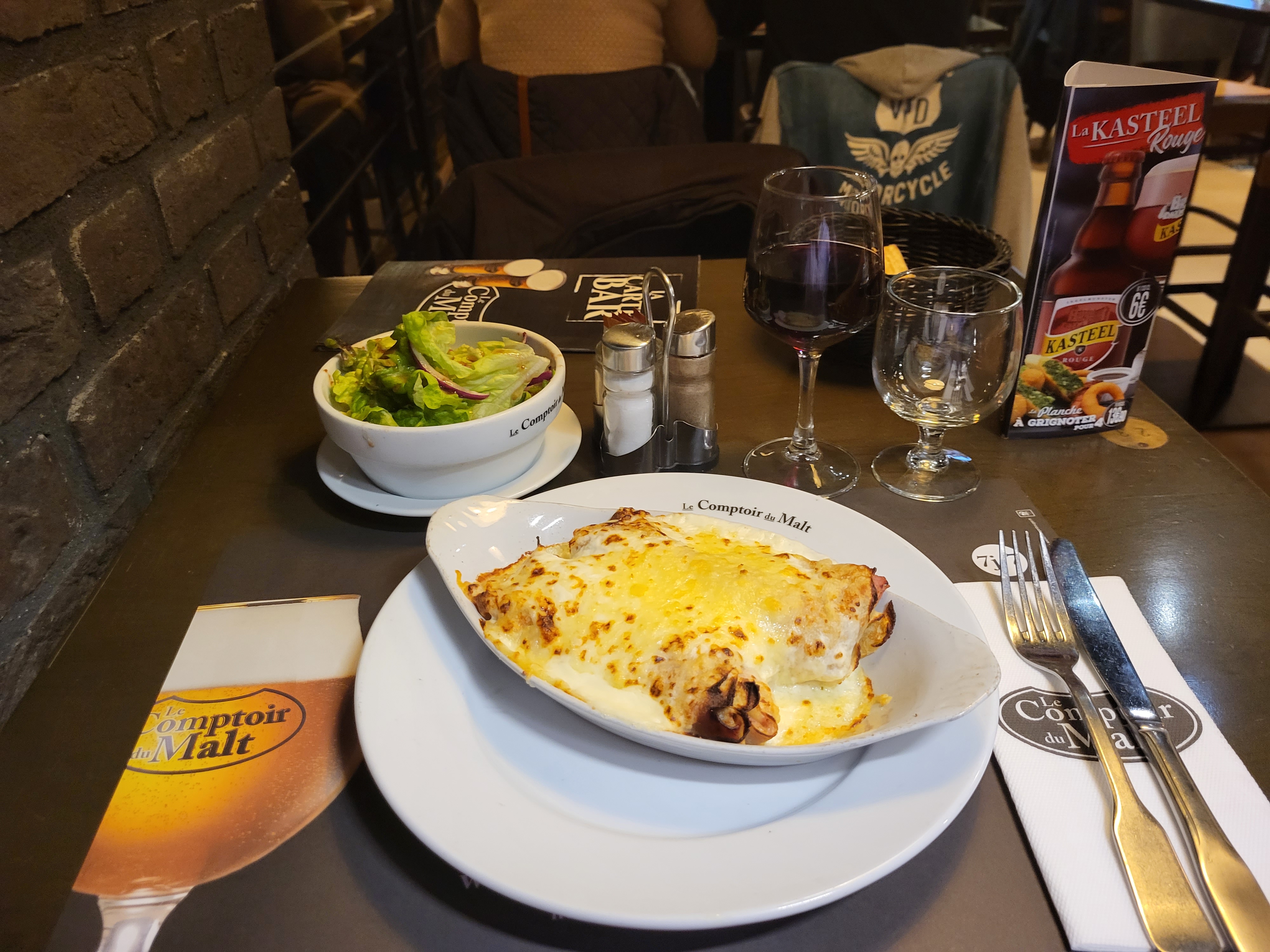 Très bon rapport qualité prix, avec des plats emblématiques du nord de la France : welsch (photo), carbonnade, potjevleesch, etc.