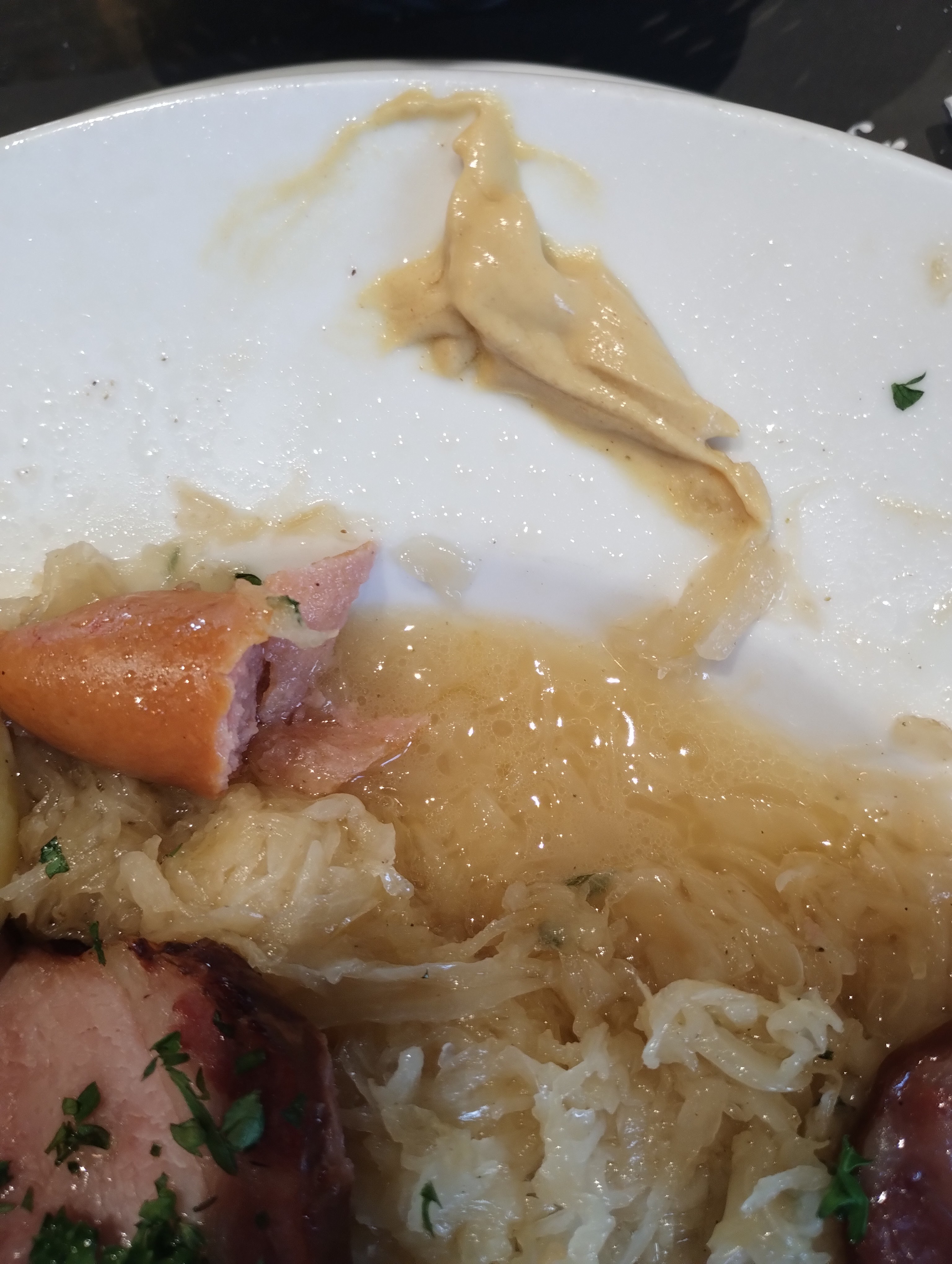 Aujourd'hui, après une semaine éprouvante, pour ne pas cuisiner Comptoir Amiens Nord Déception : Faux Filet Angus qui aurait dû être extra tendre : une viande dur Planche à partager garlic bread pour 2 : pain enduit d'un espèce de beurre persillé mais l'ail s'était évaporé, INEXISTANT. pour moi choucroute, décevante, elle avait dû être réchauffé au micro-ondes la knack et viande desséchée BREF ,NOUS N'IRONS PLUS