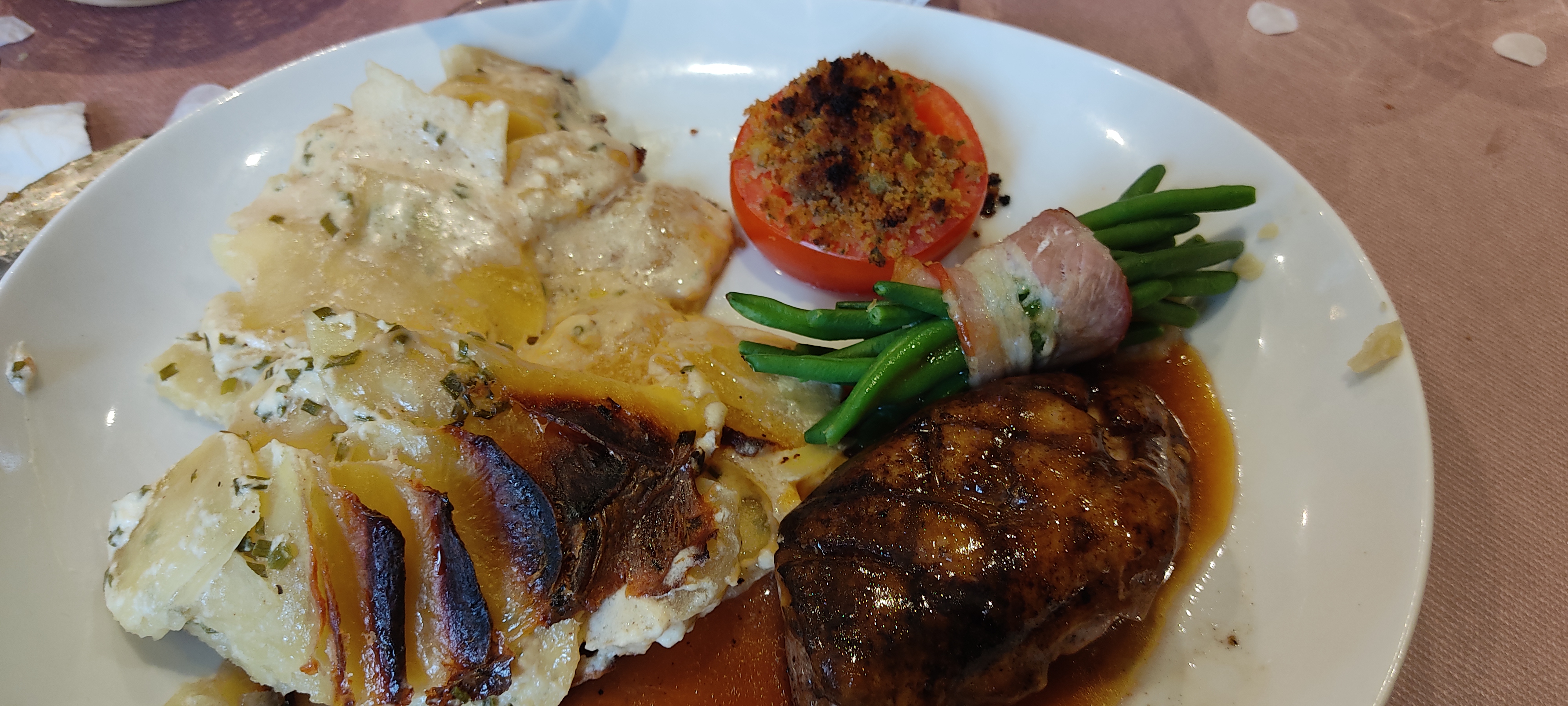 Super restaurant le repas était copieux et très bon en prime superbe bougie d'anniversaire pour mon chéri. Personnel très accueillant. A refaire et à recommander.