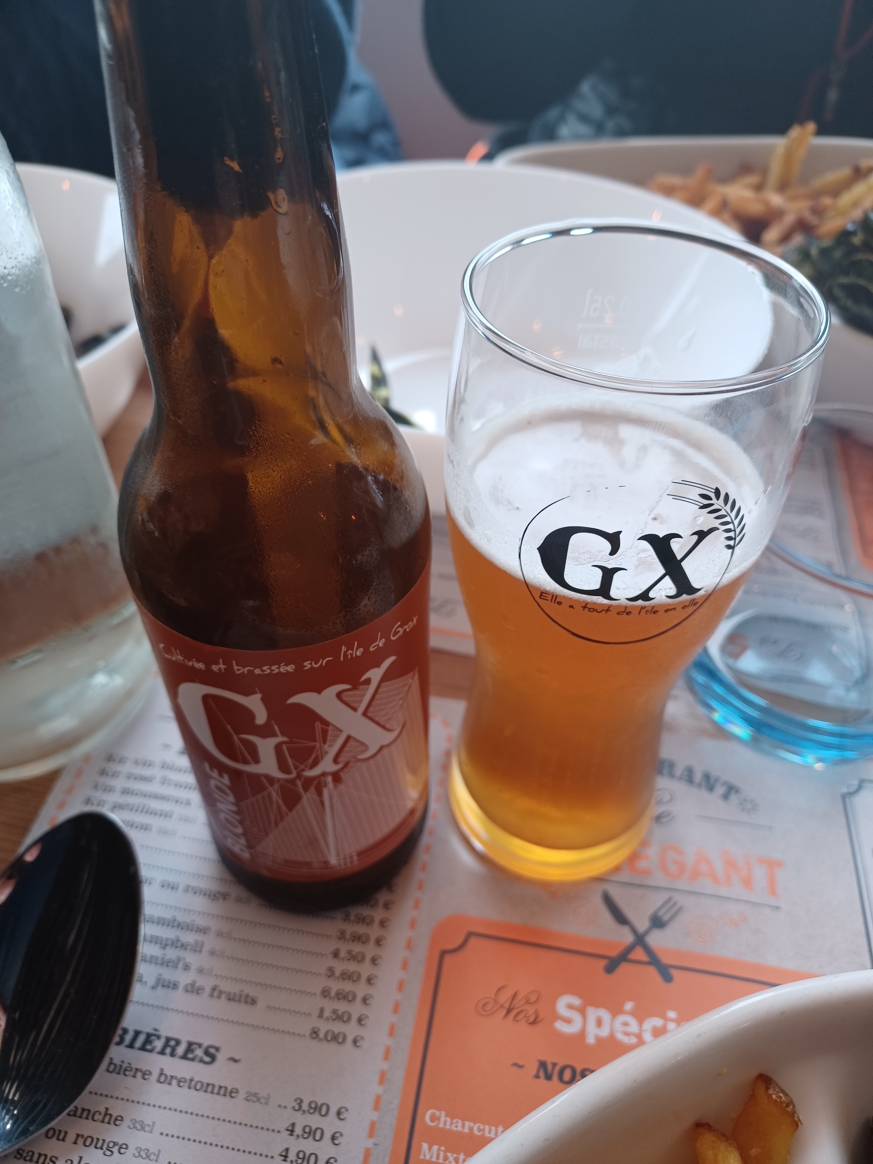 Un lundi midi de décembre, face à l'océan et à l'île de Groix. Déjeuner copieux avec des produits de qualités et un prix tout à fait raisonnable. Des moules frites, c'est cliché, mais c'est bon, accompagnées de bières produites à Groix et terminer par une crêpe au caramel beurre salé, on sort du restaurant satisfait d'avoir fait le bon choix.