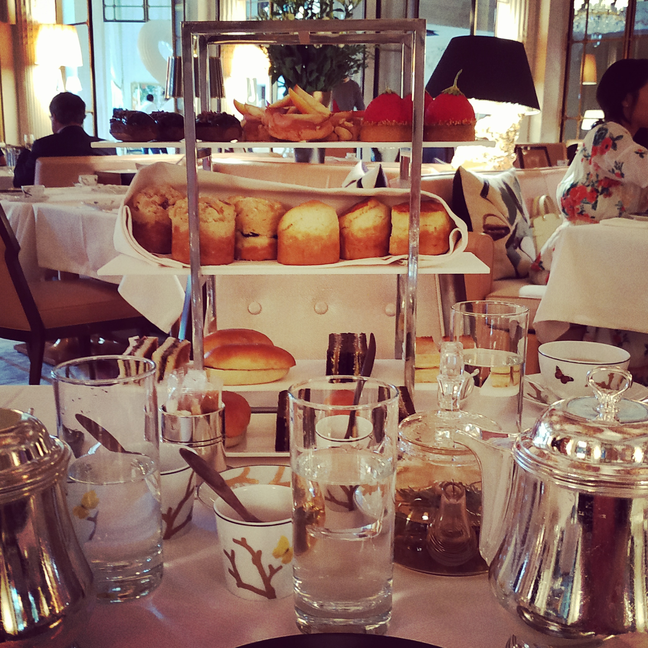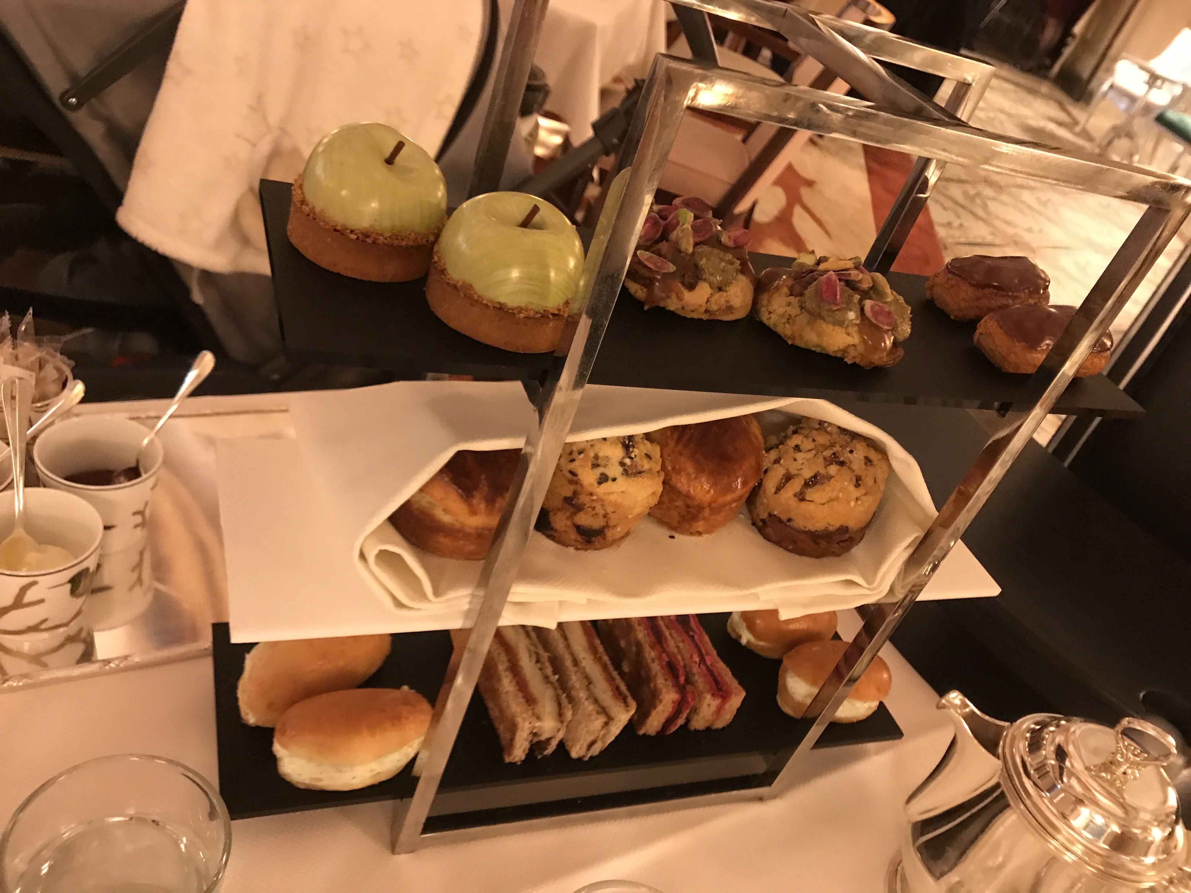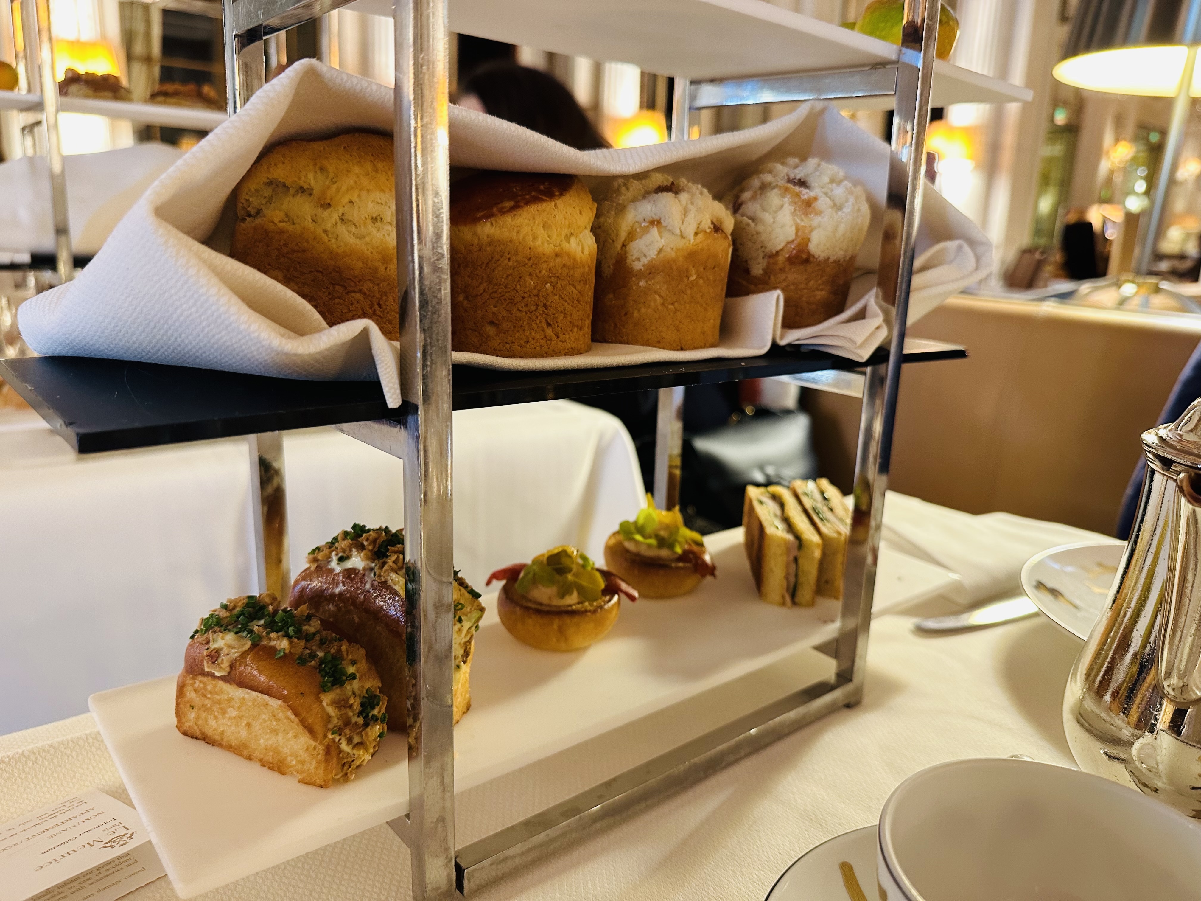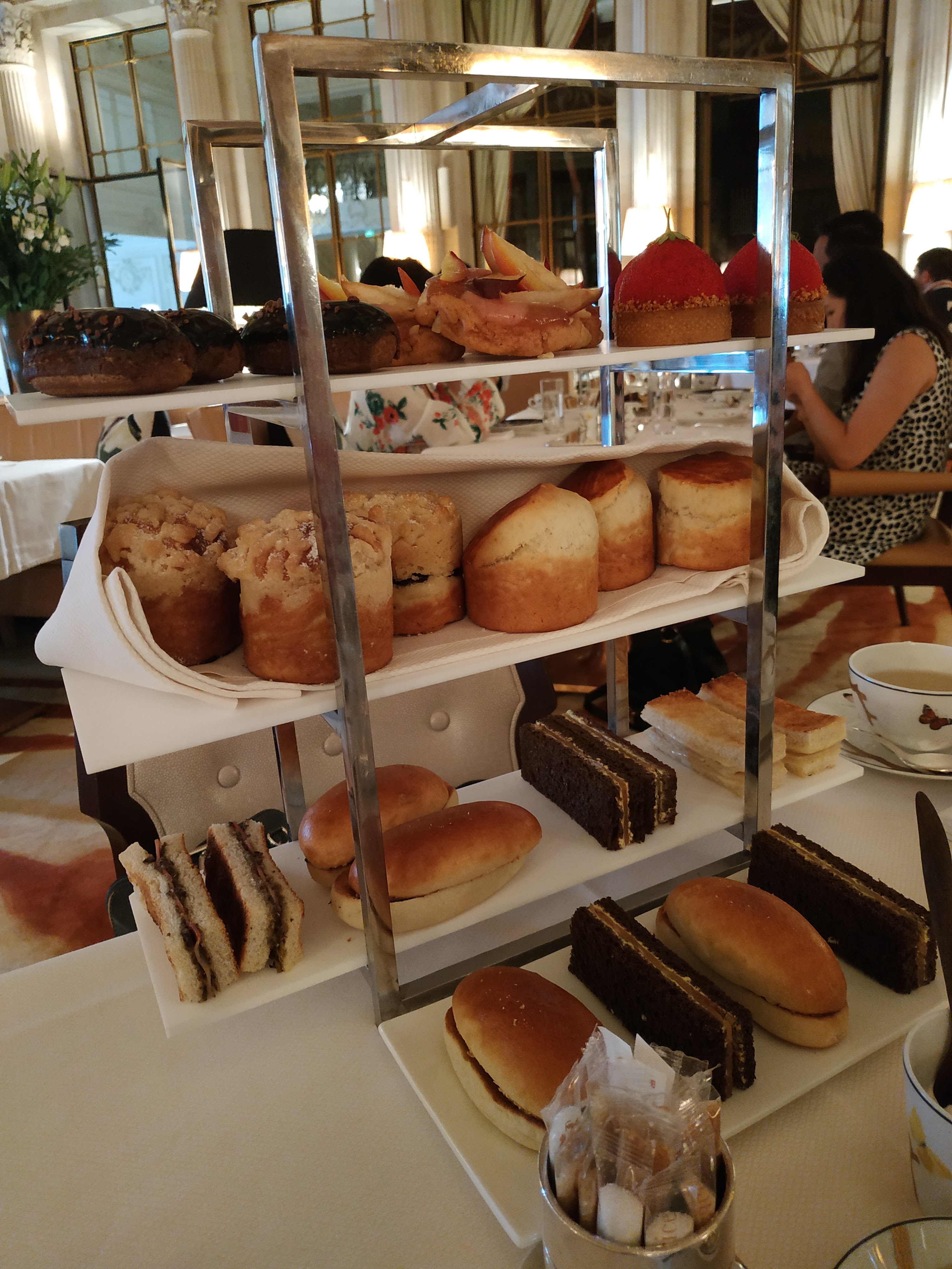 Le tea time à 48 € est fabuleux, les finger sandwiches, les scones, les pâtisseries de Cédric Grolet sont au top. Ambiance chic mais pas trop guindée.