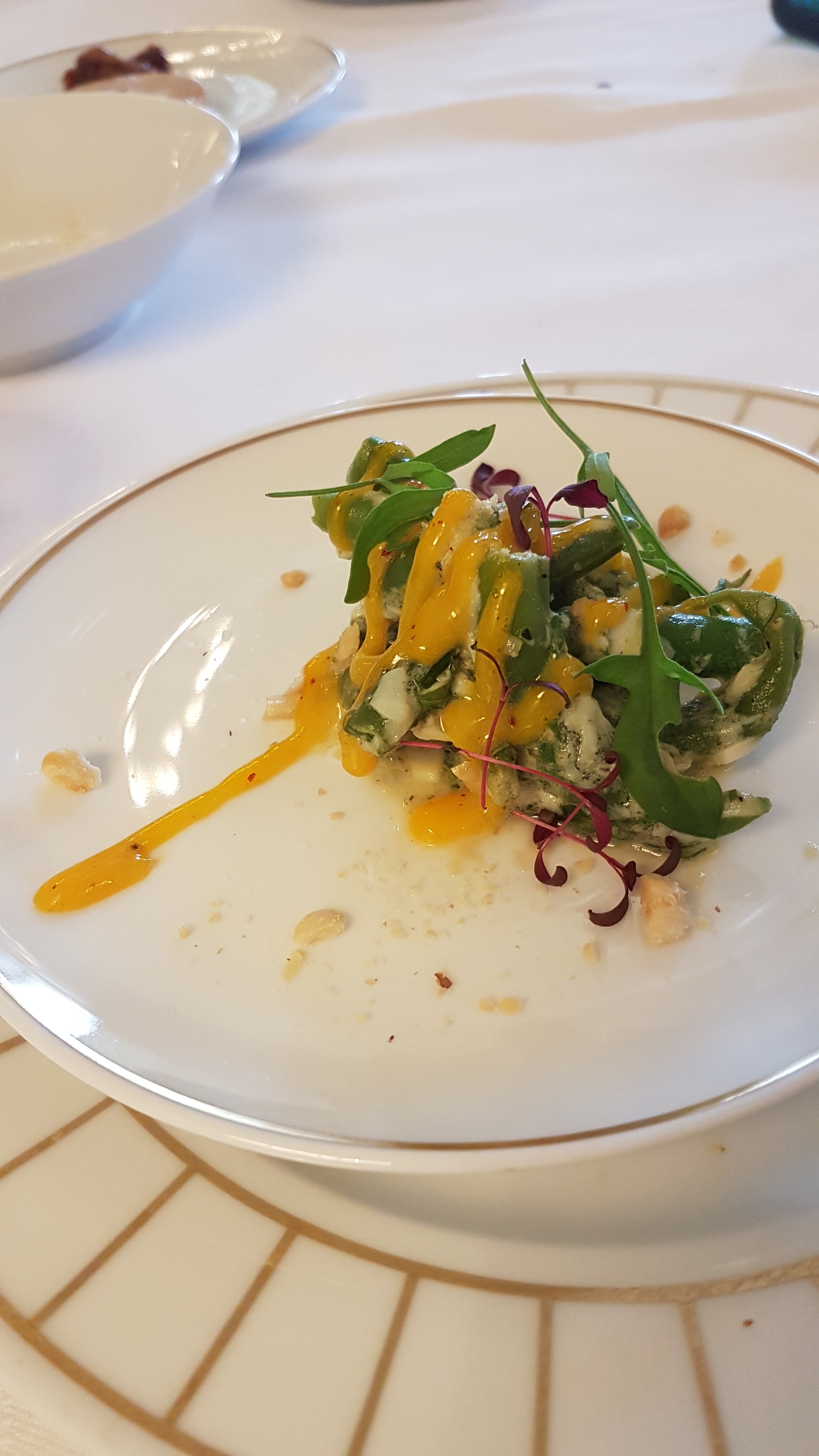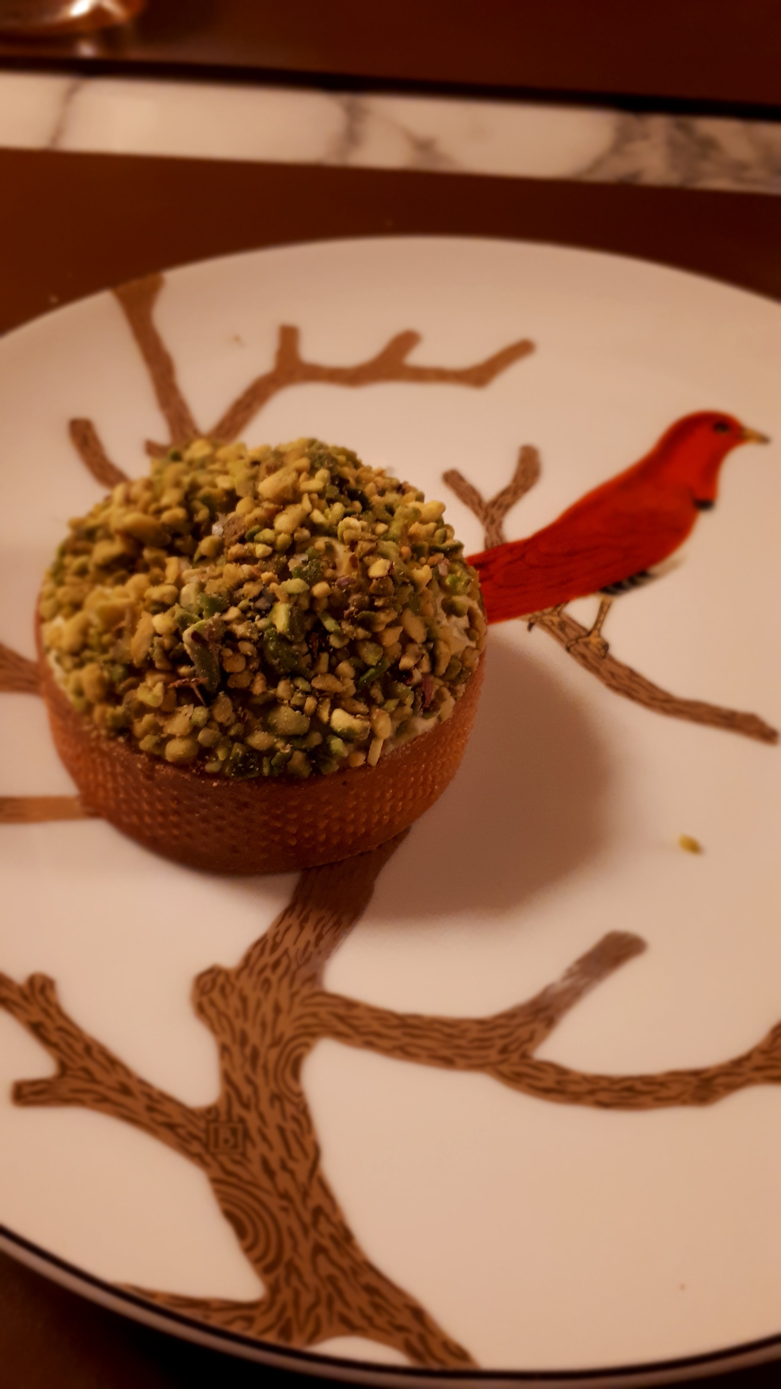 Une expérience culinaire indéniablement inoubliable ! Le personnel, charmant, est aux petits soins, les plats sont délicieux, le décor est captivant ! Les desserts de Cedric Grolet sont magiques ! Pour finir, l' espace entre les convives rassure quant aux règles de distanciation en vigueur. L'hôtel est magnifique et l emplacement idéal. Nous reviendrons très vite pour goûter d autres plats extraordinaires...