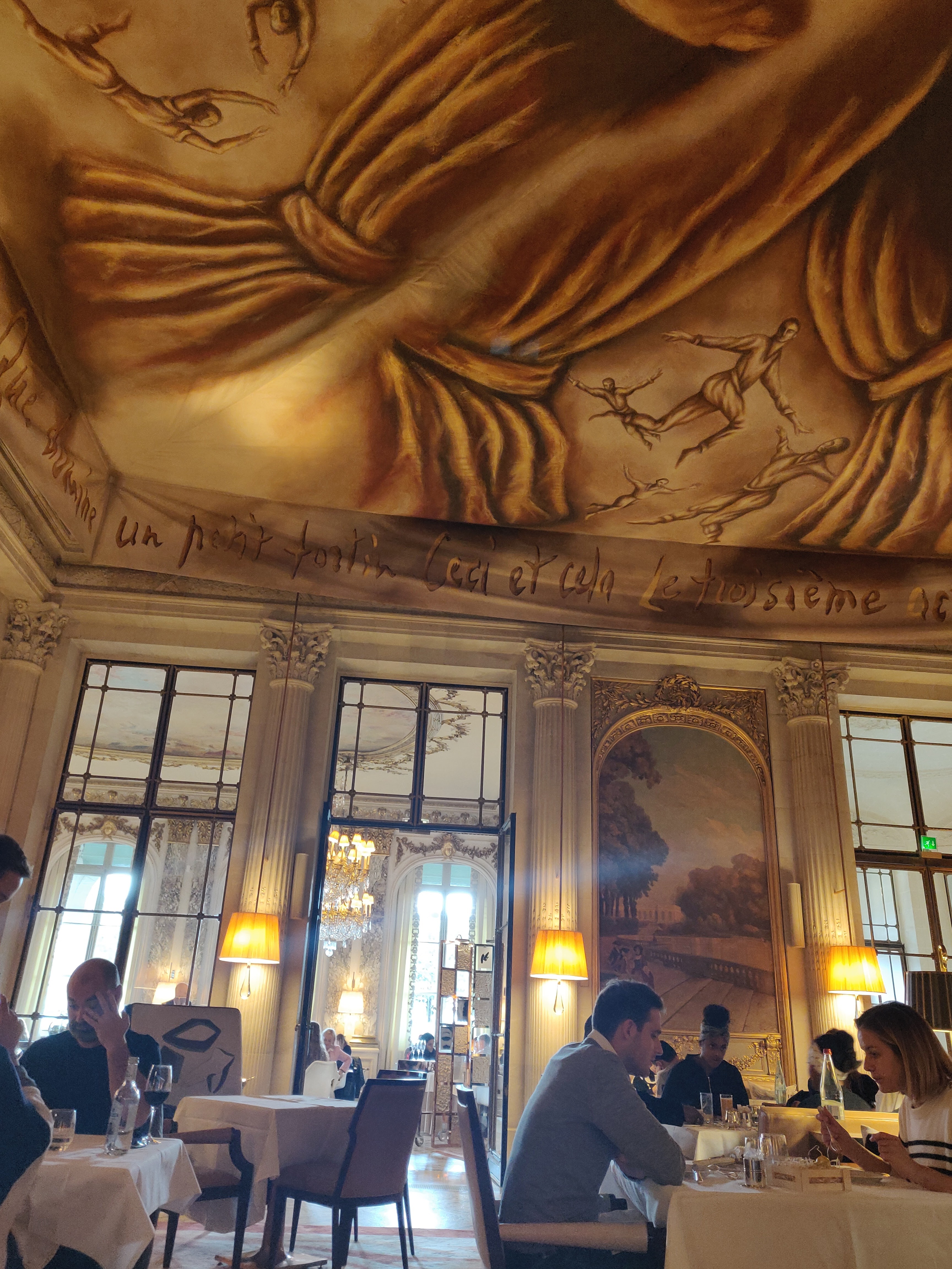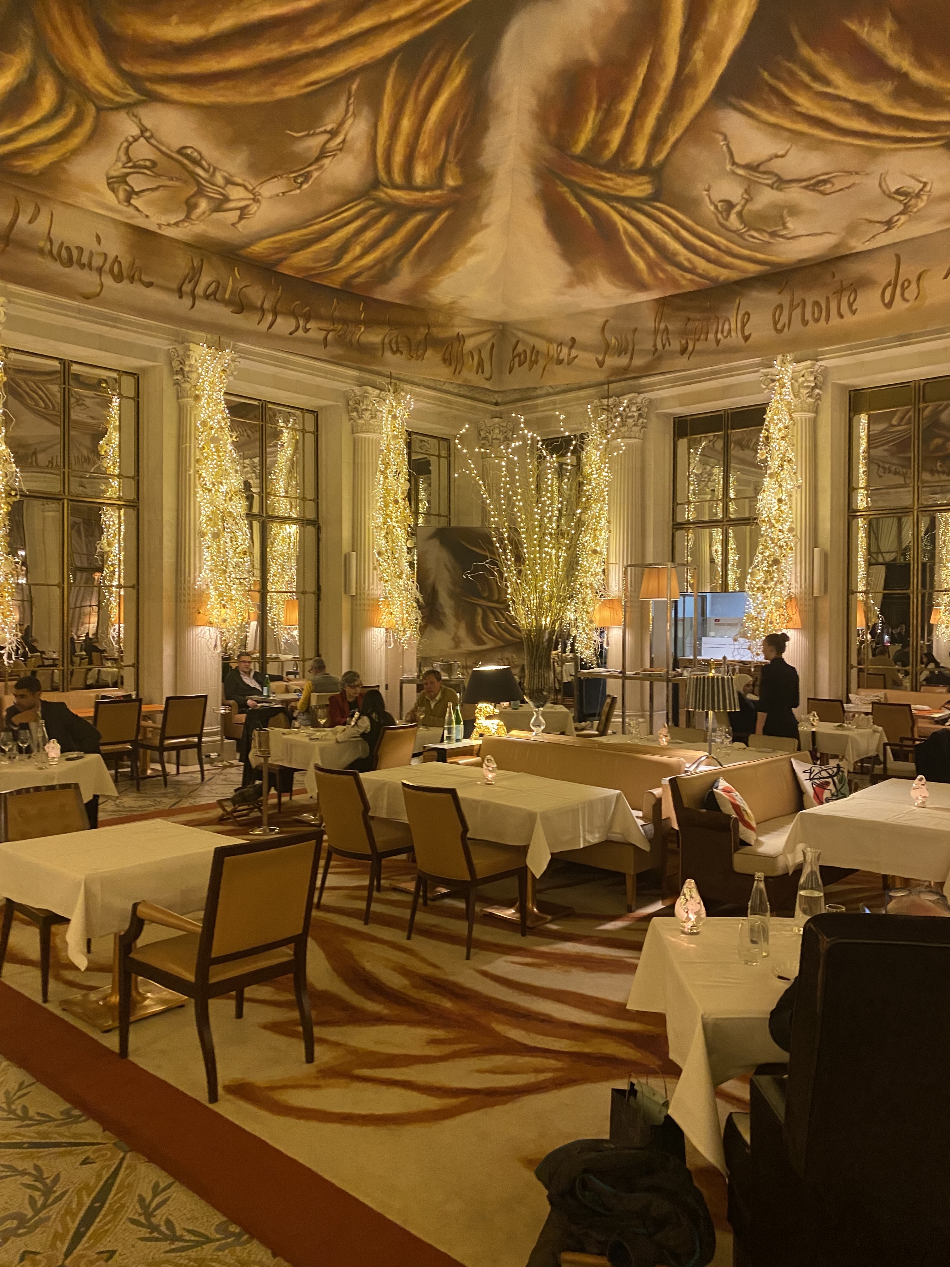 Exceptionnel ! J’y suis allé pour un petit-dejeuner. Malheureusement, à cause ses personnes qui abusent sur les photos, le salon principal (restaurant Ducasse) n’est accessible que pour les résidents de l’hôtel. Le petit-dejeuner américain est à 68€ et avec notamment quelques viennoiseries de Cedric Grolet. Le chocolat chaud est extraordinaire ! J’ai même eu la chance de croiser Monsieur Alain Ducasse (voir photo). Merci pour ce super moment 😍